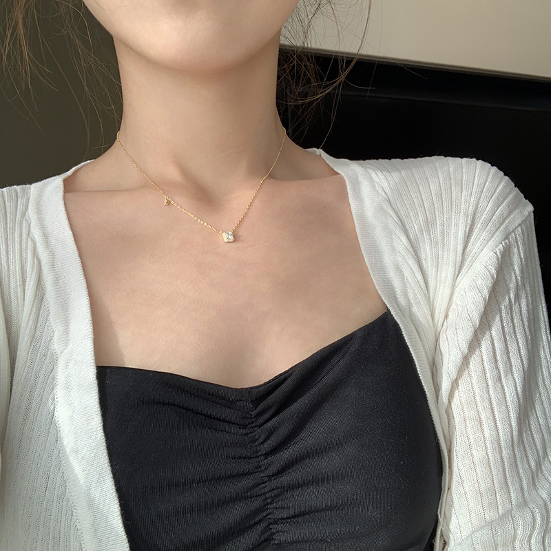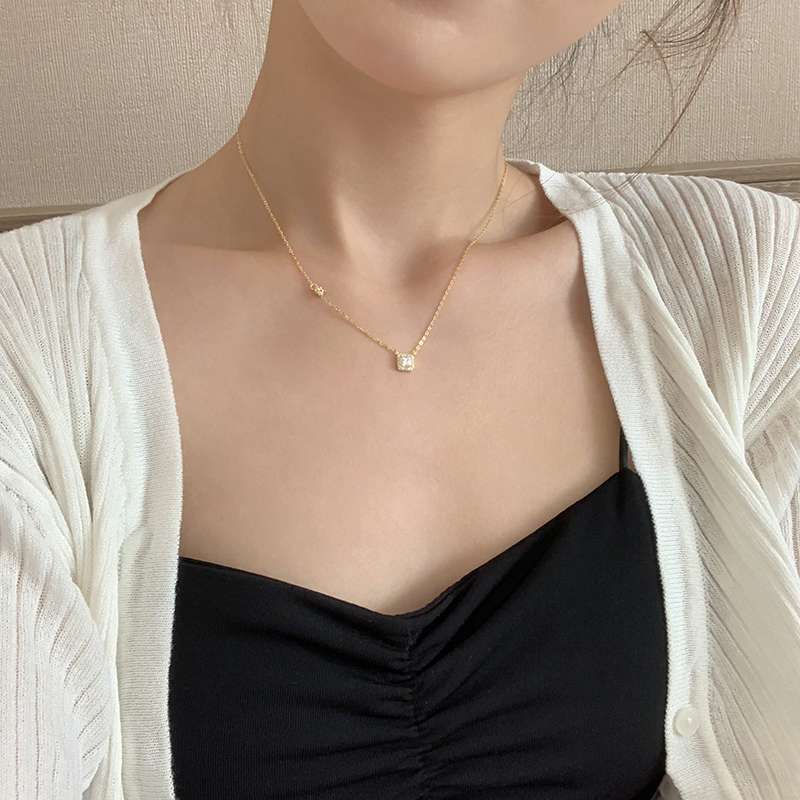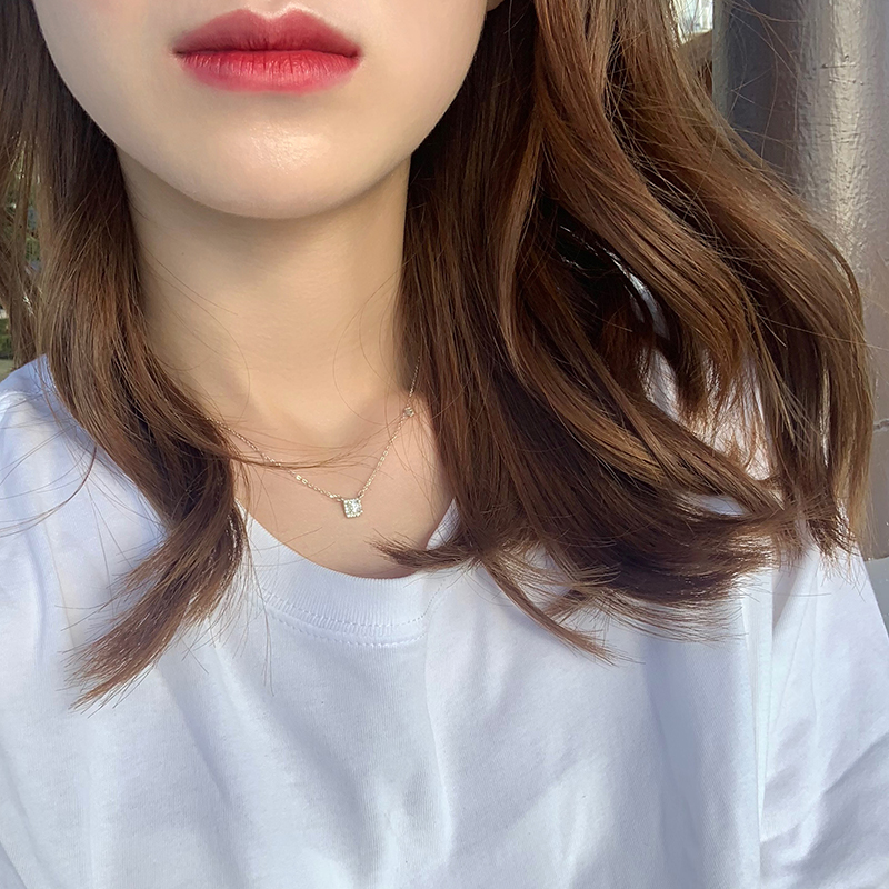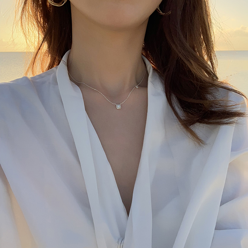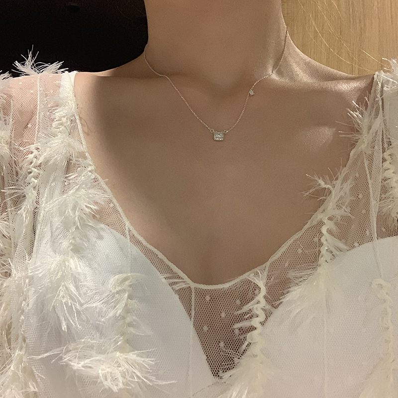 【迷度】通體925純銀項鏈復古冷淡風方形鎖骨鏈可水洗 簡約 氣質1入