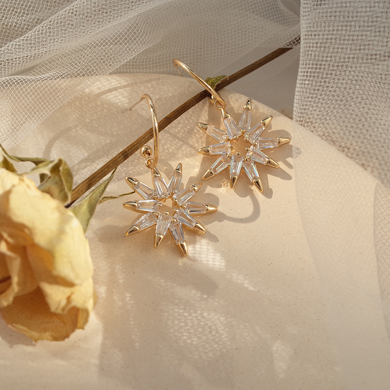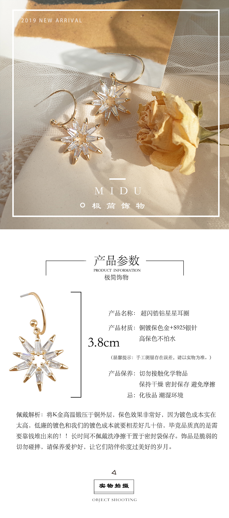 【迷度】S925銀針超仙鋯鉆星星耳環女氣質耳圈少女心 高級感耳環1入