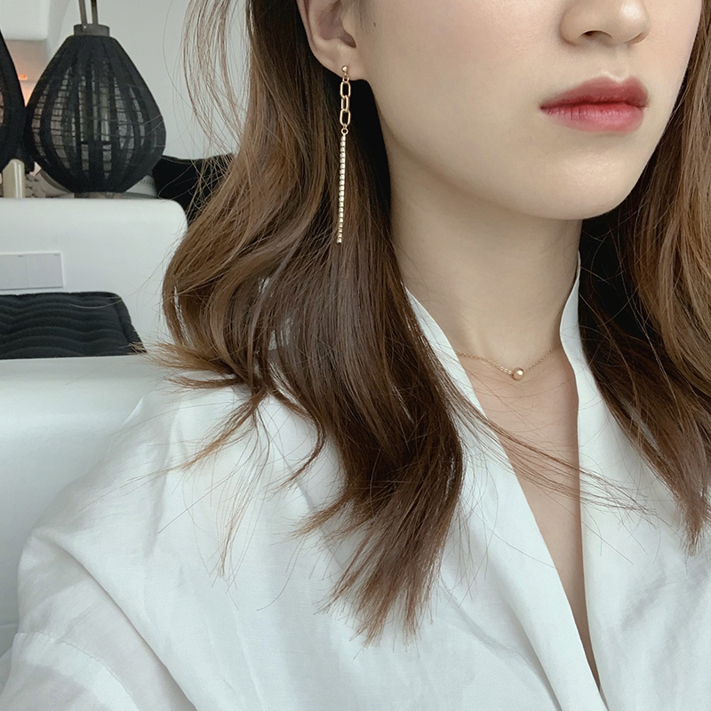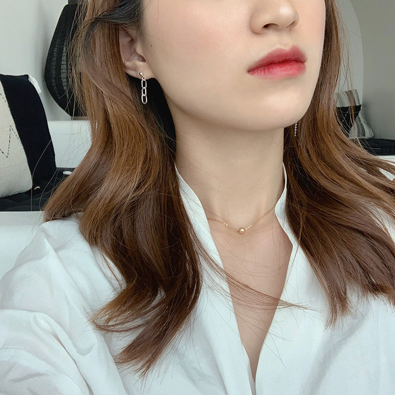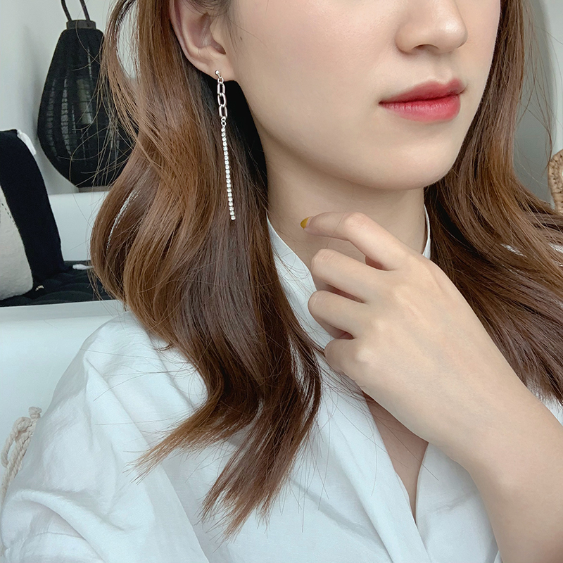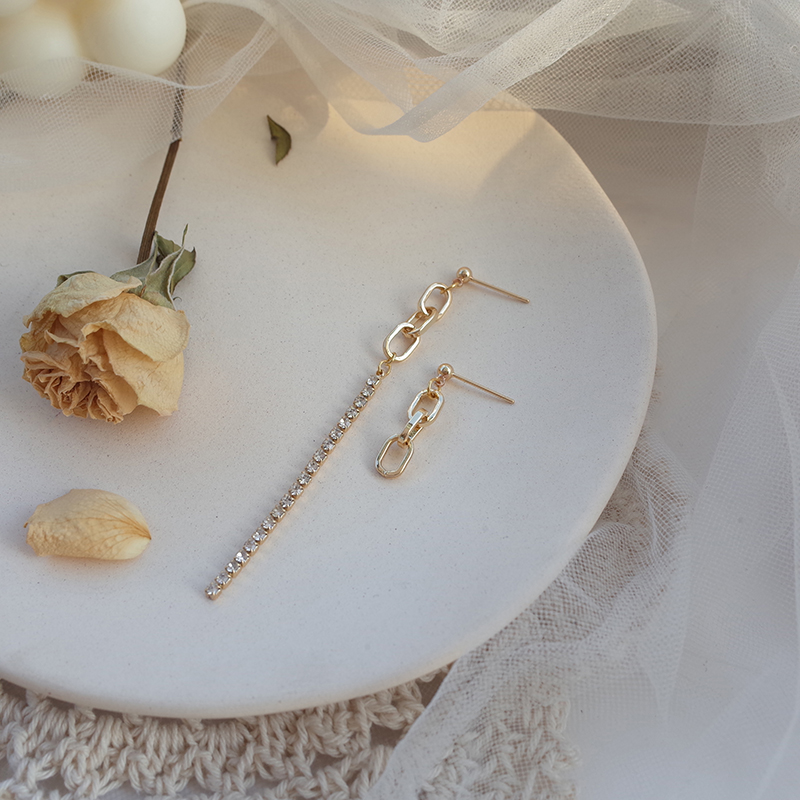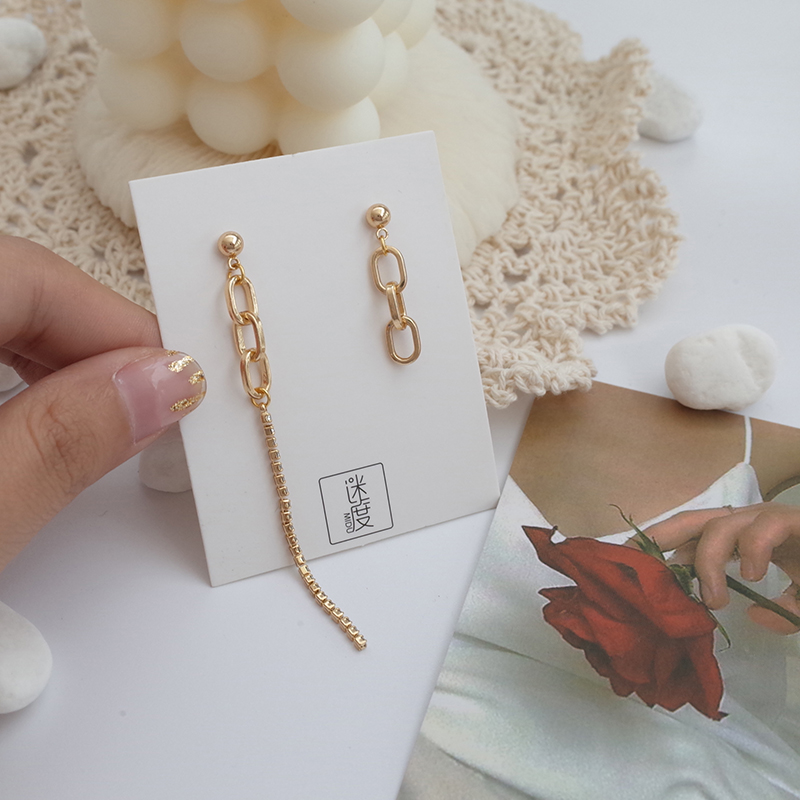 【迷度】S925銀針鋯鉆鏈條耳環不對稱耳釘女時尚小耳墜 精致 超仙1入