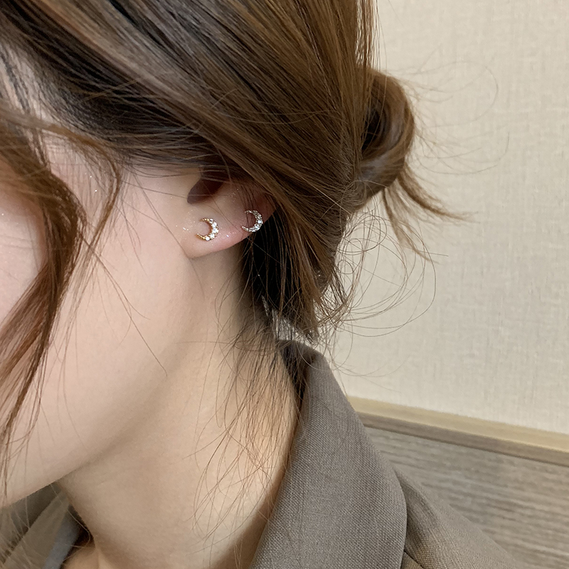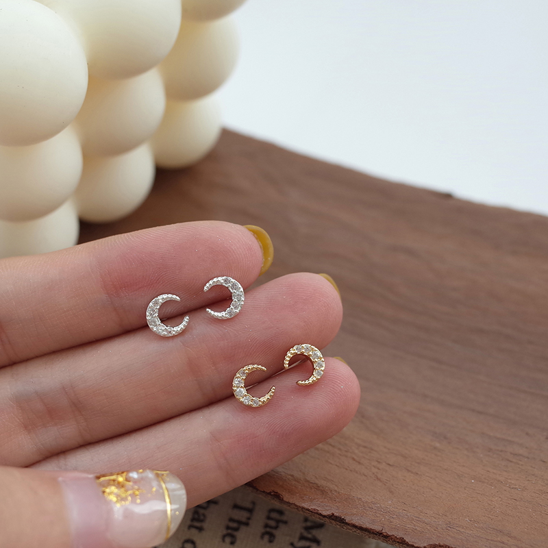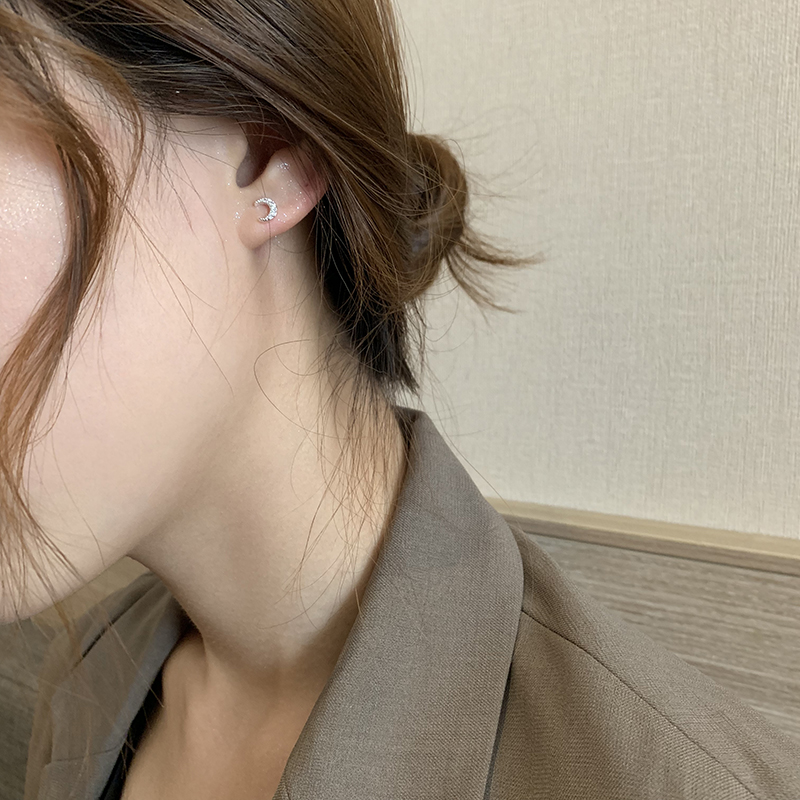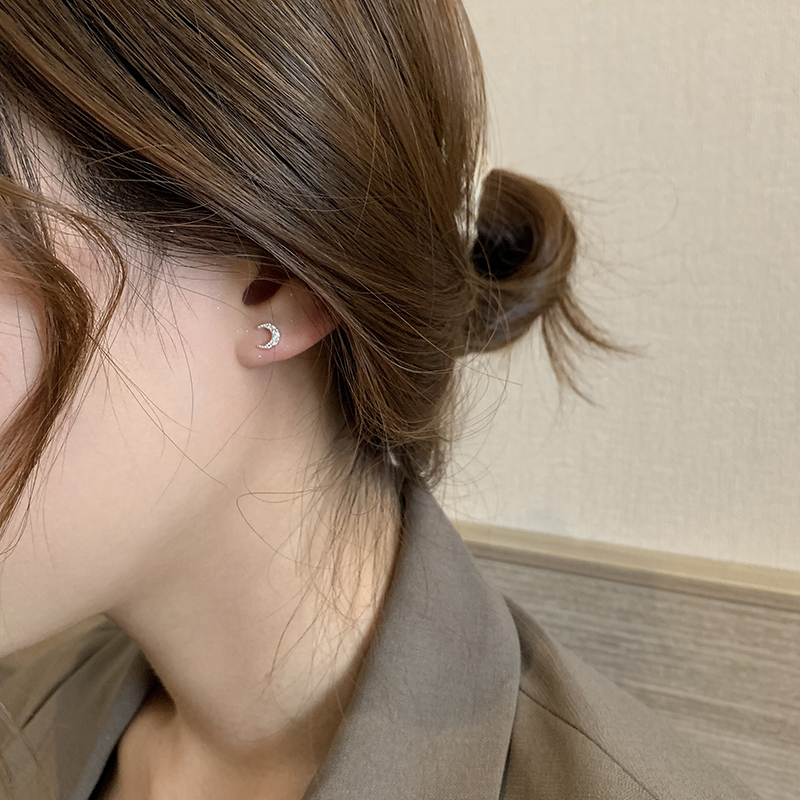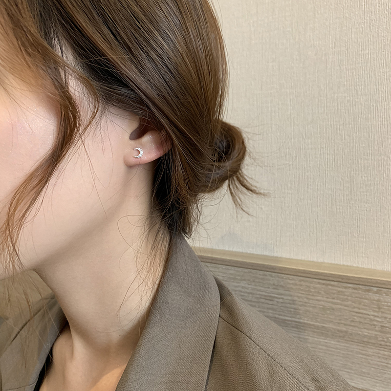 【迷度】S925銀針迷你月亮耳釘氣質少女心鑲鉆耳骨釘簡約 女 小巧1入
