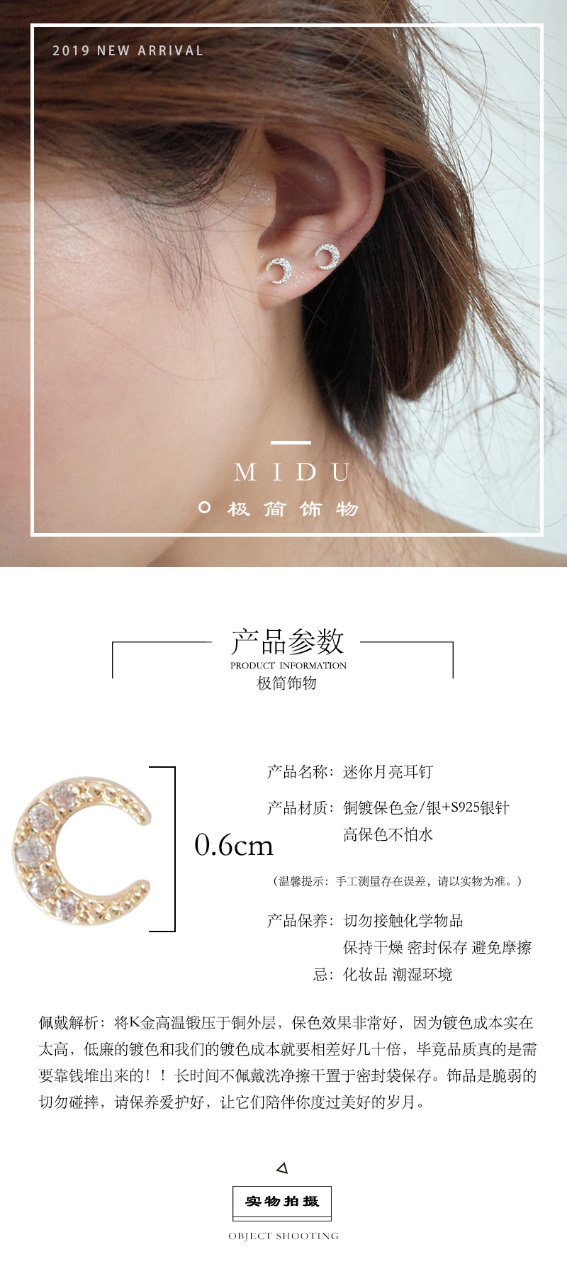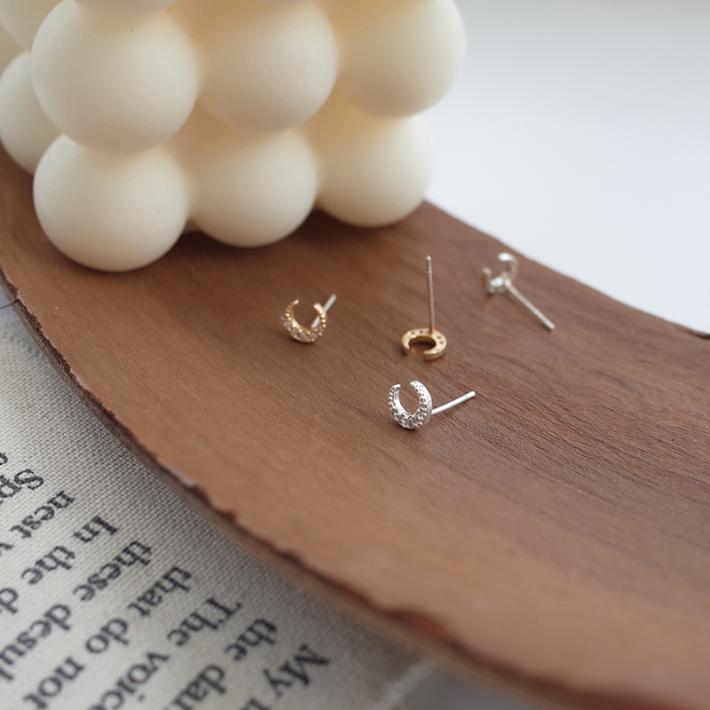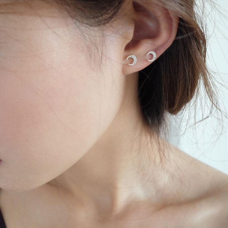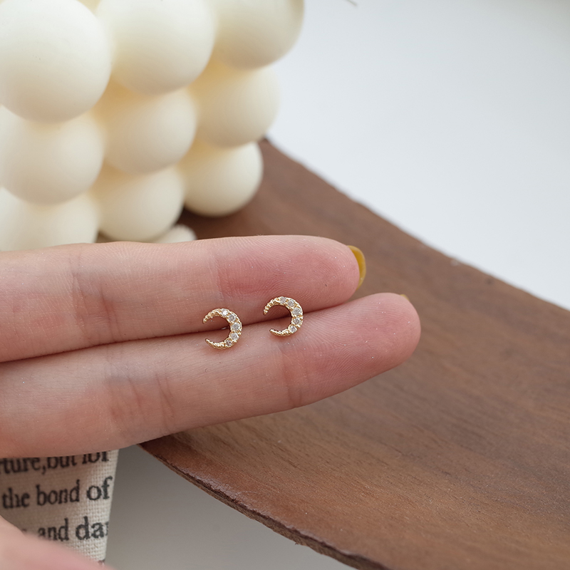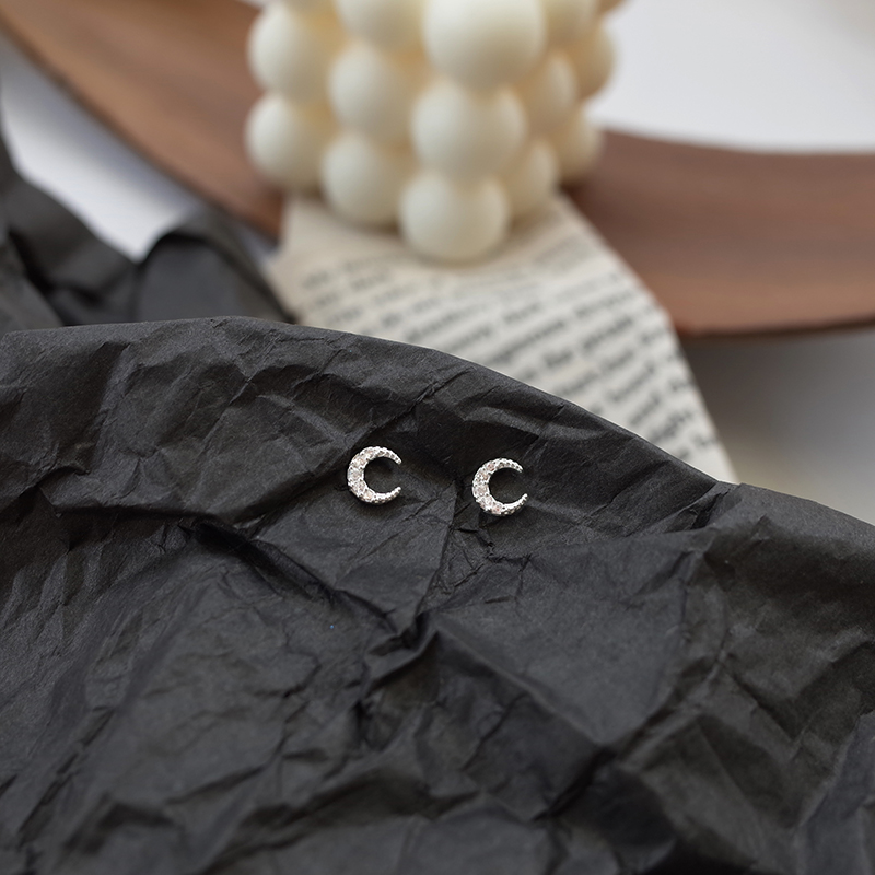 【迷度】S925銀針迷你月亮耳釘氣質少女心鑲鉆耳骨釘簡約 女 小巧1入