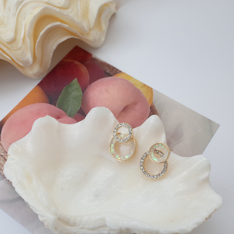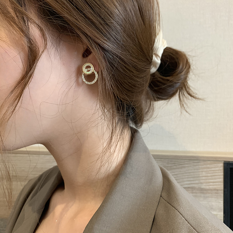 【迷度】S925銀針雙圓圈耳釘氣質少女心鑲鉆耳環百搭 高級感耳環1入