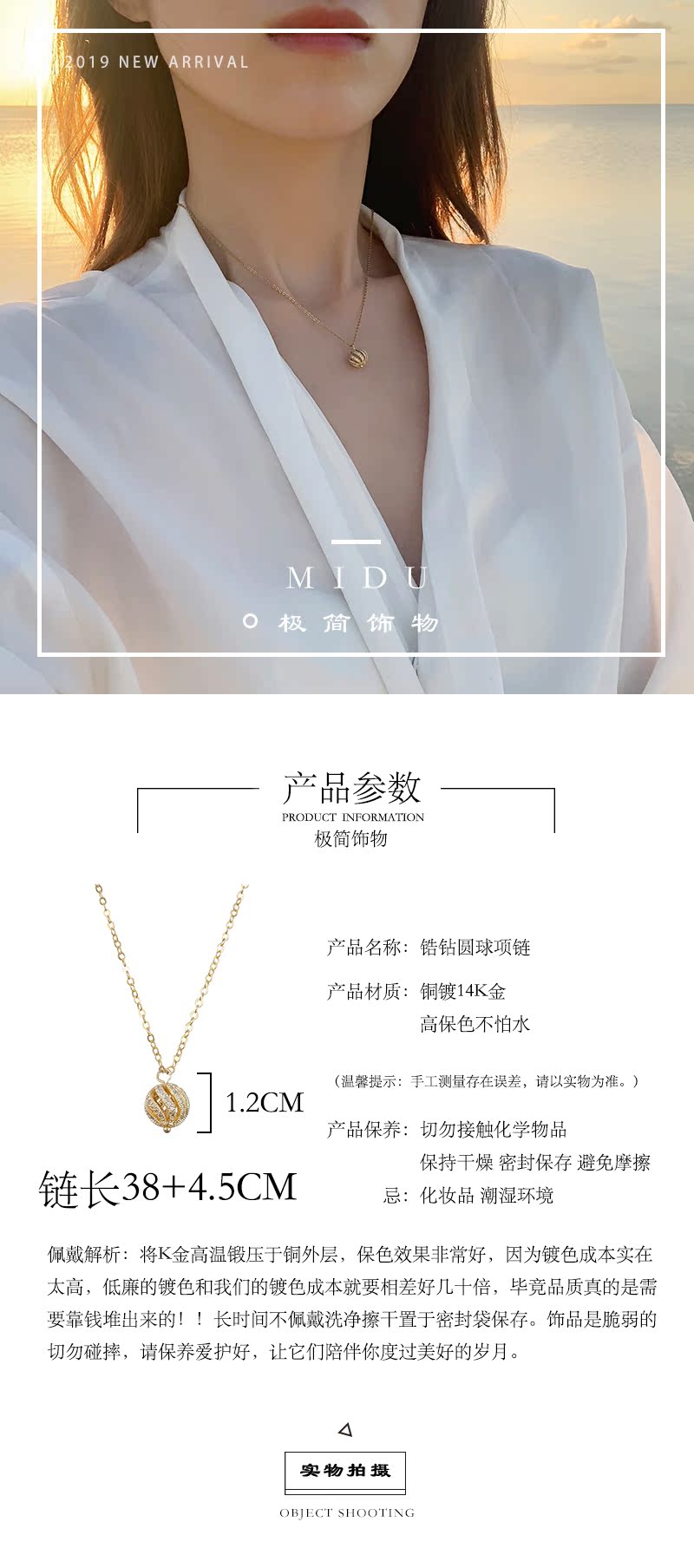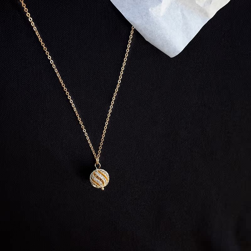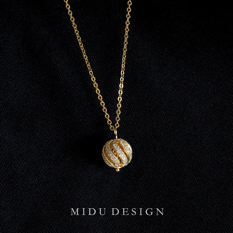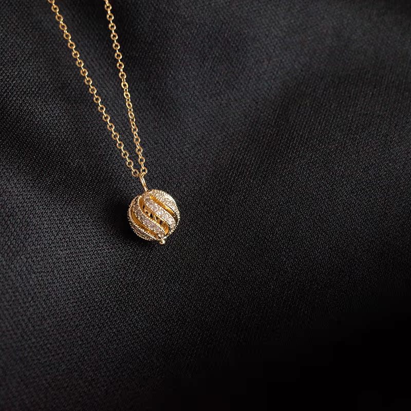 【迷度】滿鉆鏤空轉運珠項鏈鎖14K包金獨特精致骨鏈女項鏈ins簡約1入