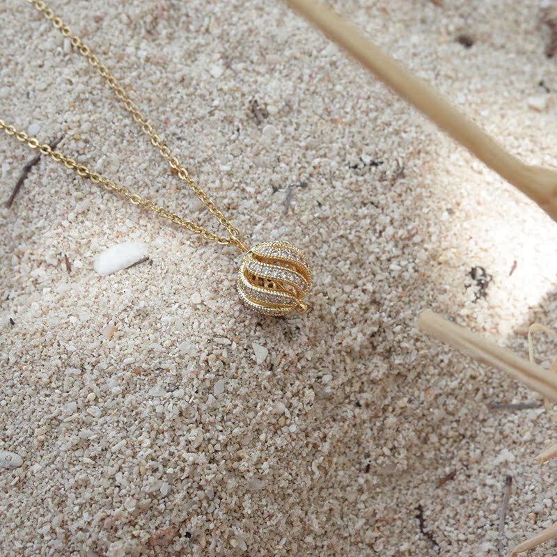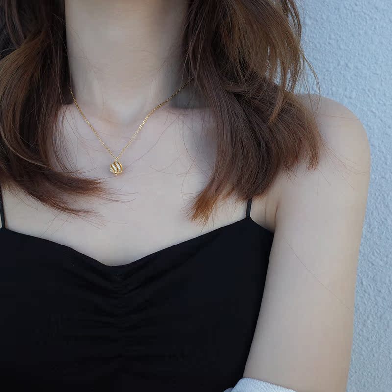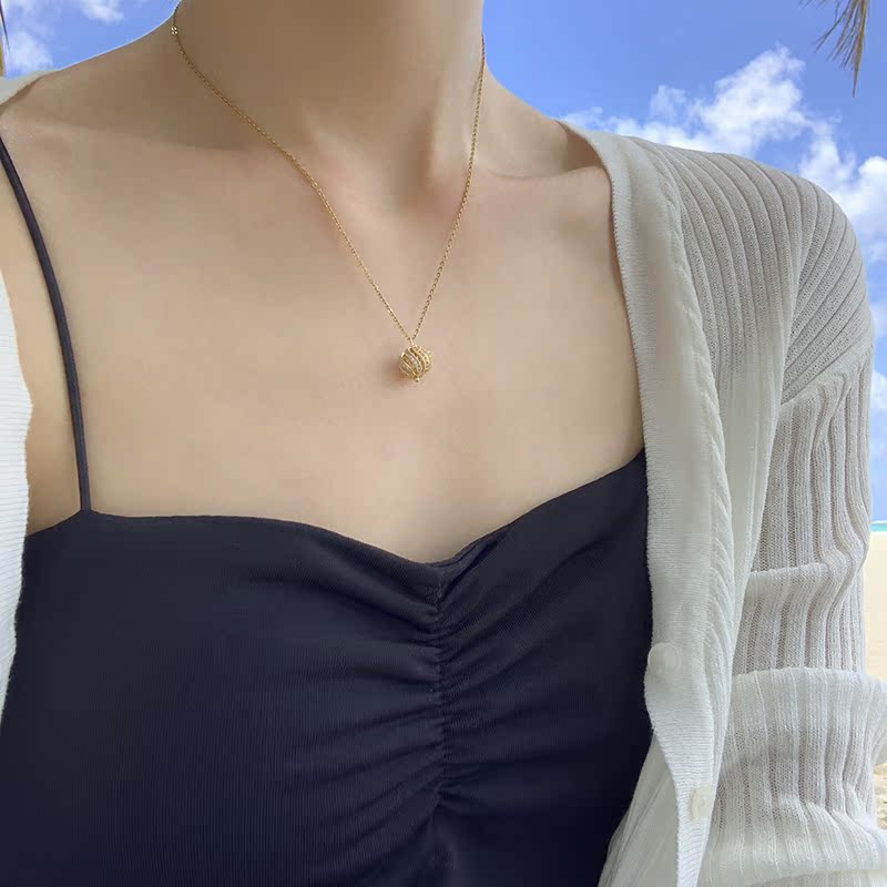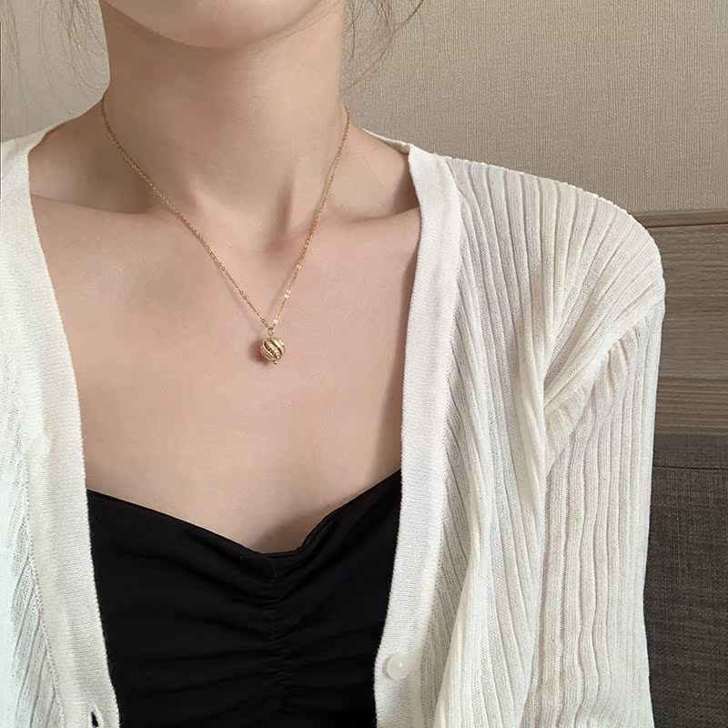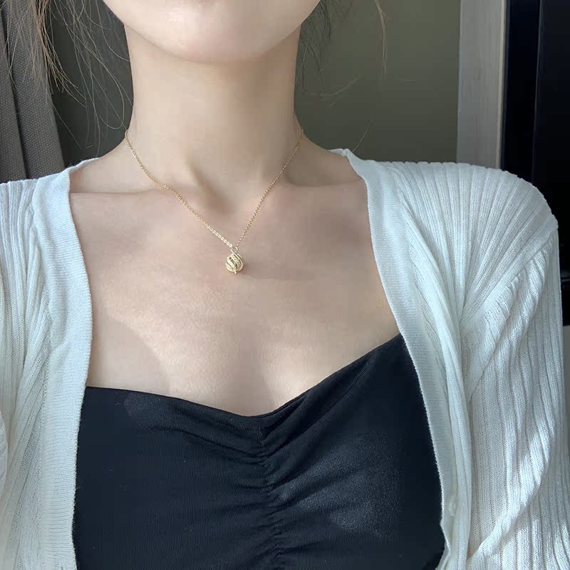 【迷度】滿鉆鏤空轉運珠項鏈鎖14K包金獨特精致骨鏈女項鏈ins簡約1入
