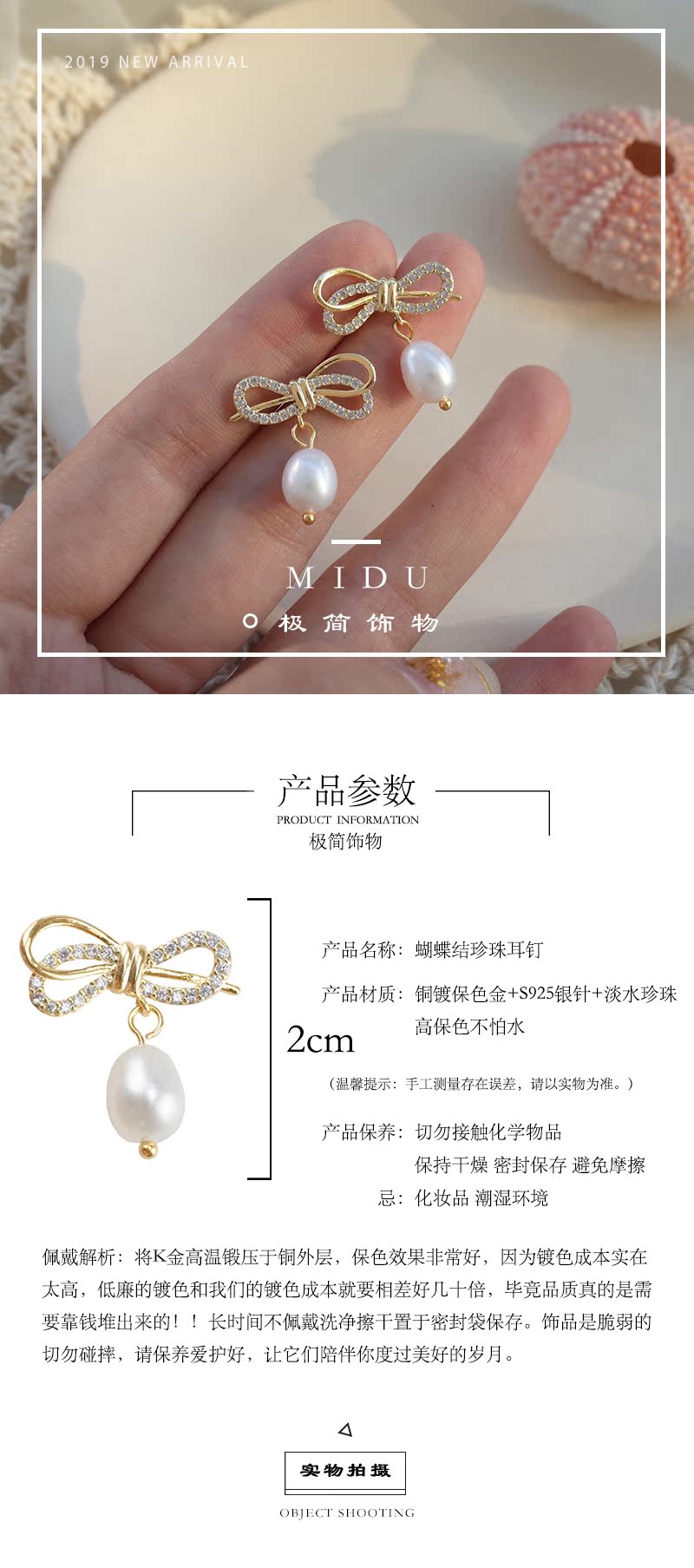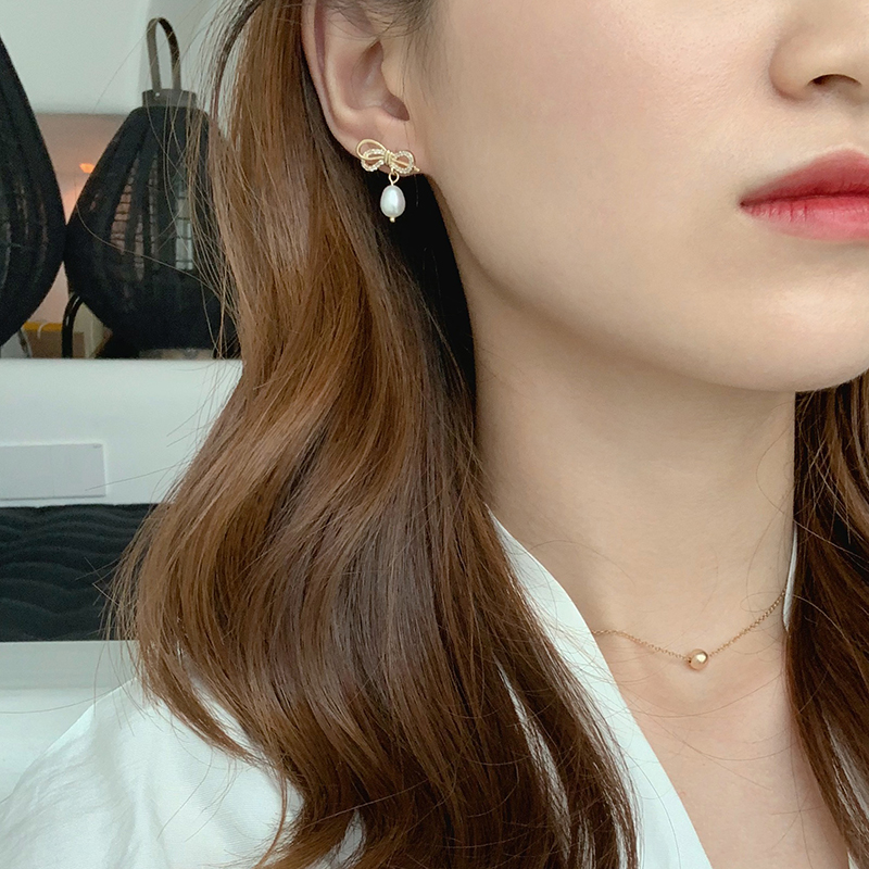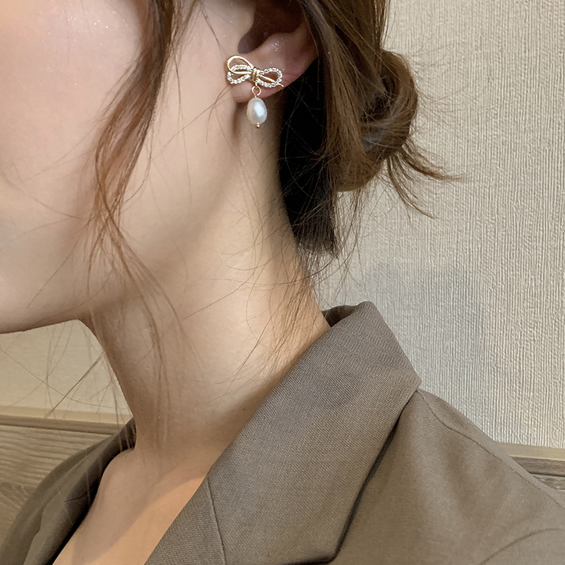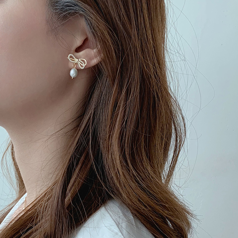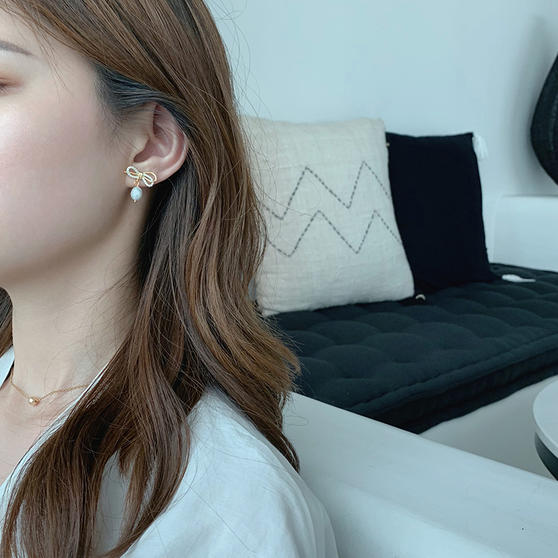 【迷度】S925銀針超仙鋯鉆蝴蝶結耳釘氣質珍珠耳墜仙氣 森系 超仙1入