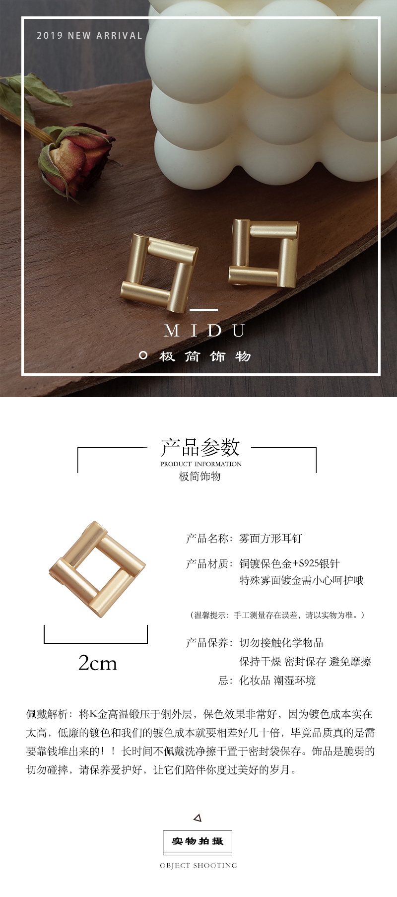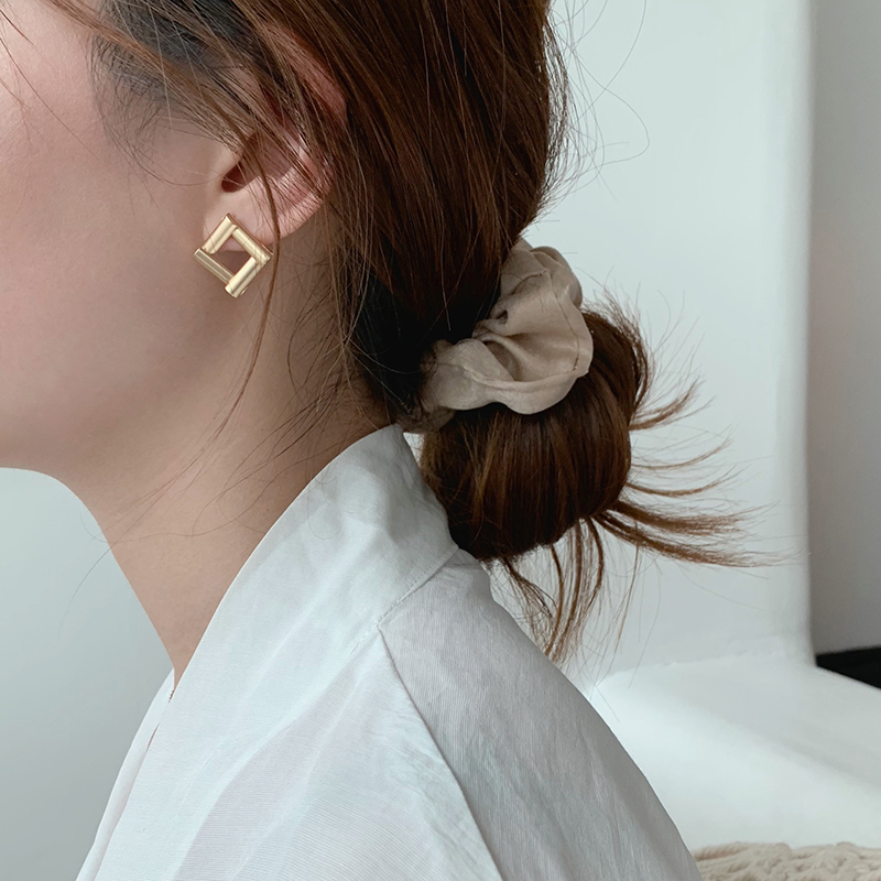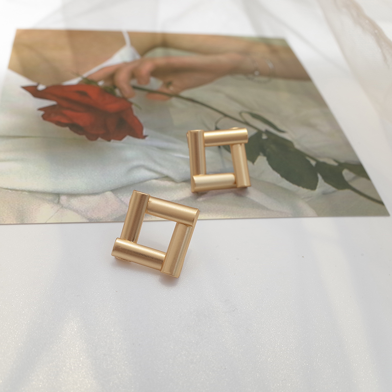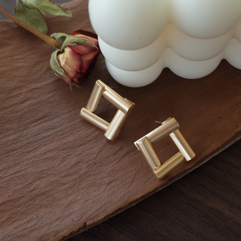 【迷度】S925銀針復古霧面方形女耳環ins冷淡風耳釘簡約 女 小巧1入