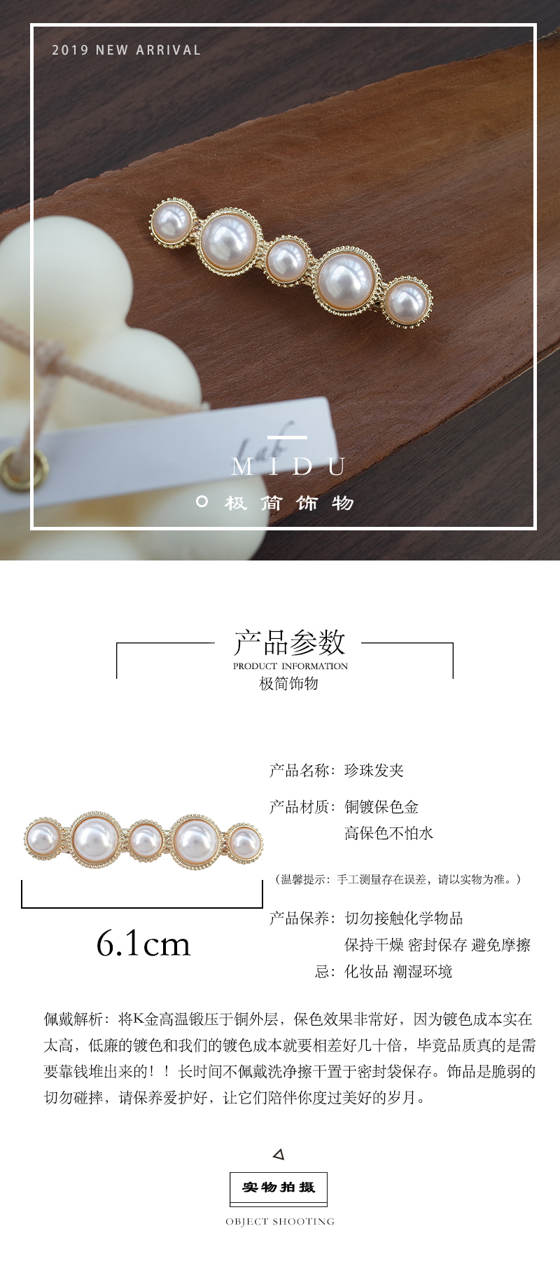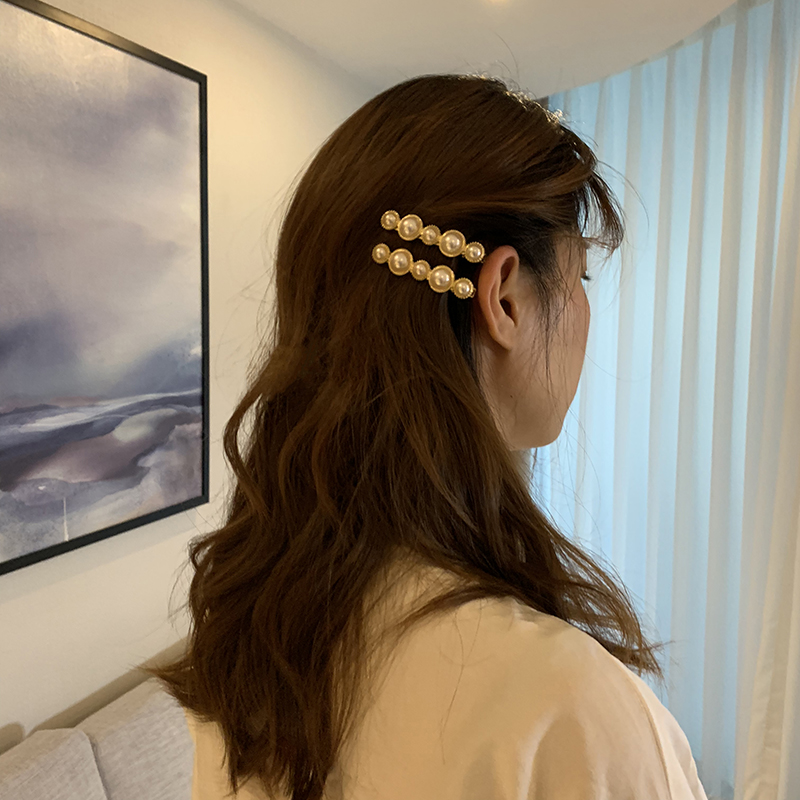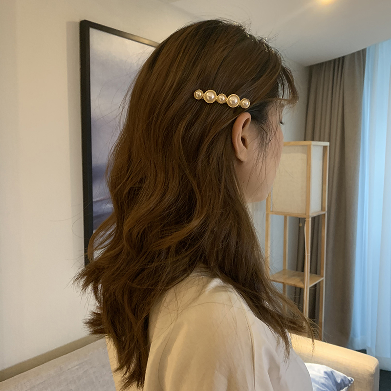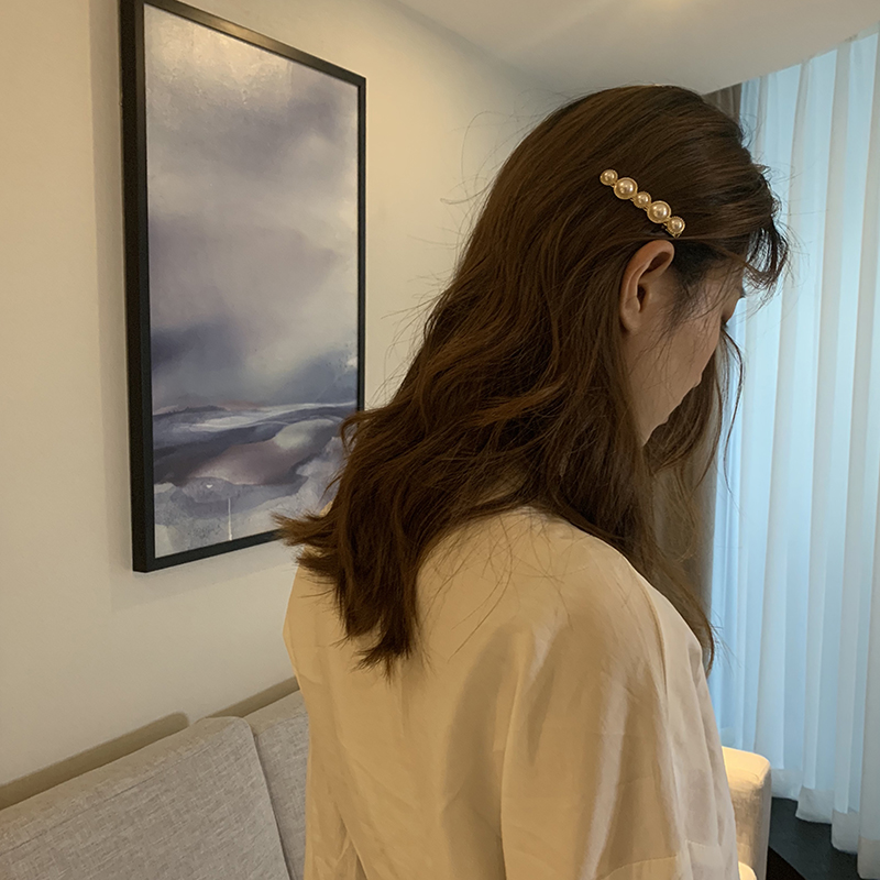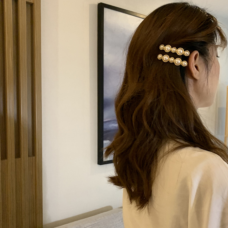 【迷度】復古珍珠發夾網紅少女甜美劉海夾子頭飾發夾 頂夾 發卡1入