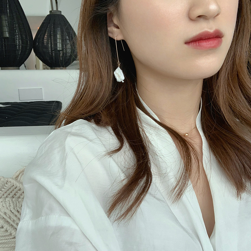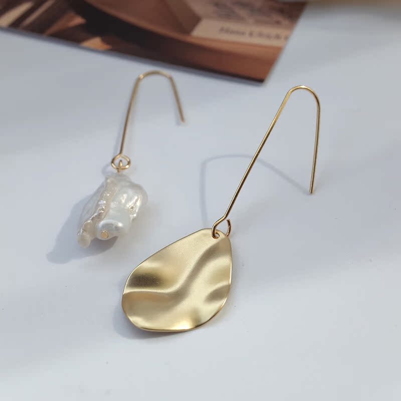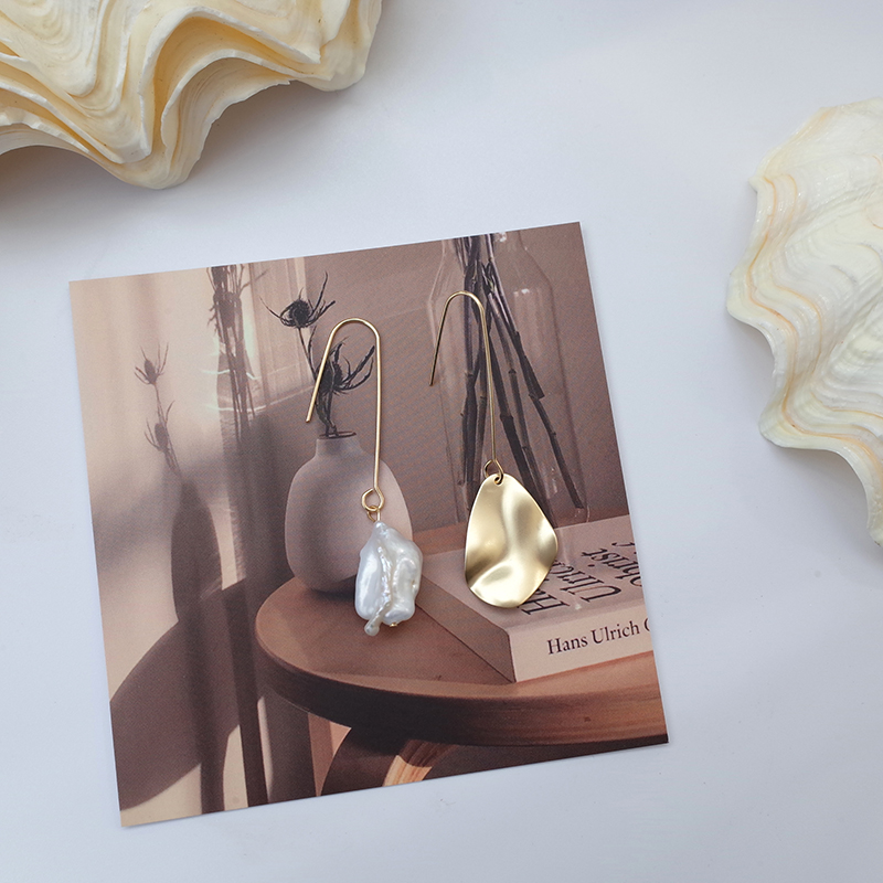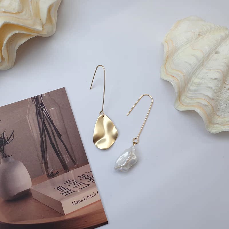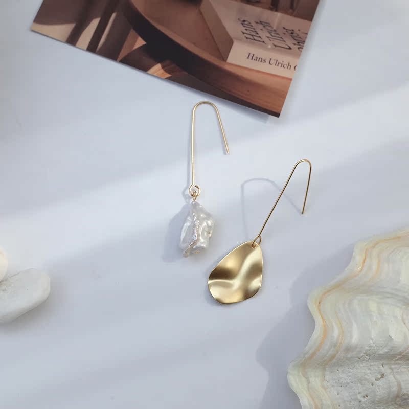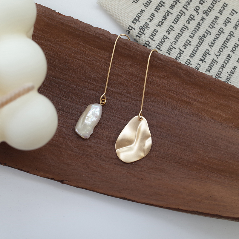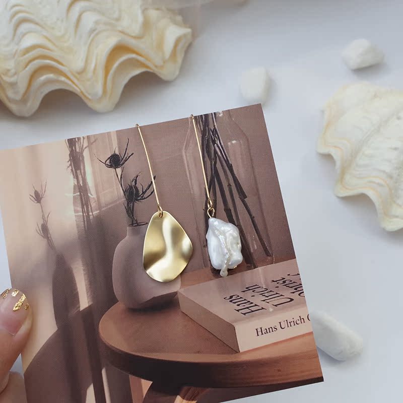 【迷度】霧面不對稱天然珍珠耳環女長款氣質耳墜仙氣 森系 超仙1入