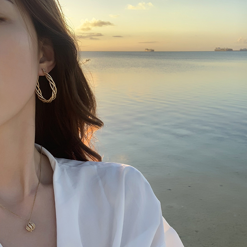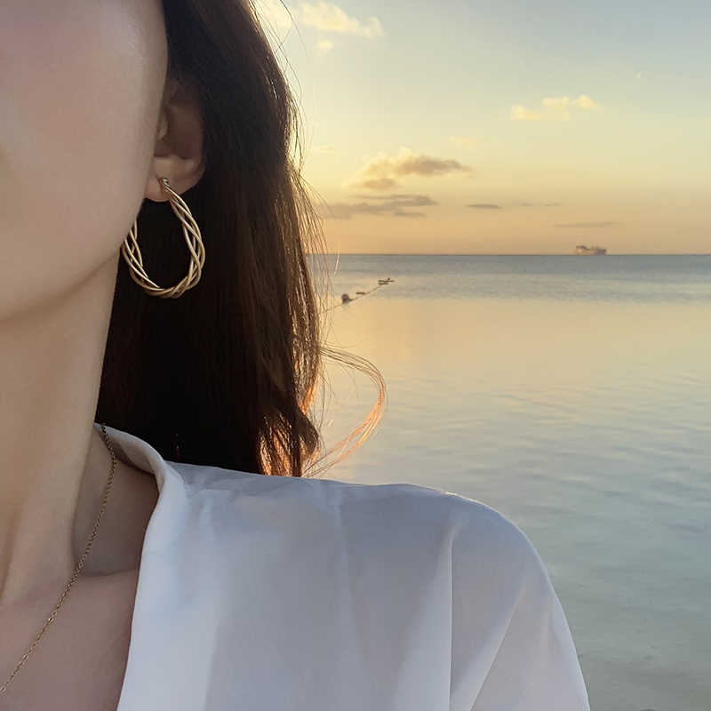 【迷度】S925銀針霧面耳圈氣質耳環女冷淡風 適合圓臉的耳環 網紅1入