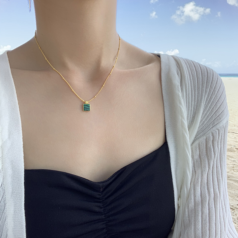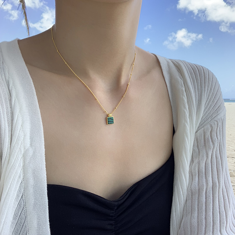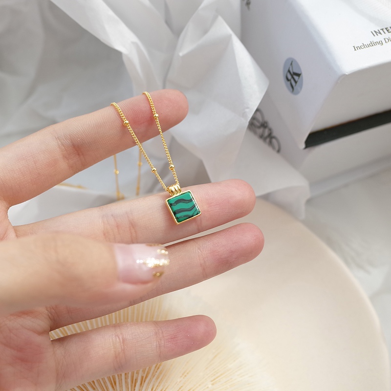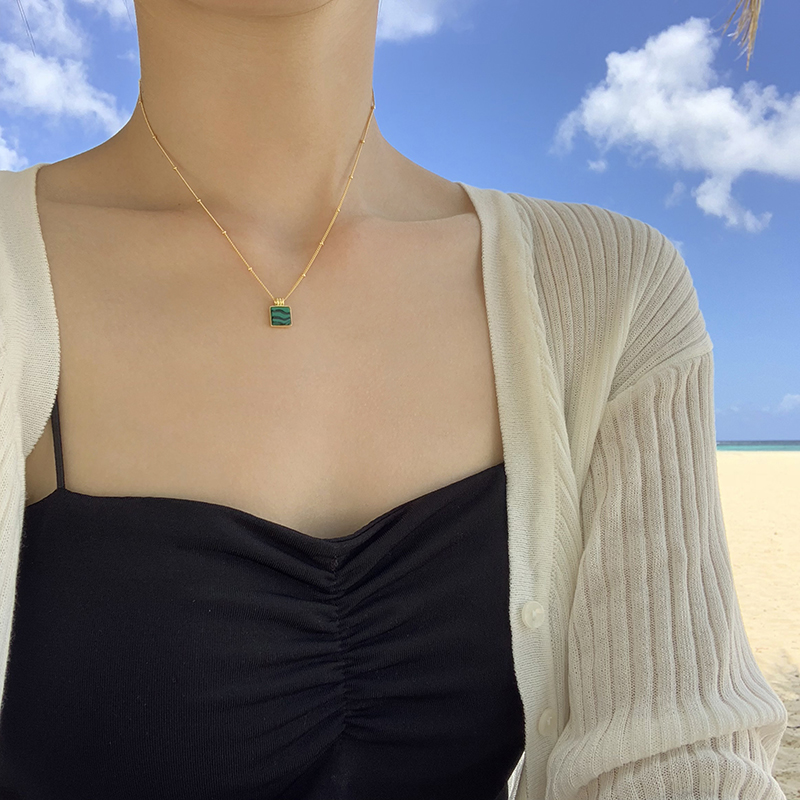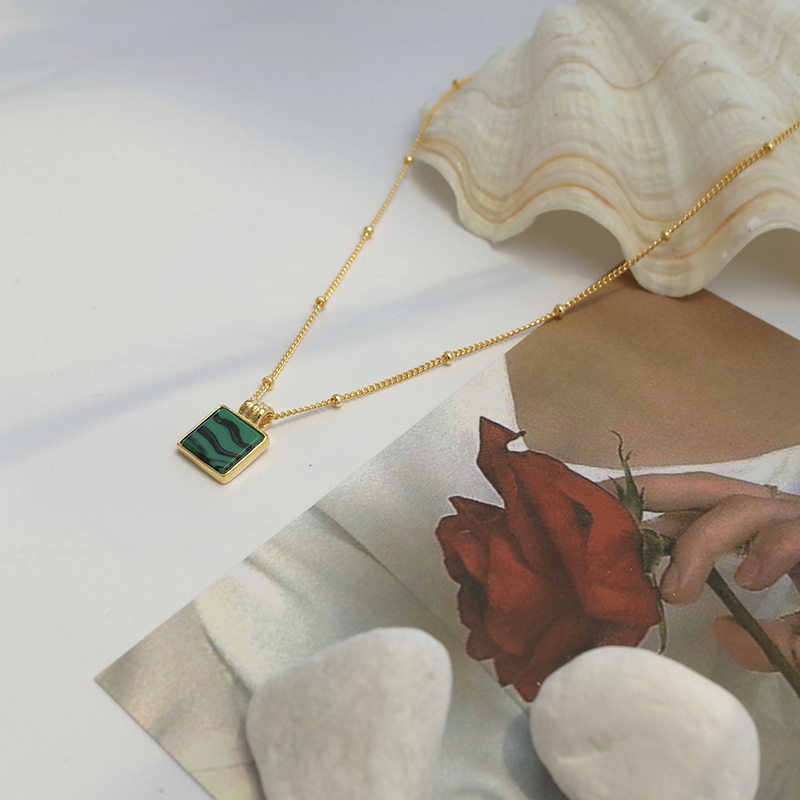 【迷度】通體925銀項鏈復古綠孔雀石鎖骨鏈個性百搭項鏈女潮 網紅1入