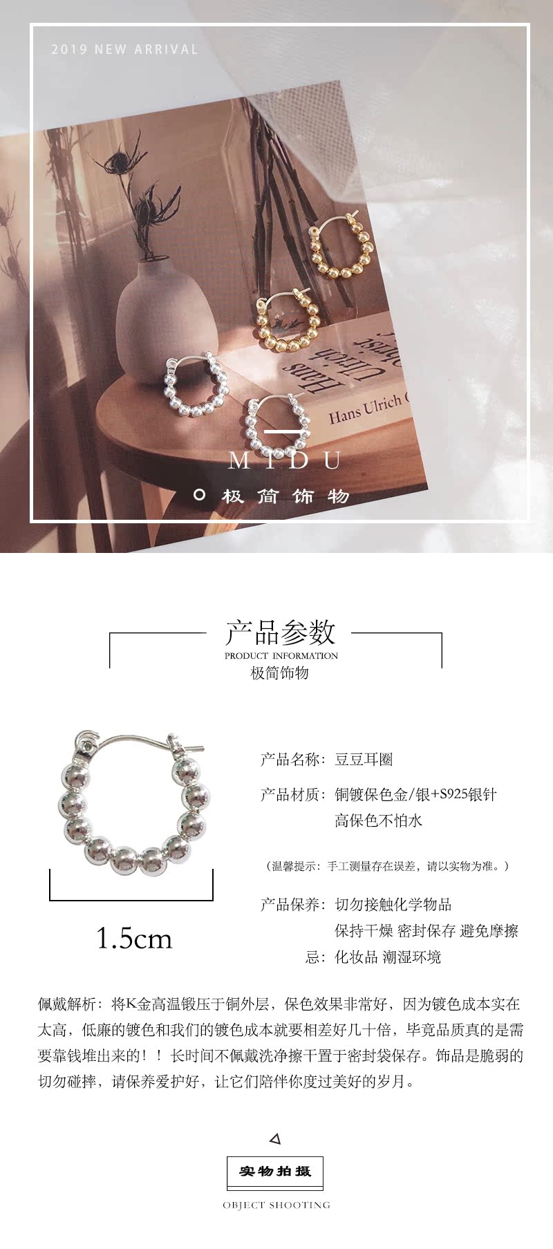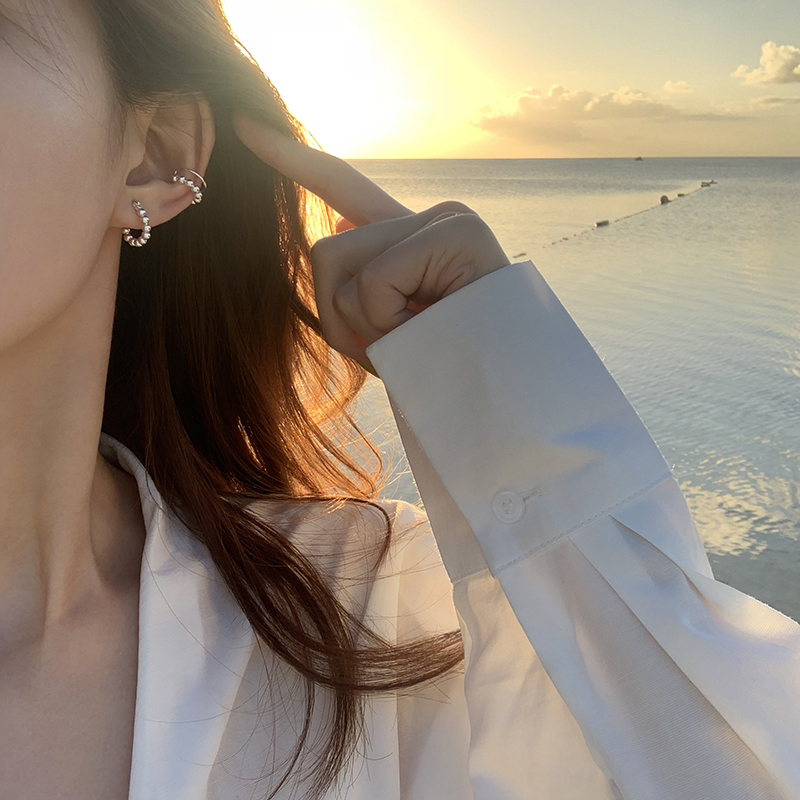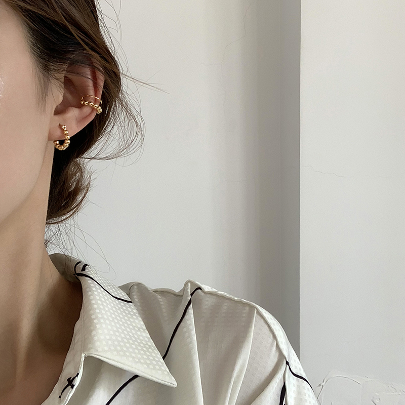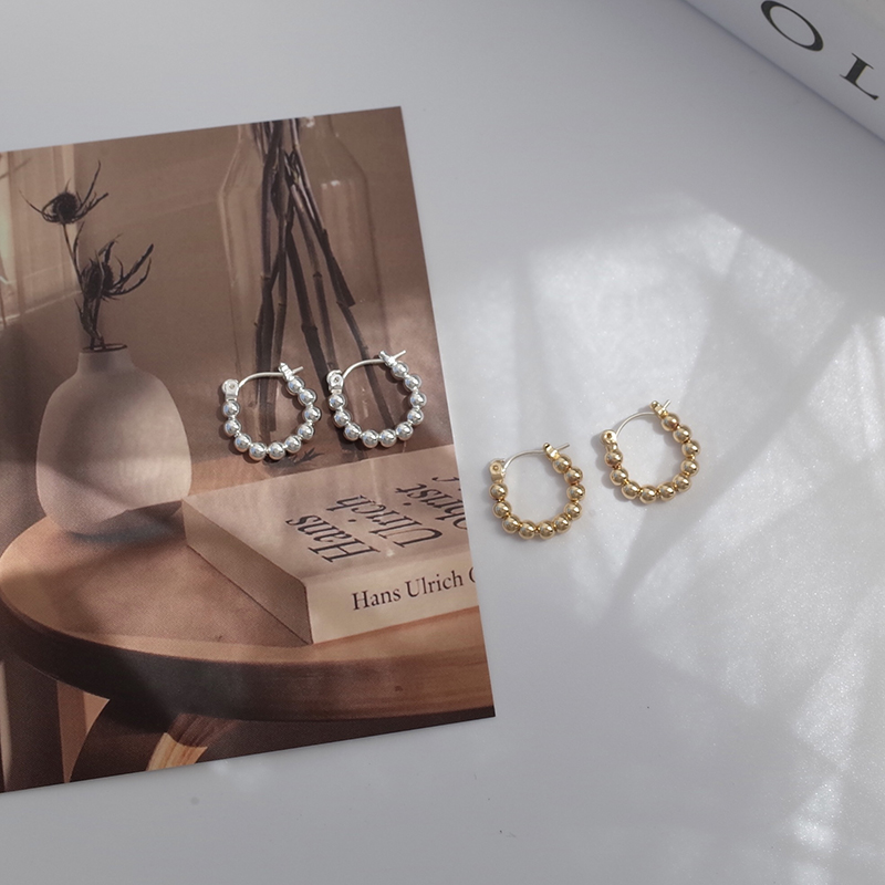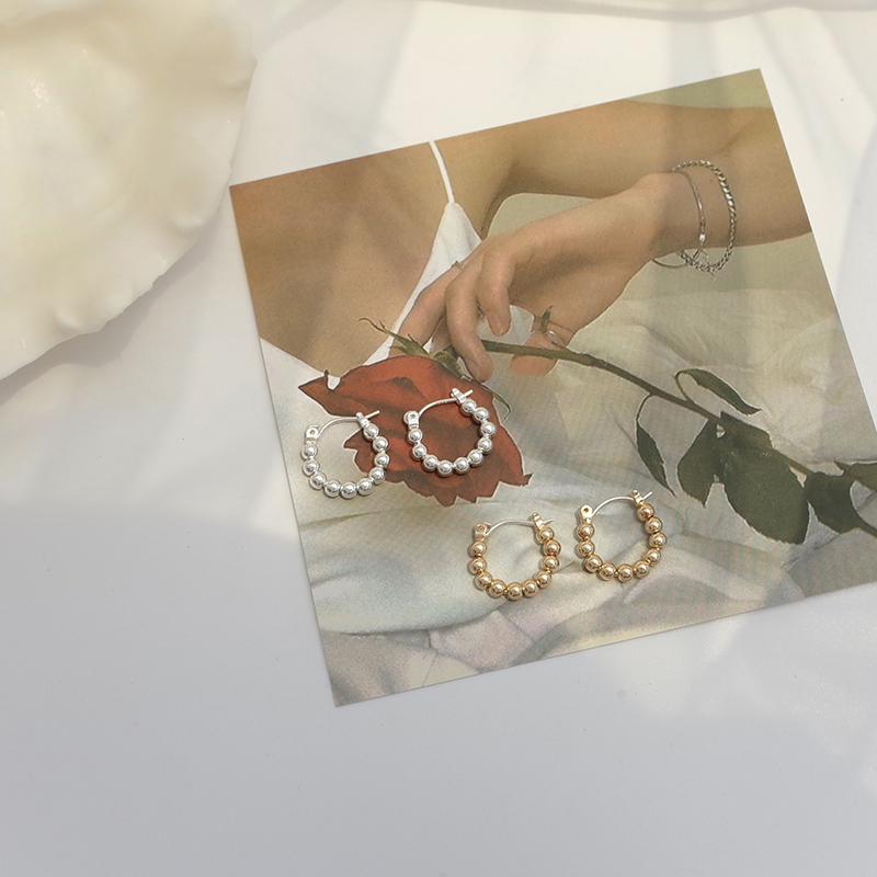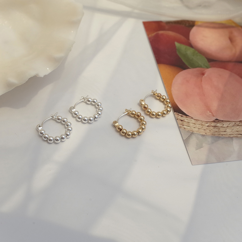 【迷度】S925銀針韓國簡約豆豆耳圈情侶百搭日常耳環 ins冷淡風1入