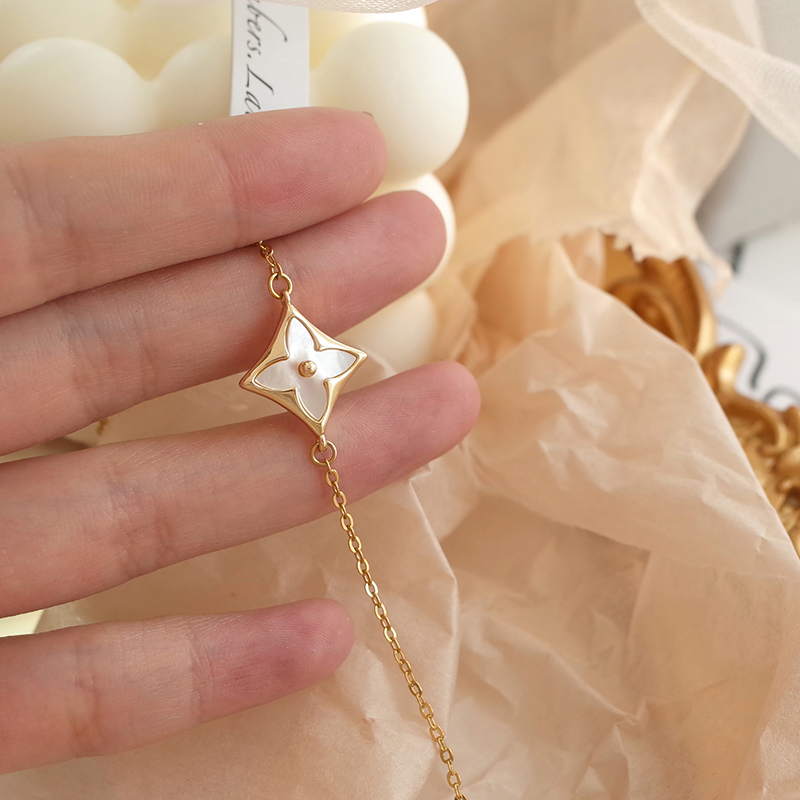 【迷度】14K鍍金簡約溫柔菱形貝殼鏈條手圈百搭 手鏈女學生簡約1入