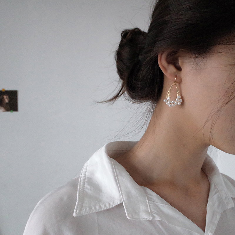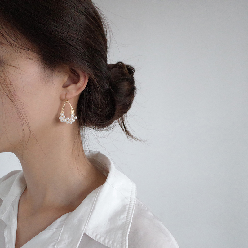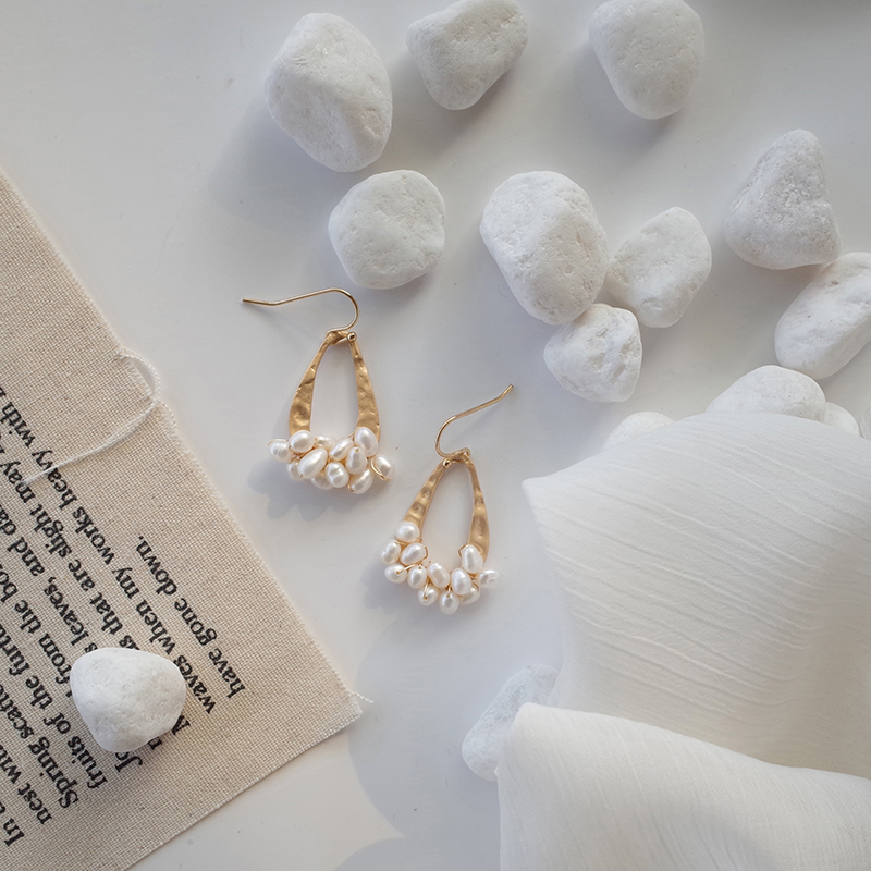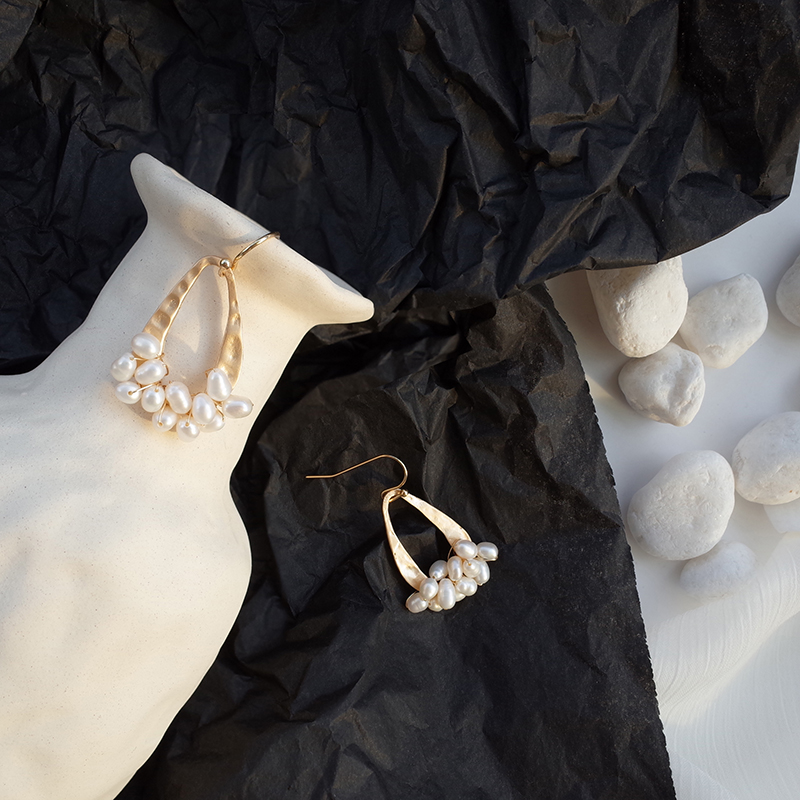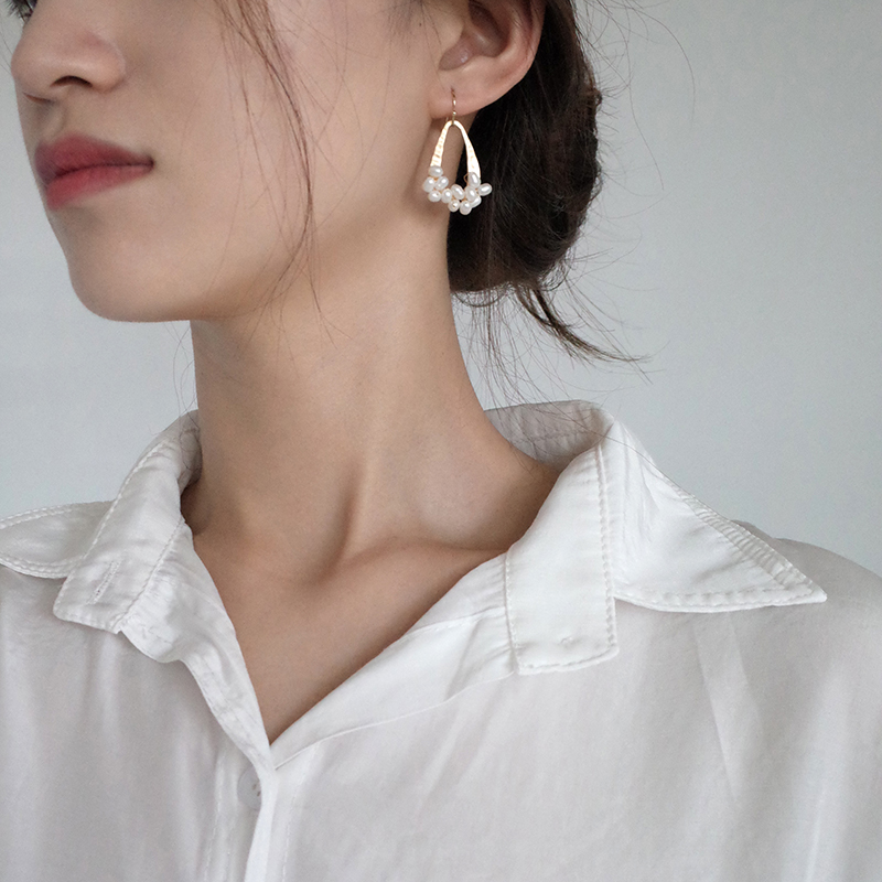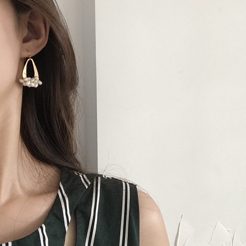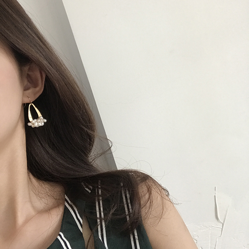 【迷度】冷淡風天然淡水珍珠耳環啞光幾何水滴耳墜森系耳環顯臉瘦1入