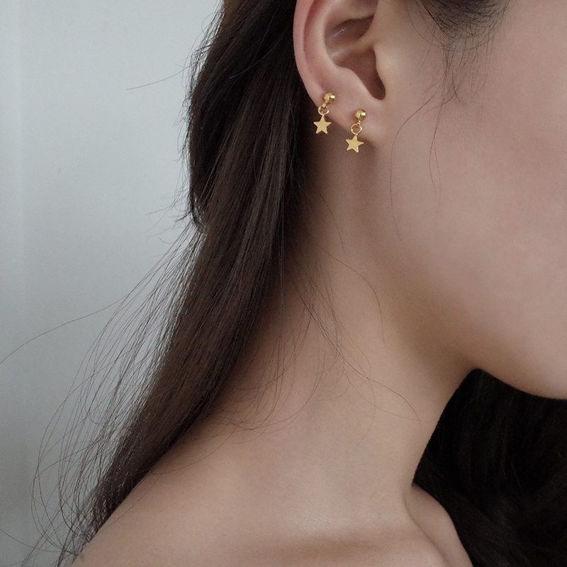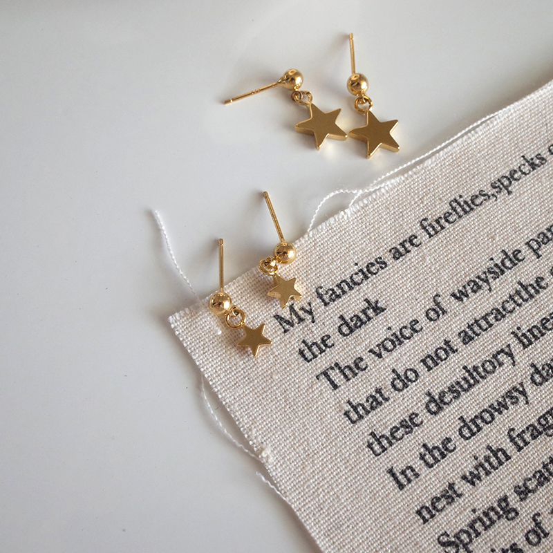 【迷度】14K包金迷你星星可愛耳釘chic個性耳墜耳飾少女心ins耳釘1入