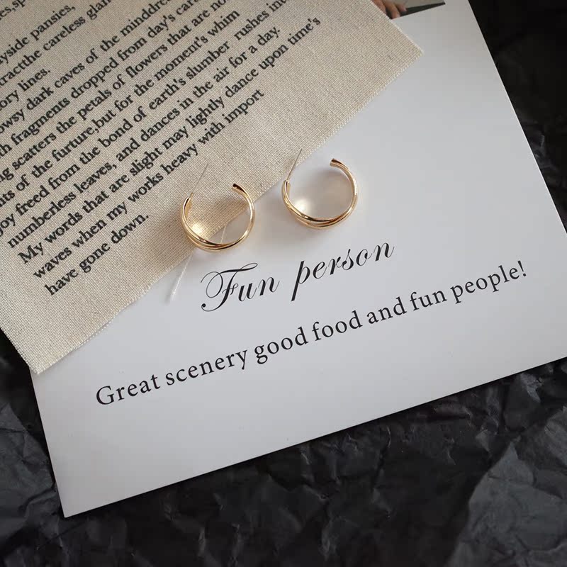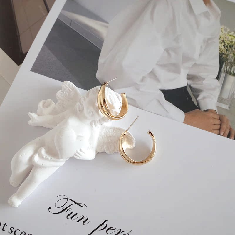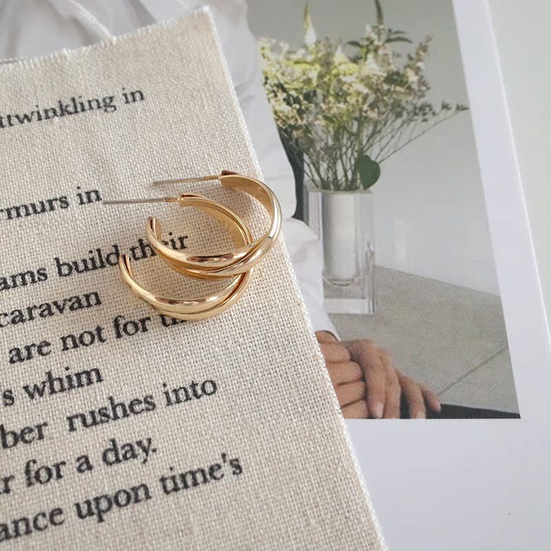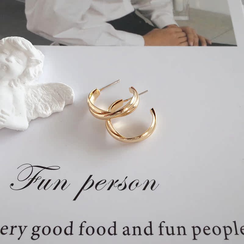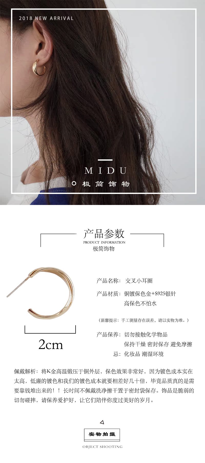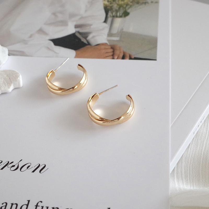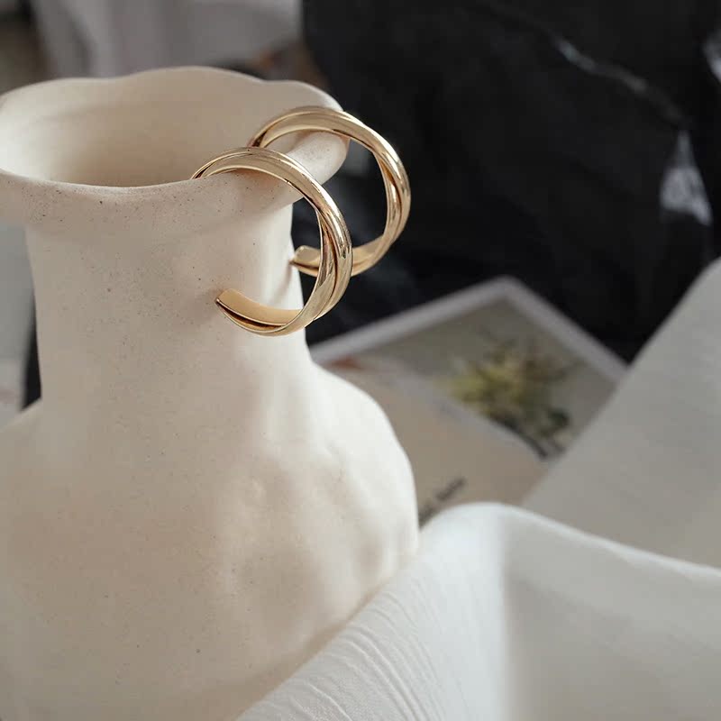 【迷度】S925銀針交叉耳圈ins個性圓圈耳釘 冷淡風 蹦迪耳環 網紅1入