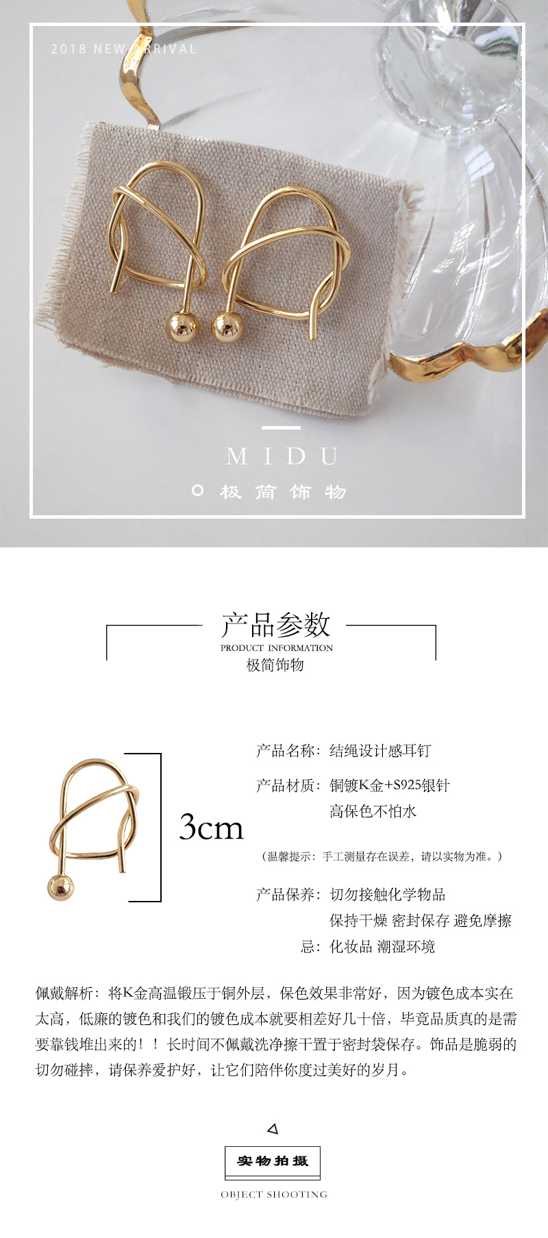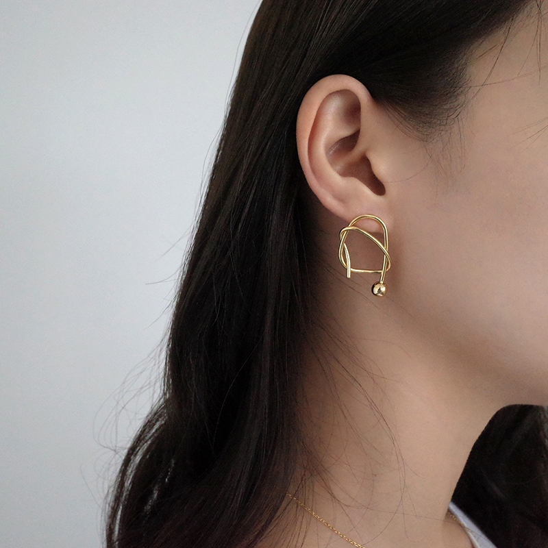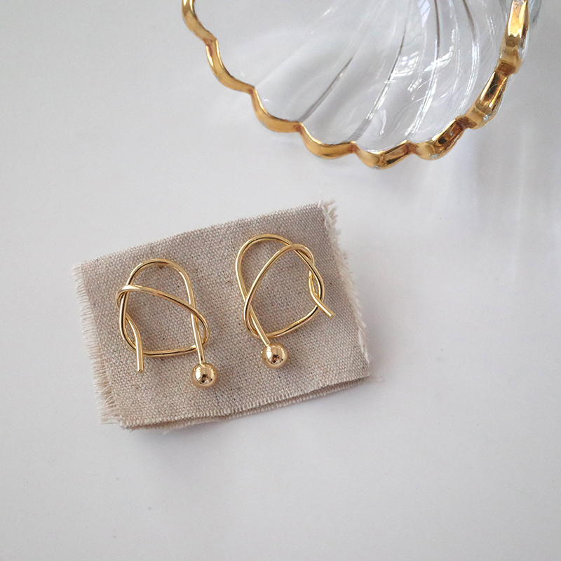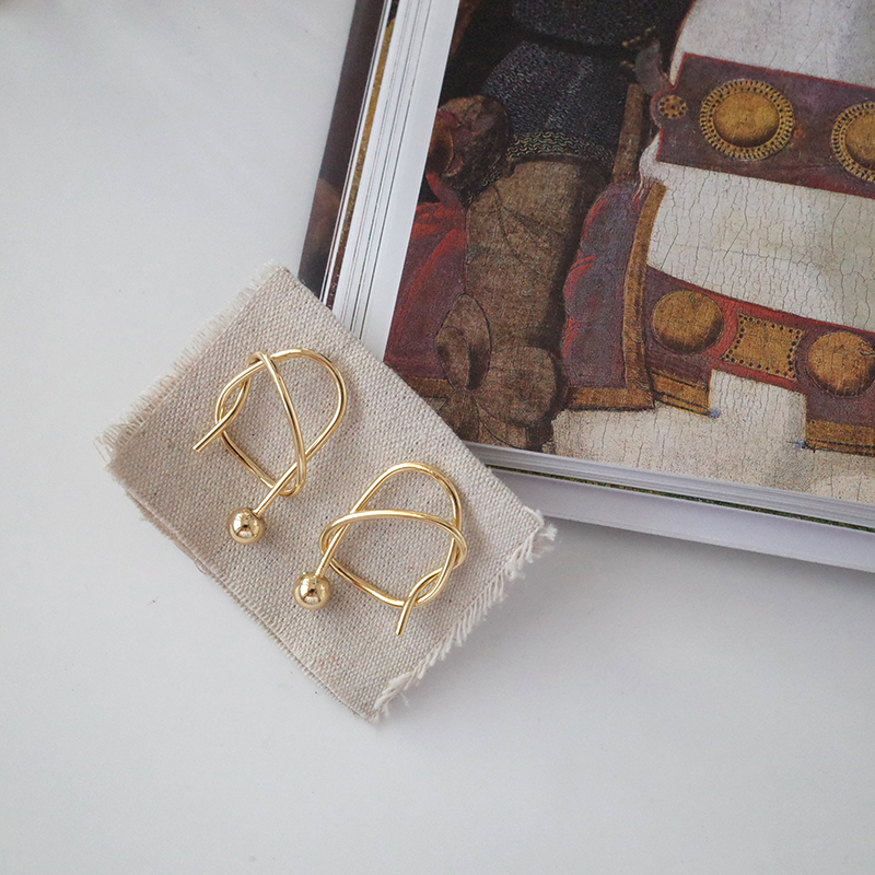 【迷度】S925銀針韓國chic時髦打結耳釘結繩耳環 女少女心ins耳釘1入