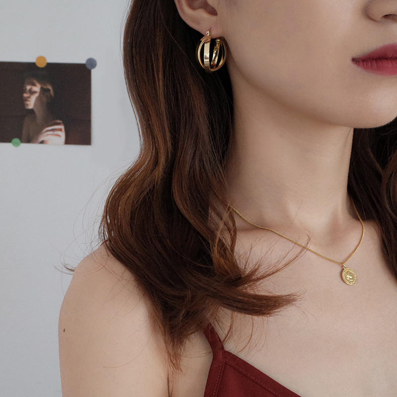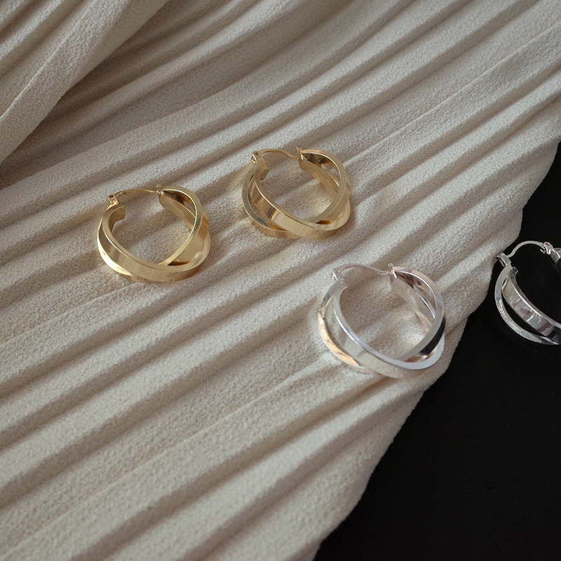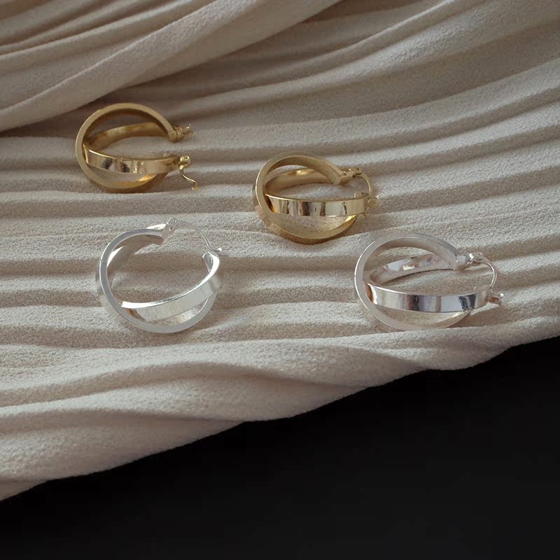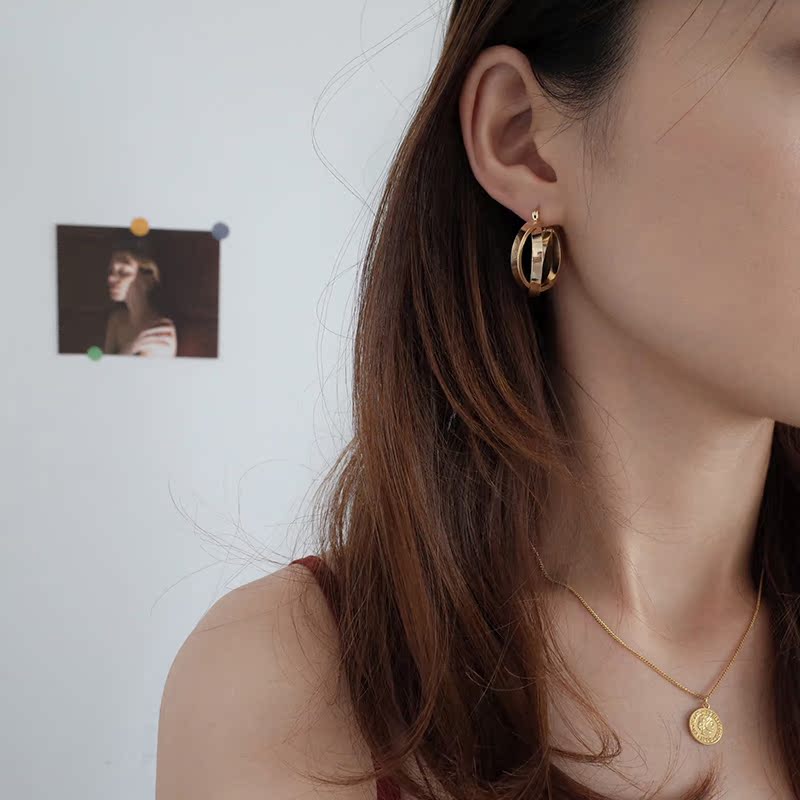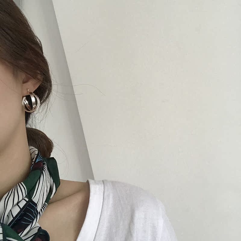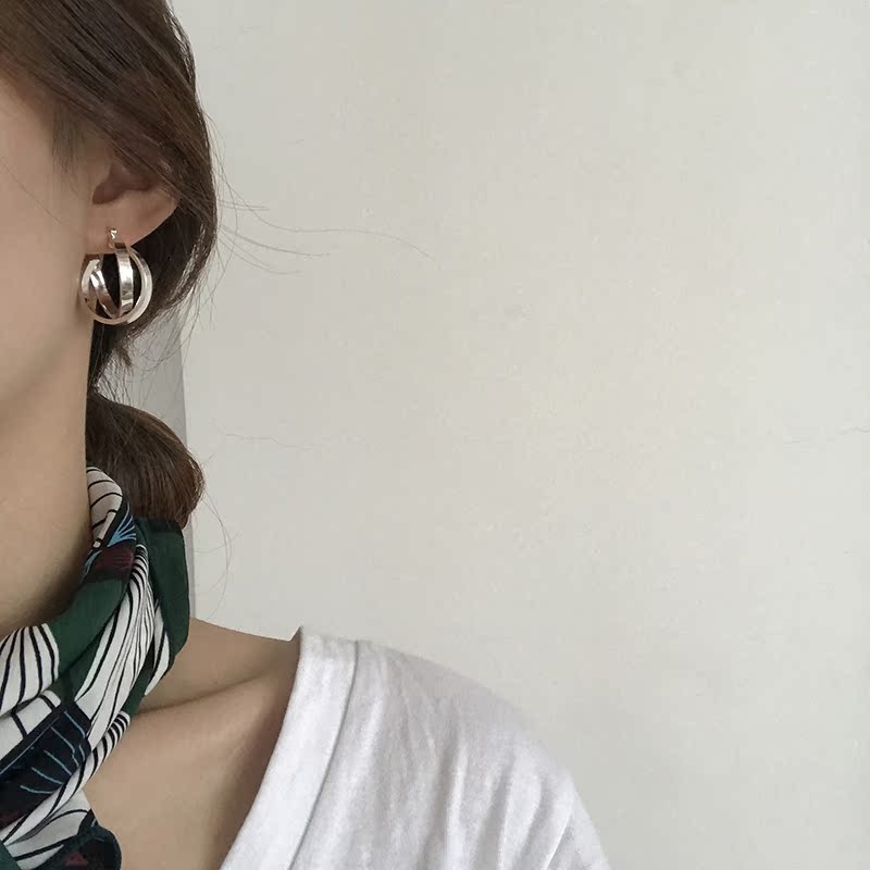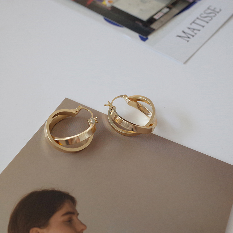 【迷度】ins港風復古時尚圓圈耳環氣質立體交叉耳圈冷淡風耳釘1入