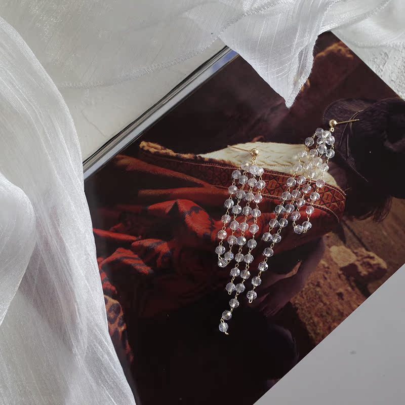 【迷度】S925銀針ins超仙網紅耳墜氣質流蘇耳環顯臉瘦的耳環 超仙1入