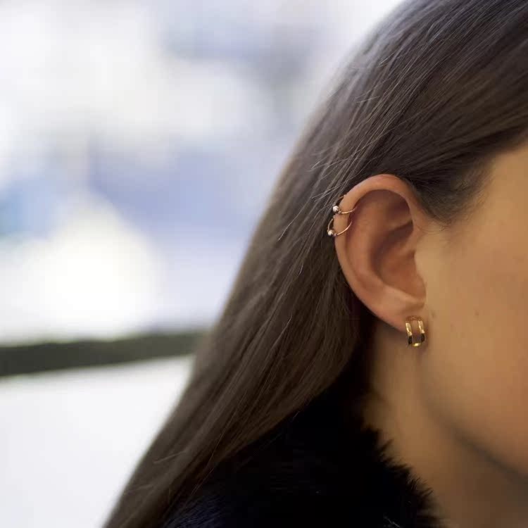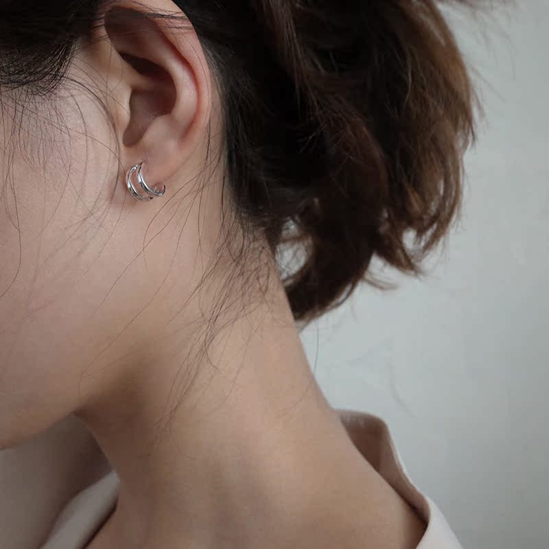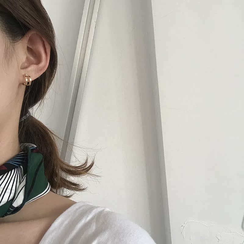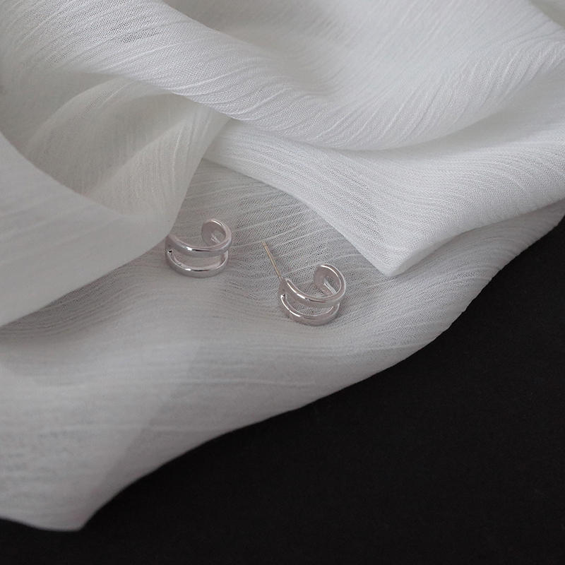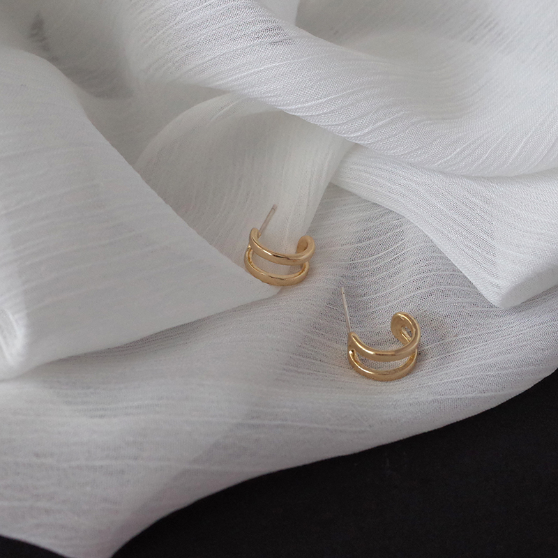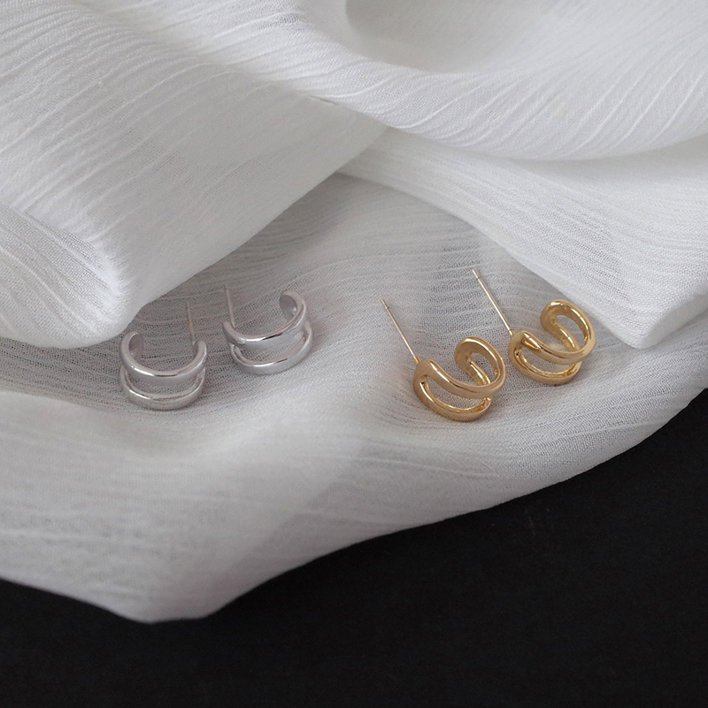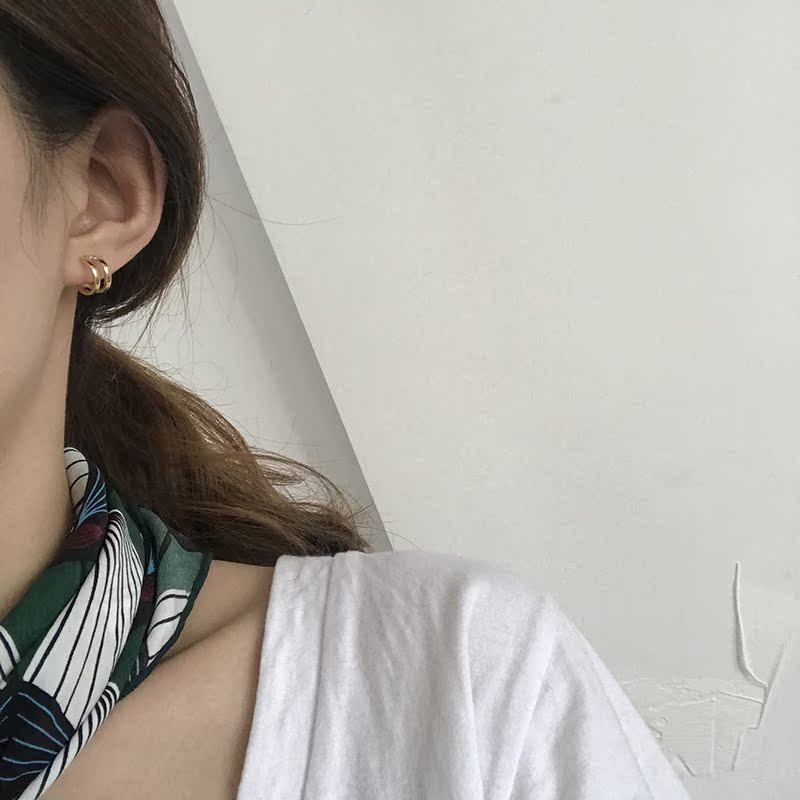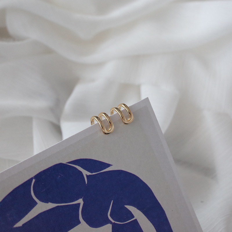 【迷度】S925銀針ins個性港風耳釘雙線小耳圈 冷淡風 創意蹦迪1入