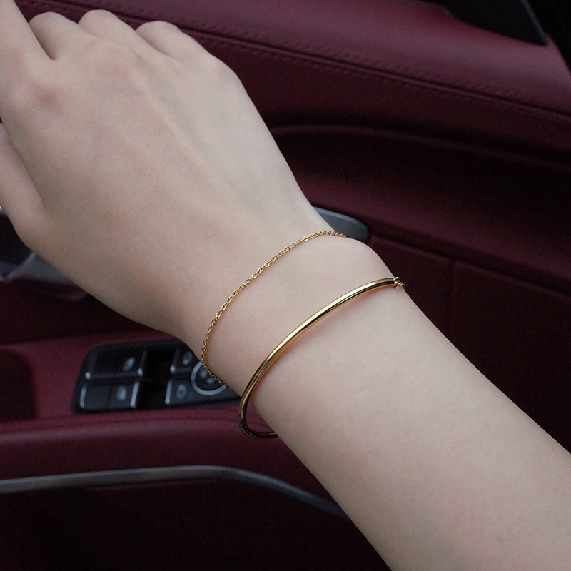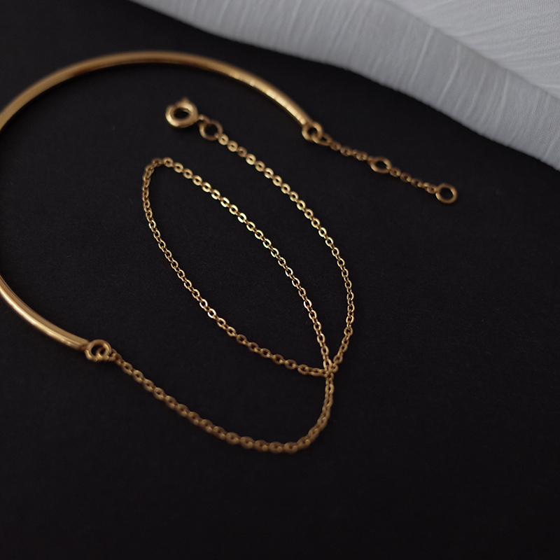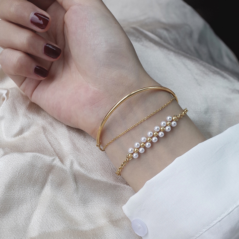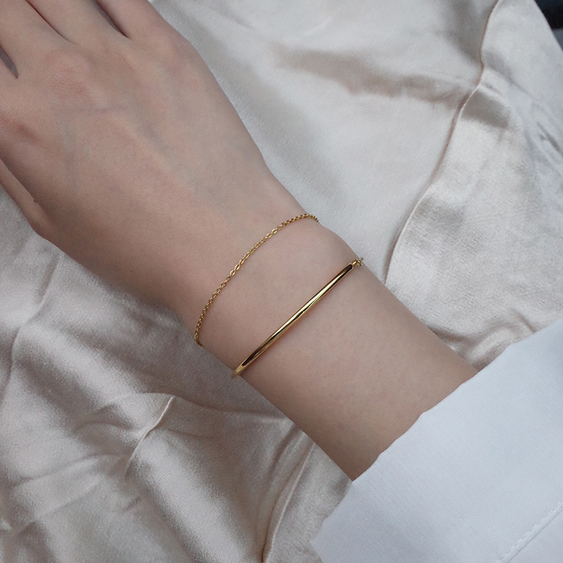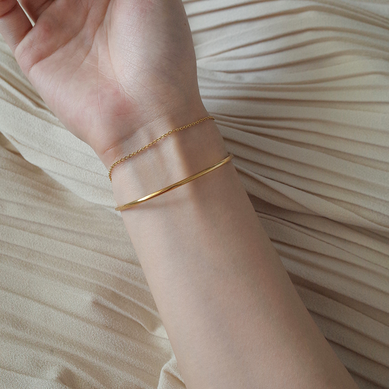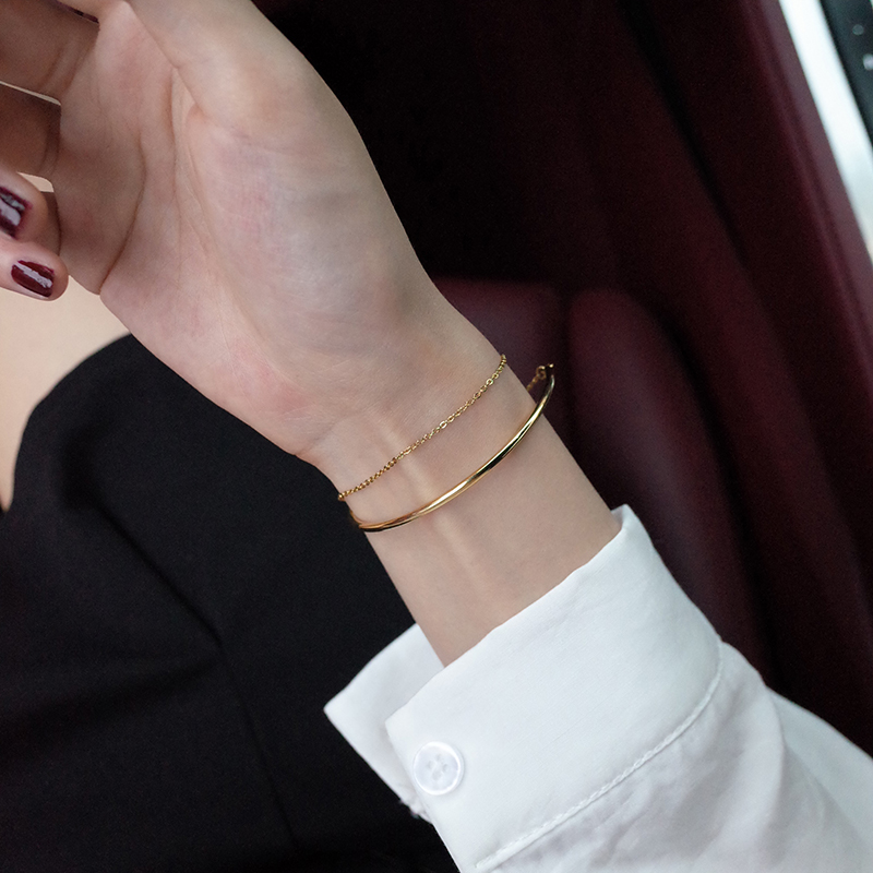 【迷度】14K鍍金簡約個性鏈條手鐲手圈 雙層手鏈氣質 冷淡風手鏈1入