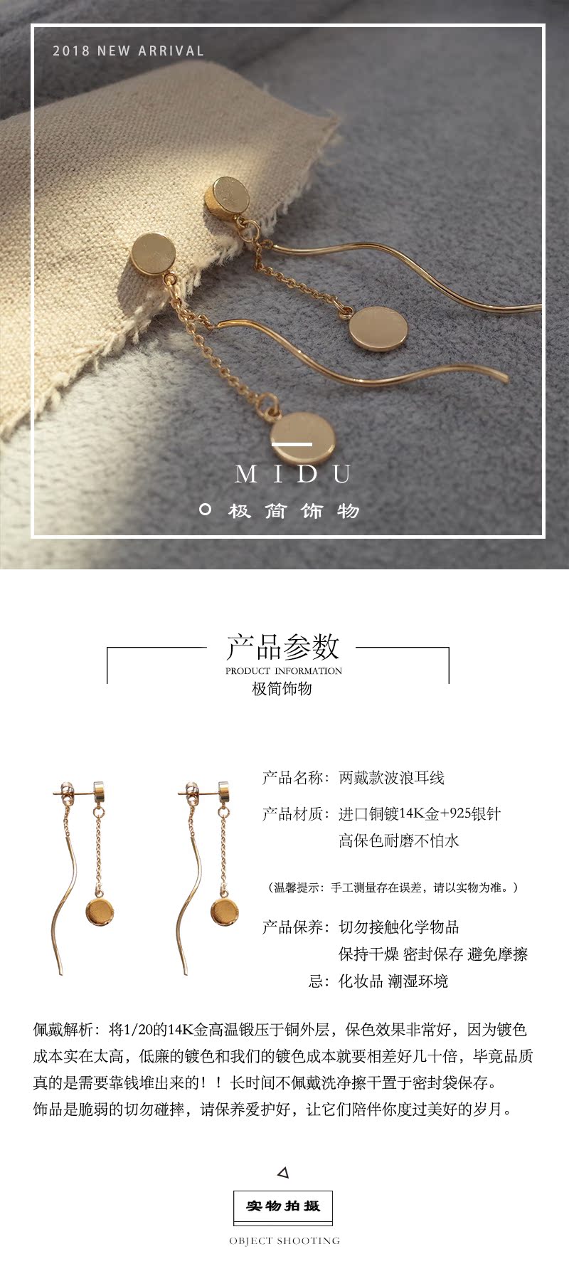 【迷度】原創S925銀針圓片耳釘波浪耳線兩戴款顯臉瘦的耳環 超仙1入