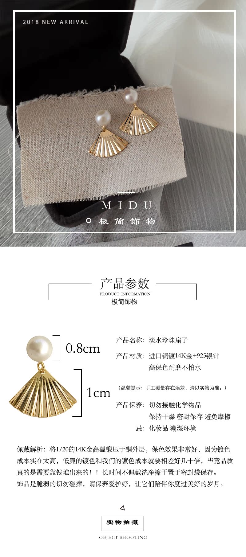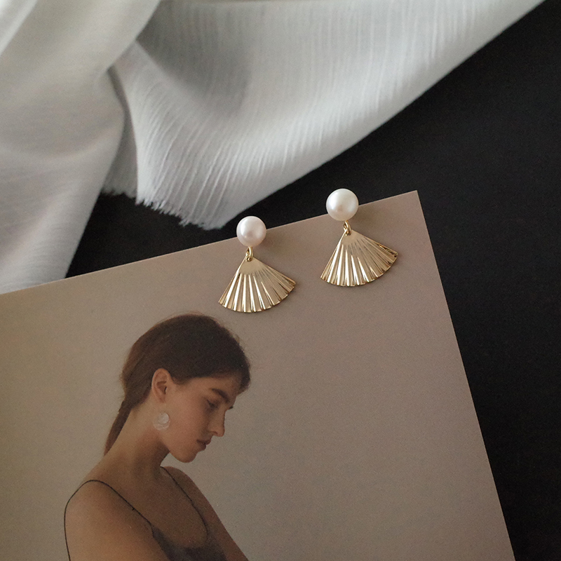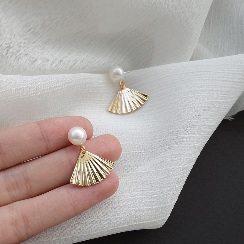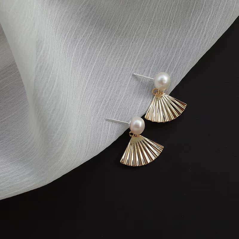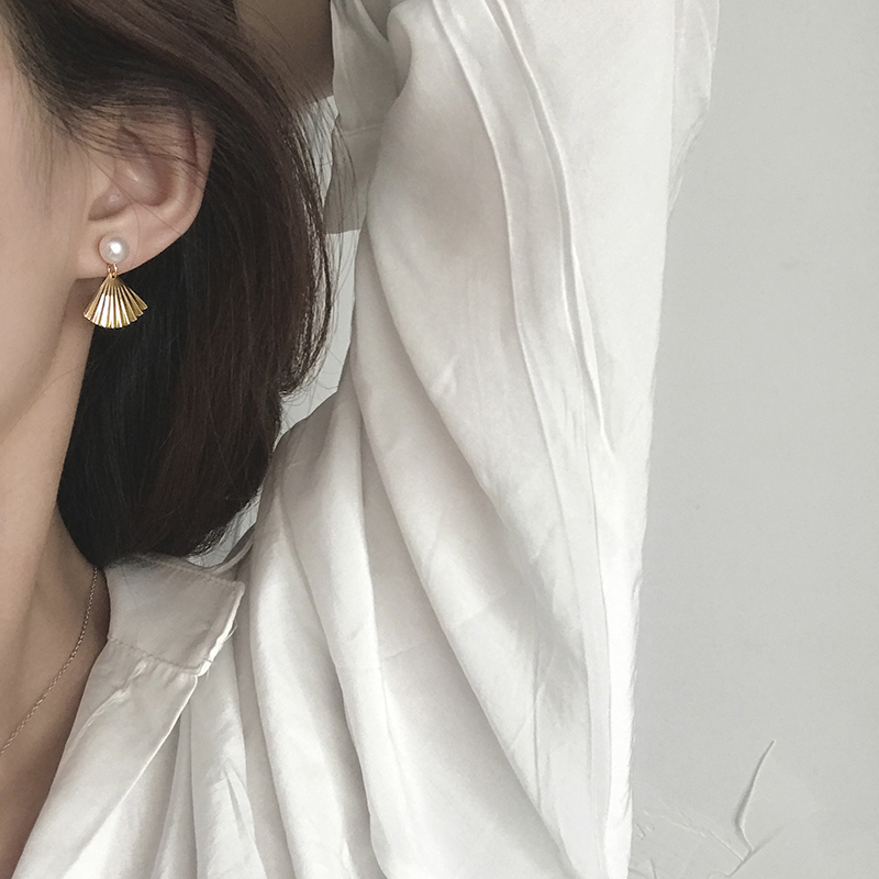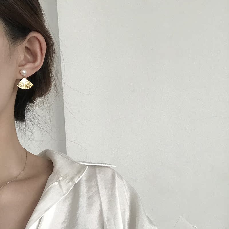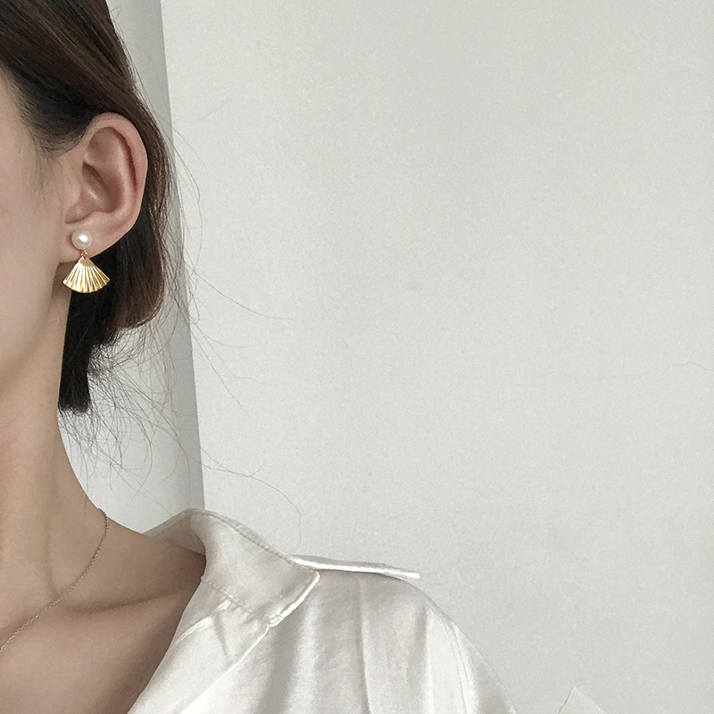 【迷度】天然淡水珍珠S925銀針扇子耳釘復古氣質耳飾森系耳環1入