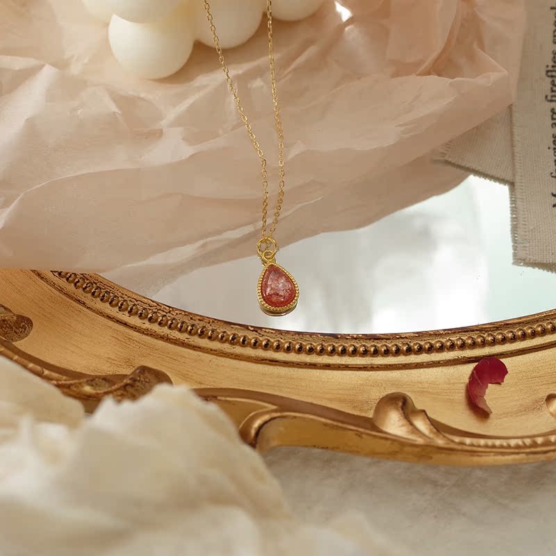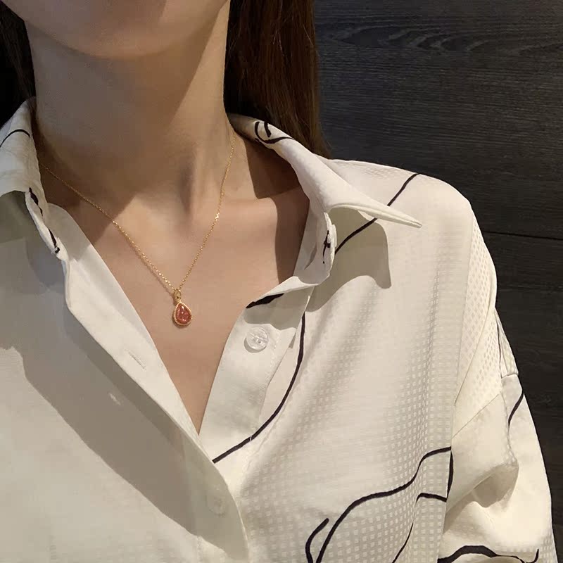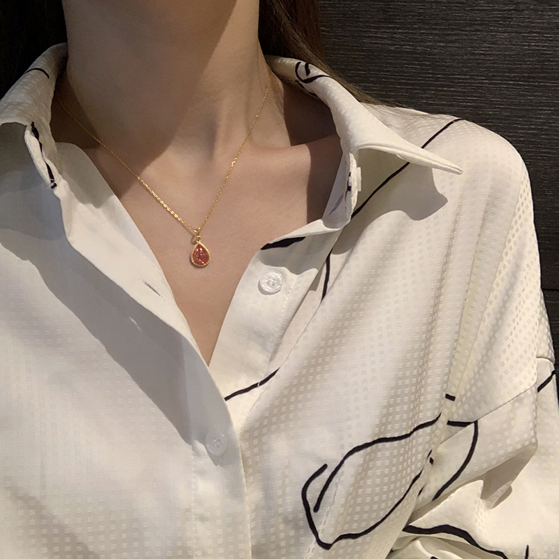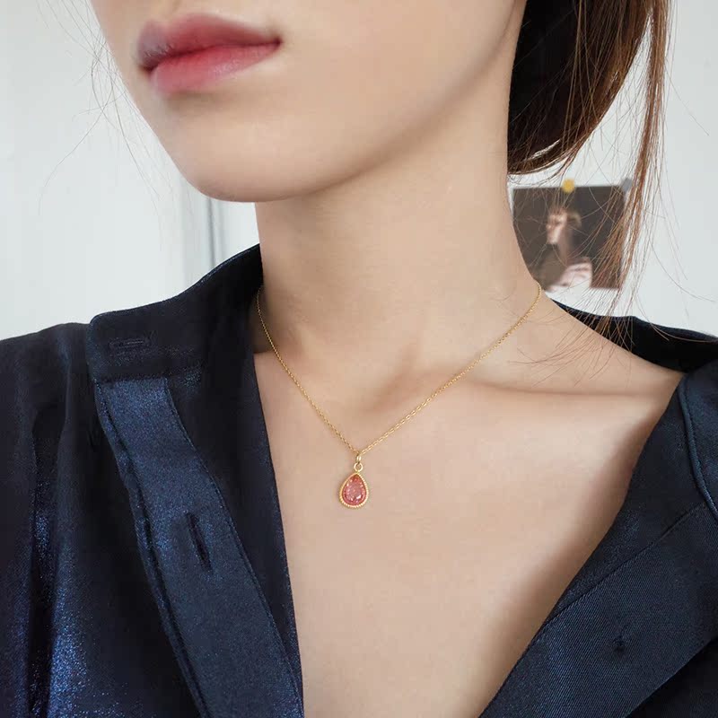 【迷度】通體925純銀法式復古胭脂紅寶石項鏈鎖骨鏈輕奢項鏈小眾1入