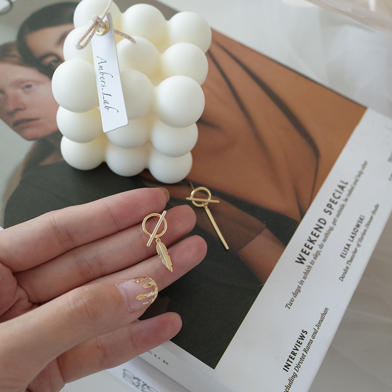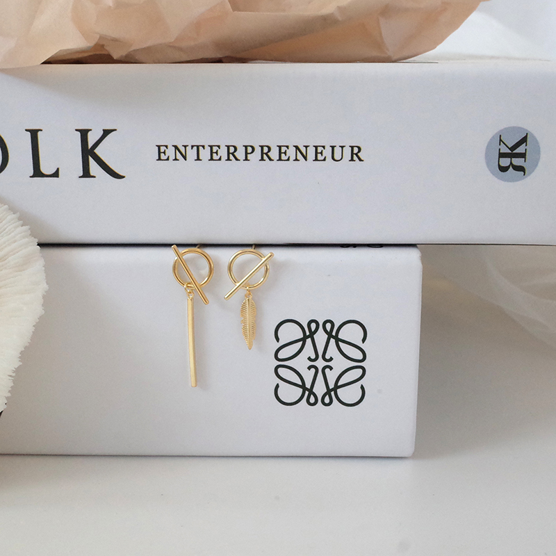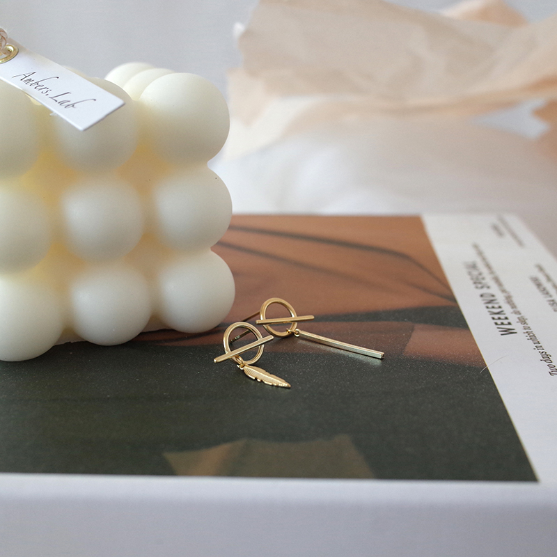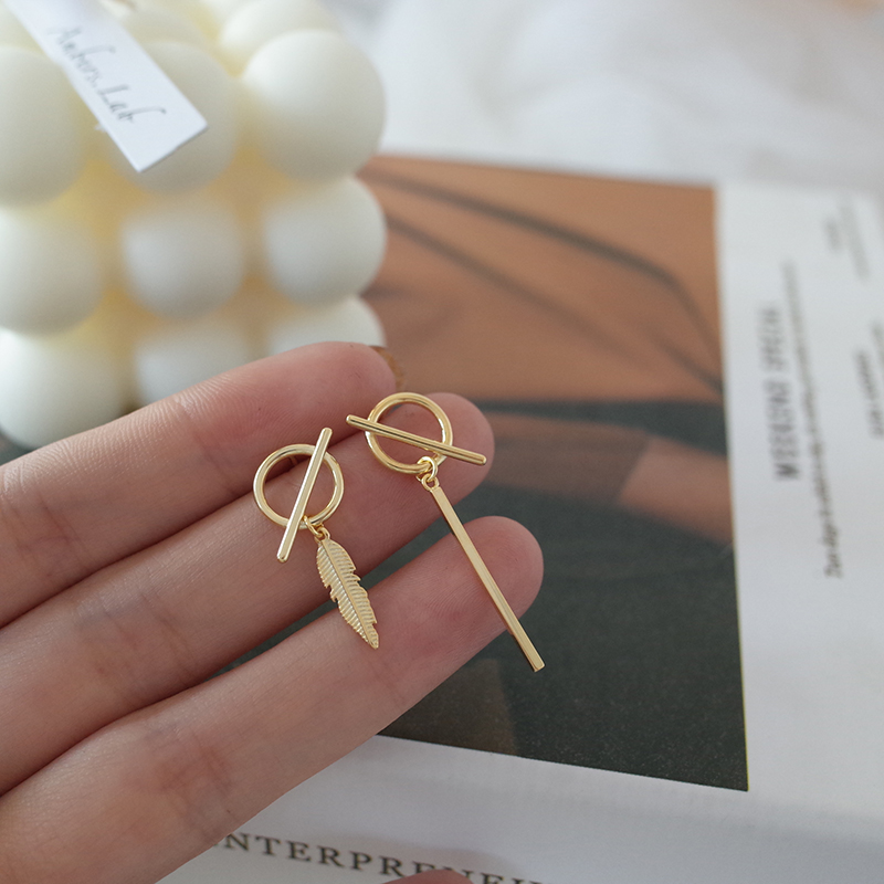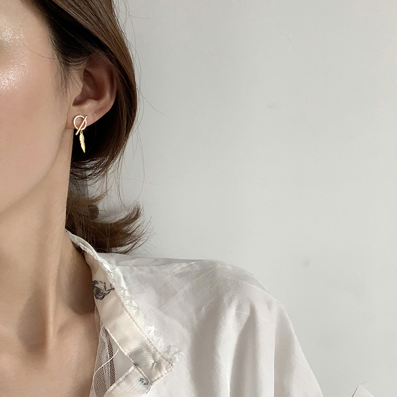 【迷度】通體925純銀幾何不對稱羽毛一字耳環耳墜仙氣 森系 超仙1入