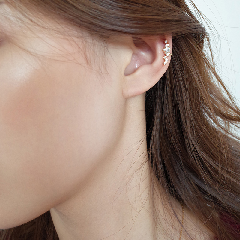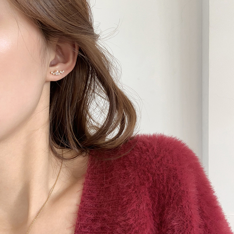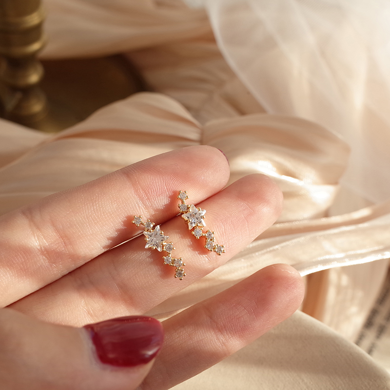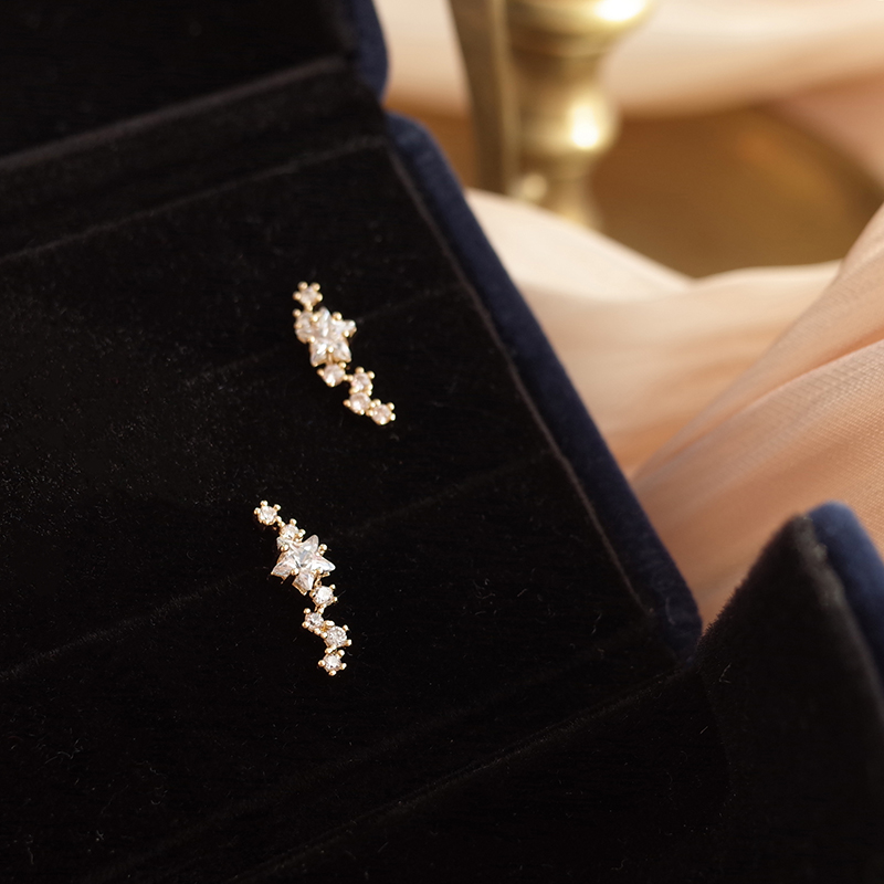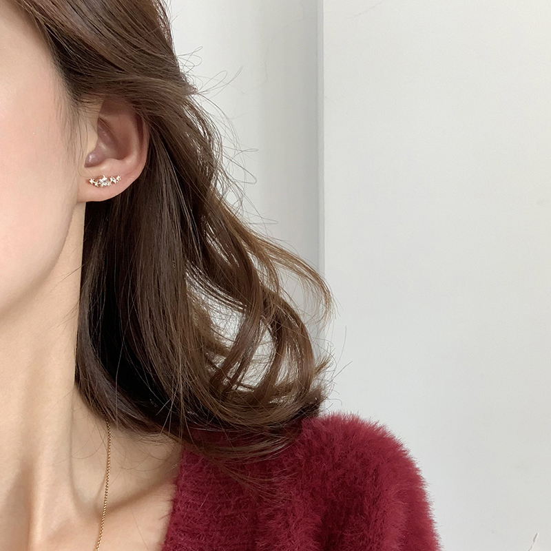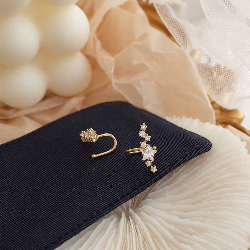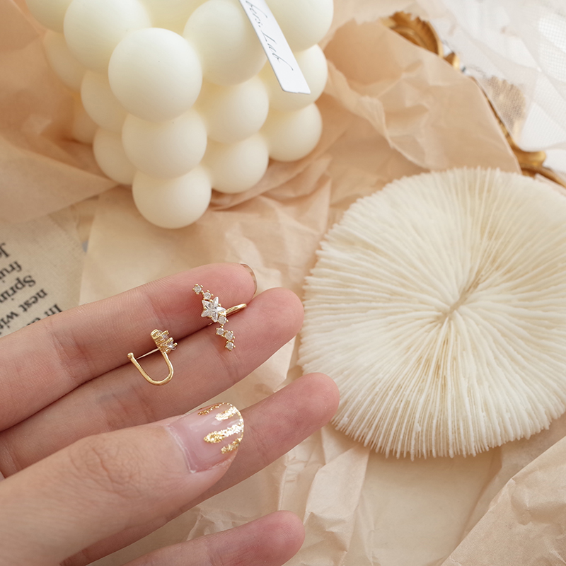 【迷度】S925銀針超閃星星鋯鉆耳釘百搭無耳洞耳夾女簡約冷淡風1入