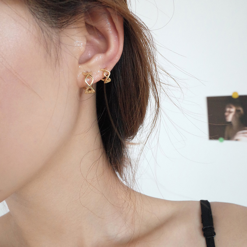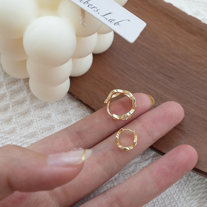 【迷度】通體925純銀鏤空耳圈波浪紋理耳環女冷淡風設計感耳釘1入