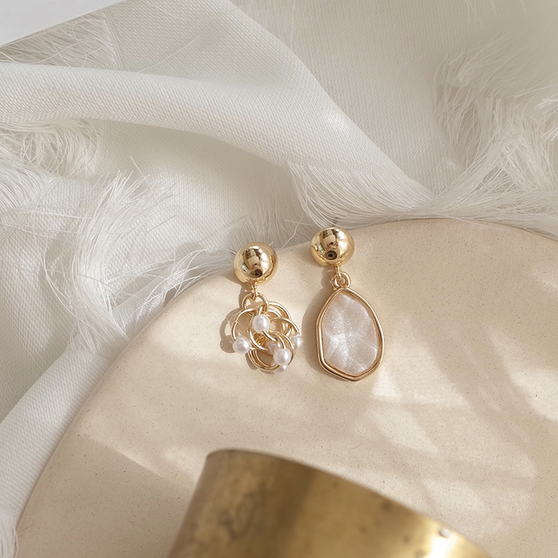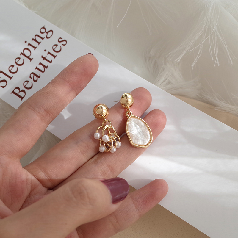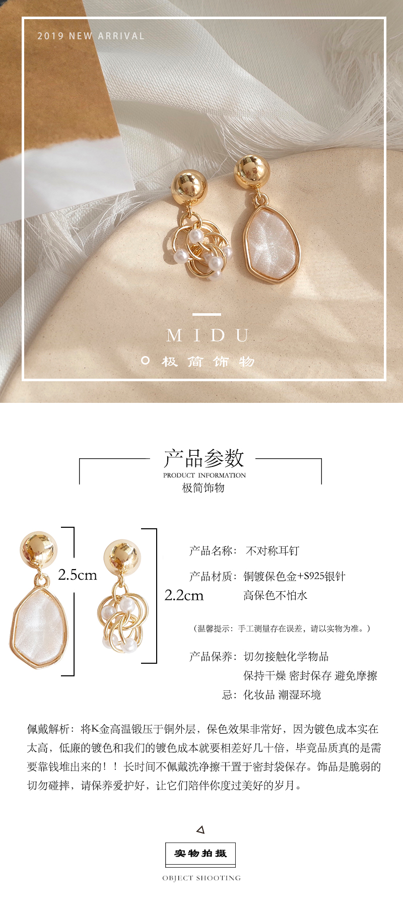 【迷度】S925銀針韓國甜美不對稱耳釘氣質珍珠耳墜仙氣 森系 超仙1入