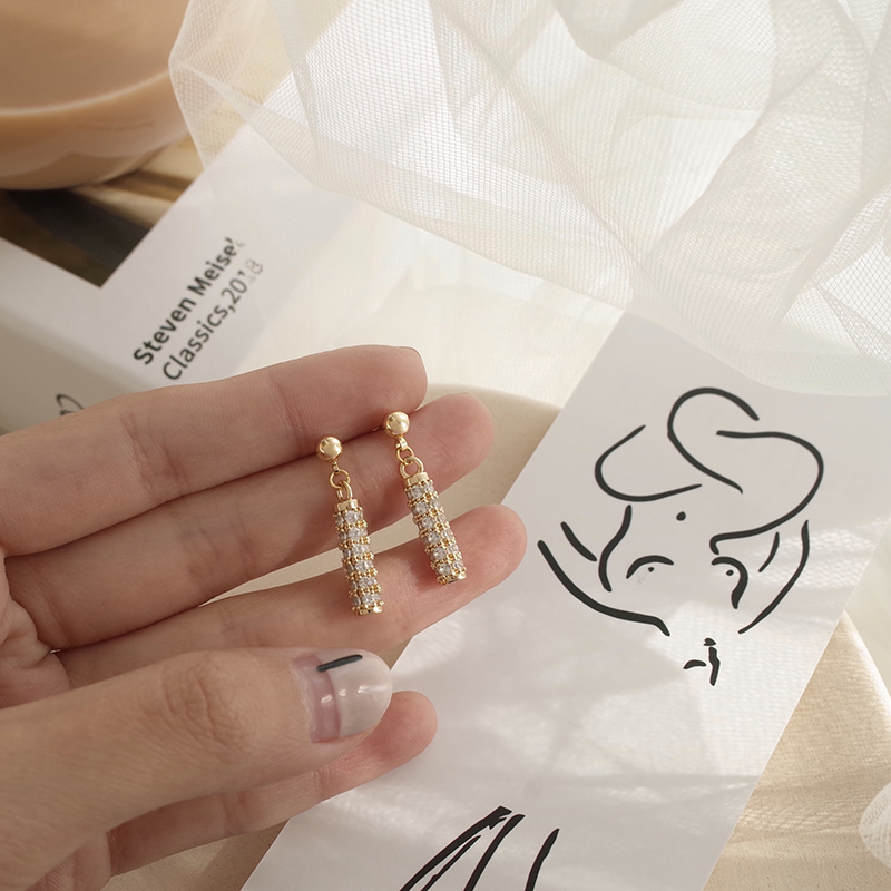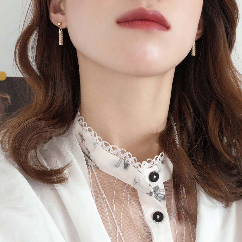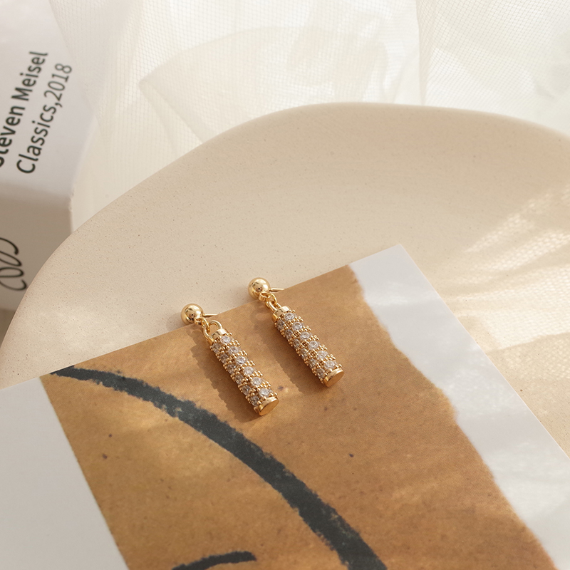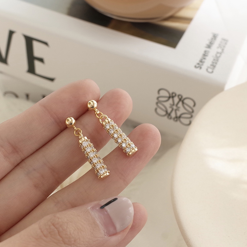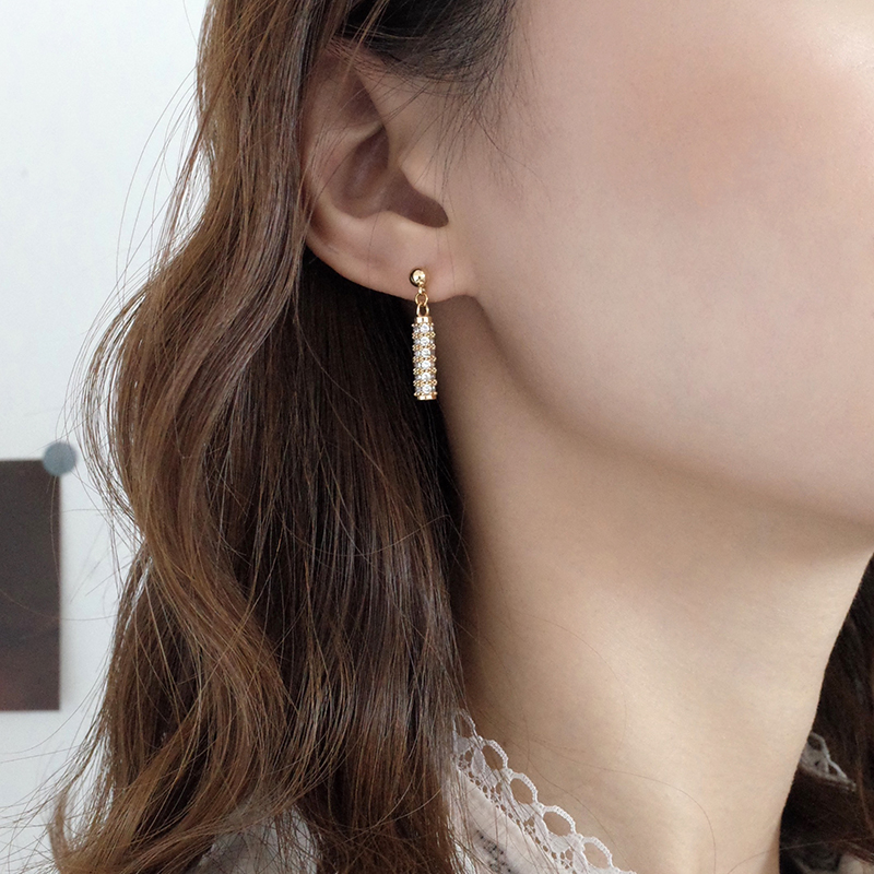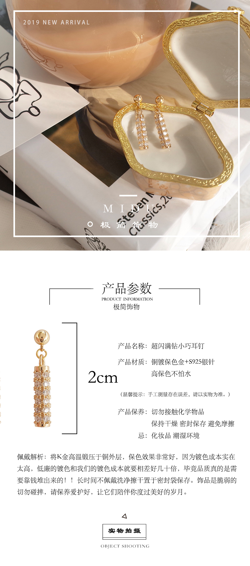【迷度】S925銀針獨家設計耳環百搭滿鉆圓柱耳釘耳夾上班適合戴1入
