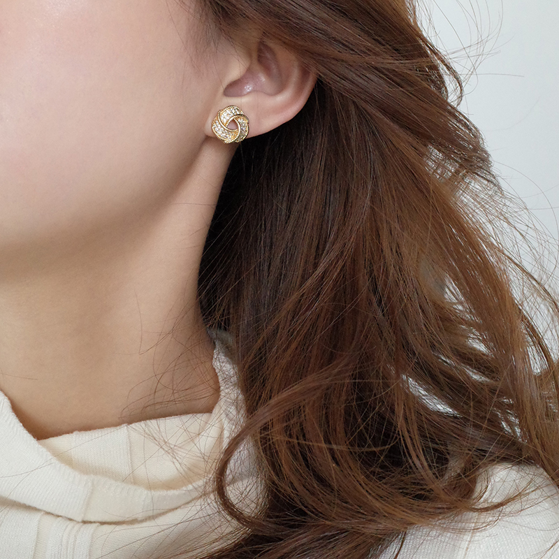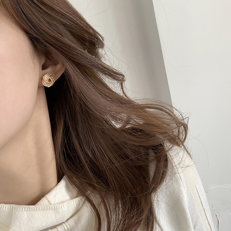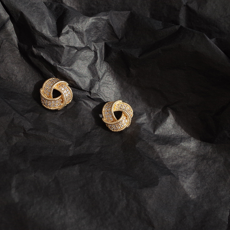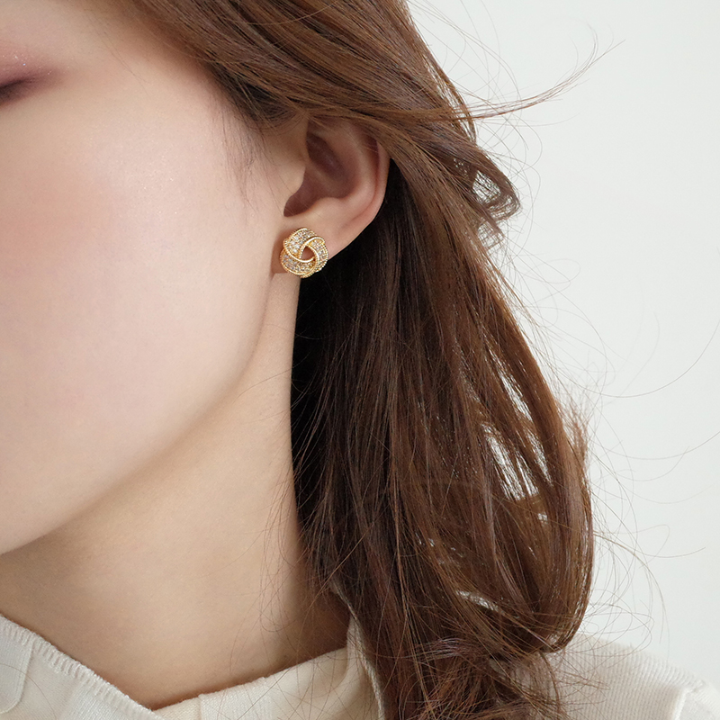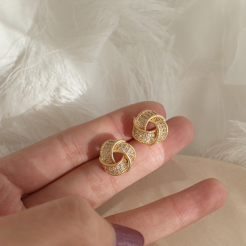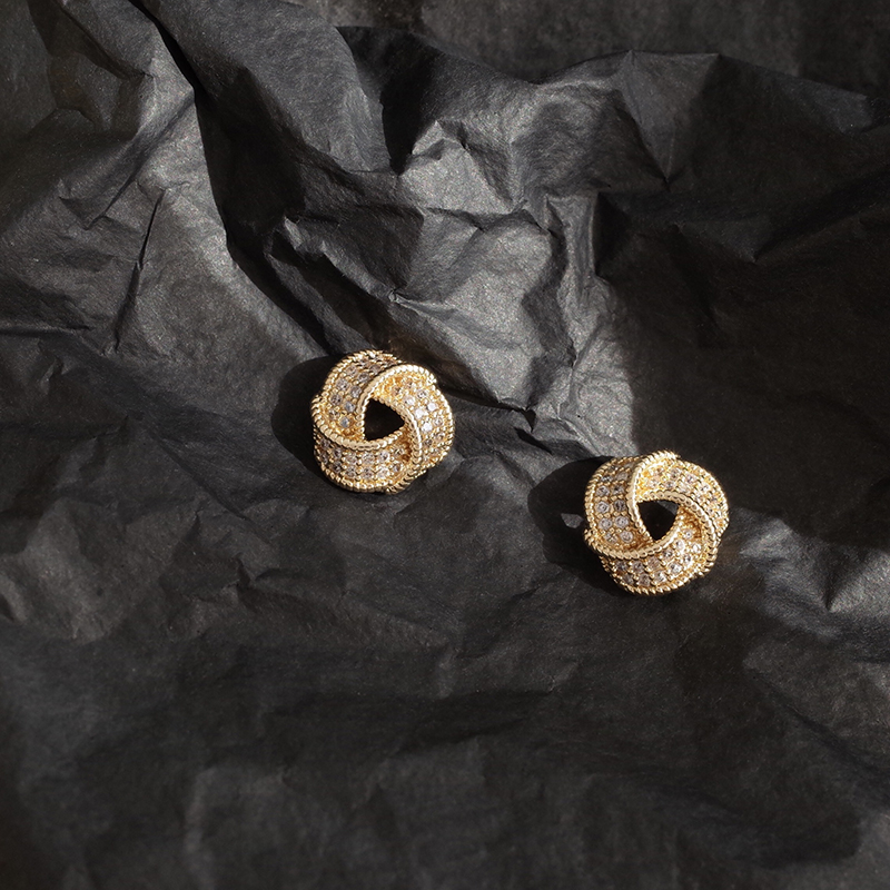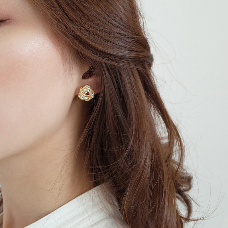 【迷度】S925銀針滿鉆氣質百搭扭曲三角形耳釘女耳夾簡約精致1入