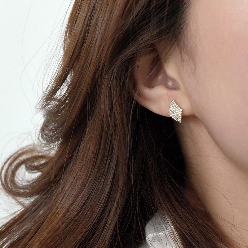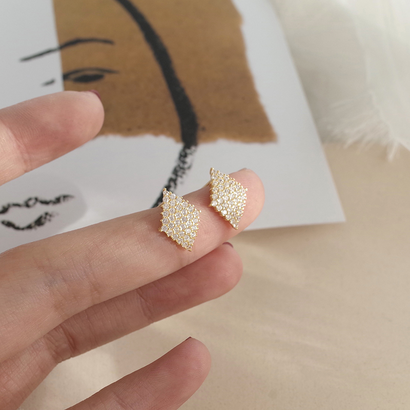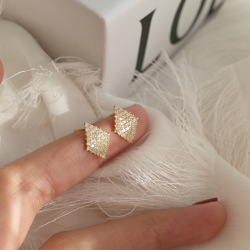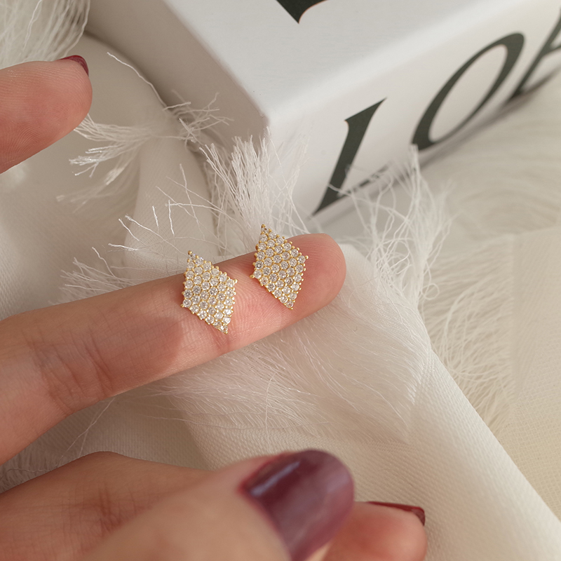 【迷度】通體925純銀超閃菱形鋯鉆耳釘韓國氣質日常 高級感百搭1入