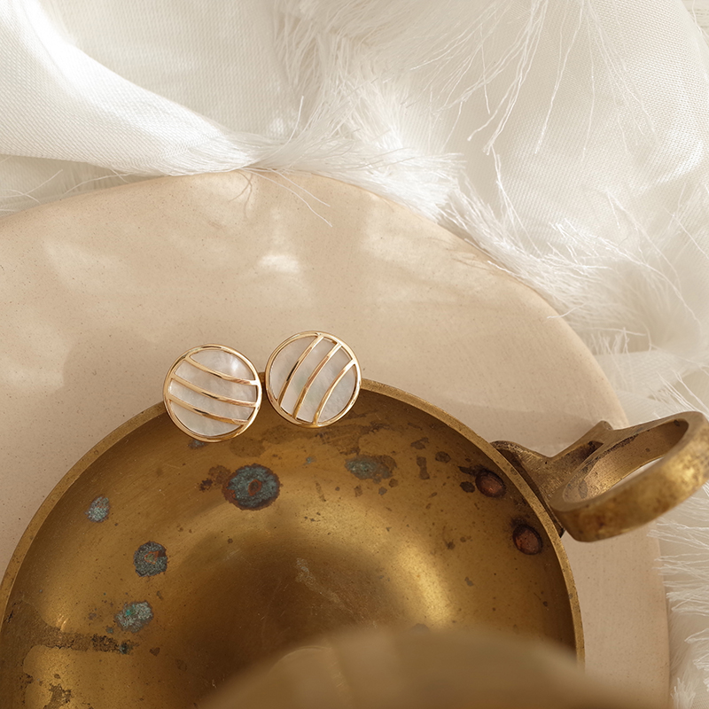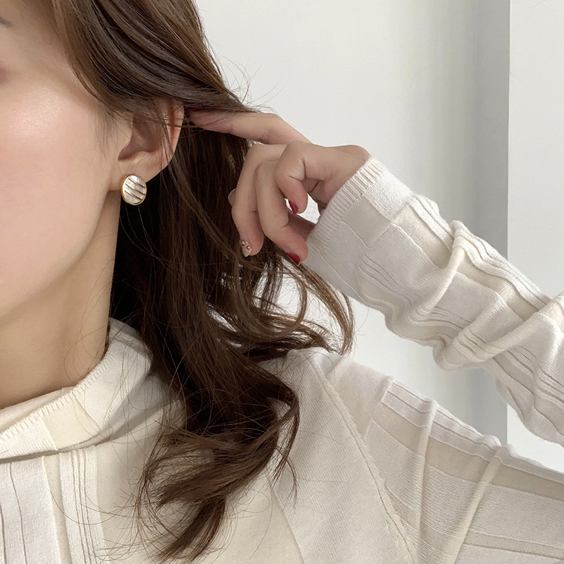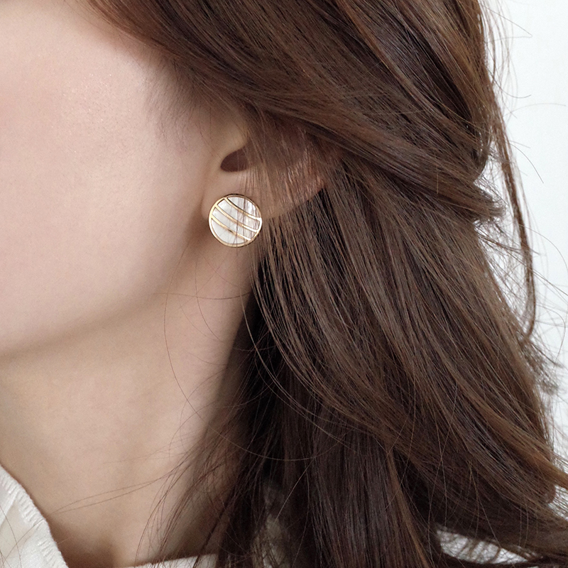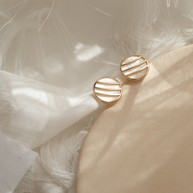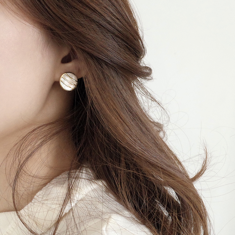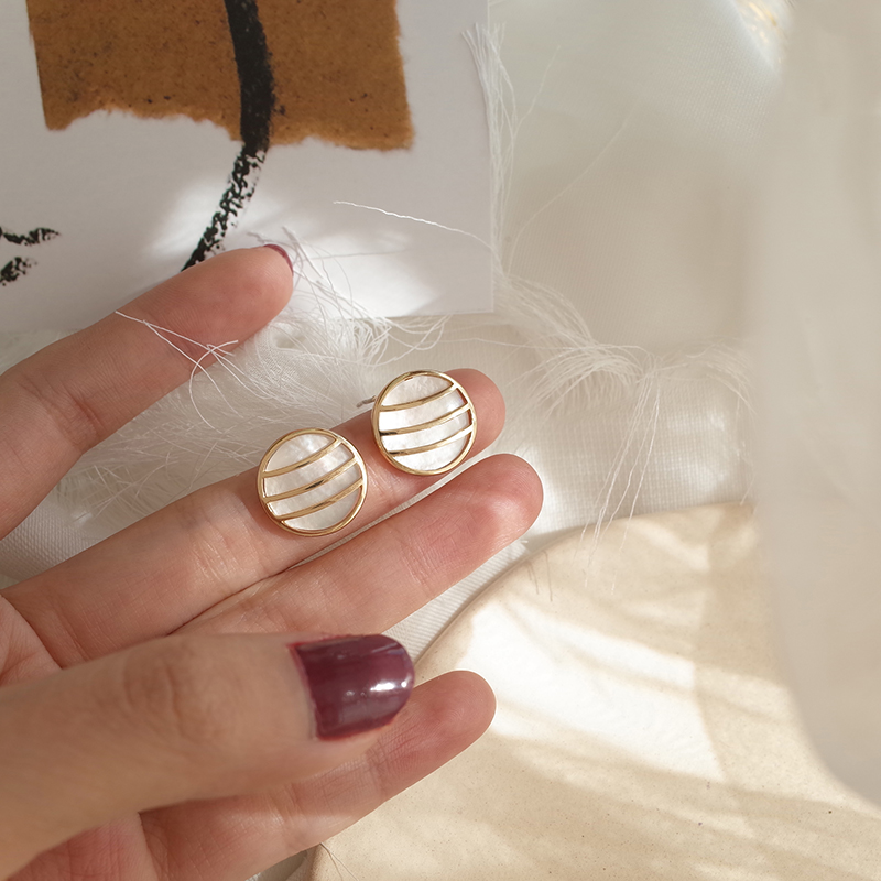 【迷度】S925銀針法式復古精致天然白貝母耳釘女簡約氣質女神范1入