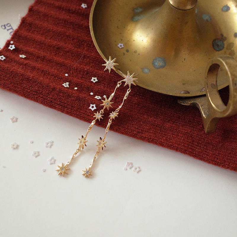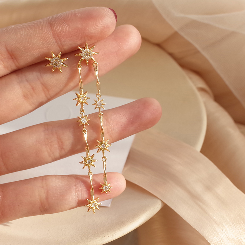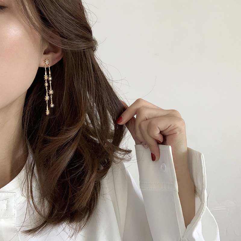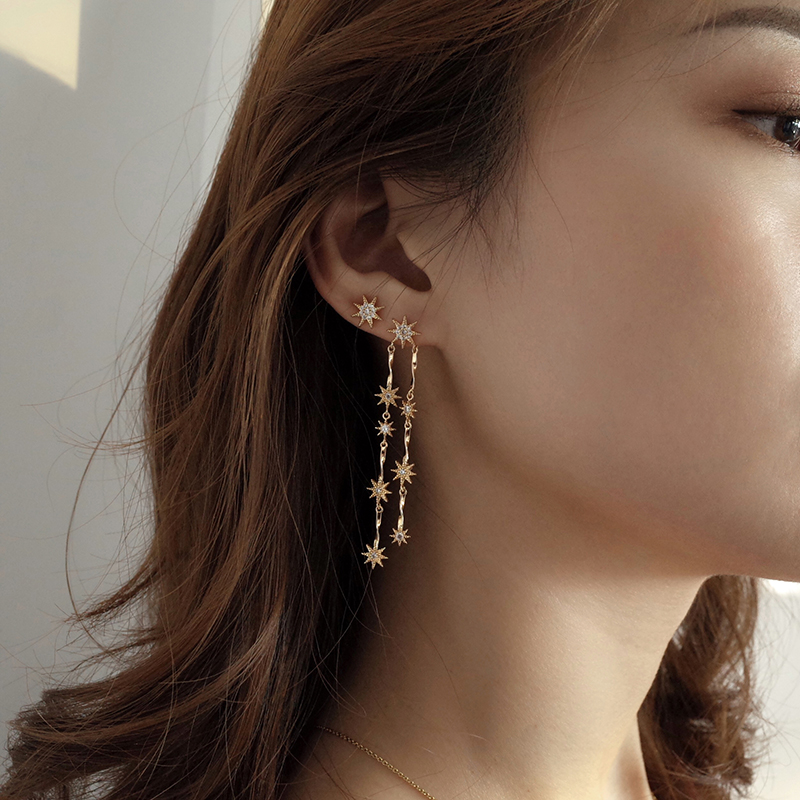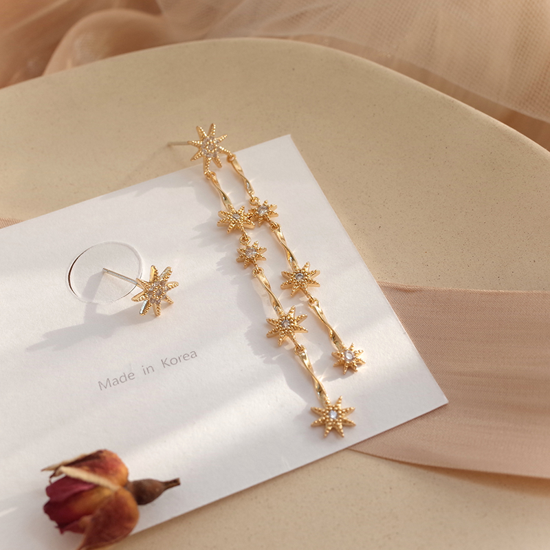 【迷度】S925銀針溫柔氣質星星長款耳環不對稱耳釘耳環女長款氣質1入