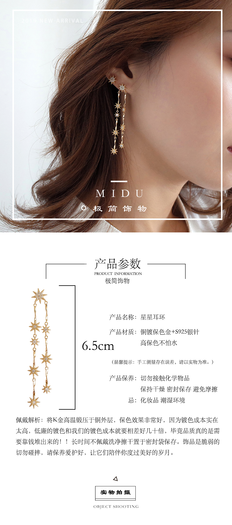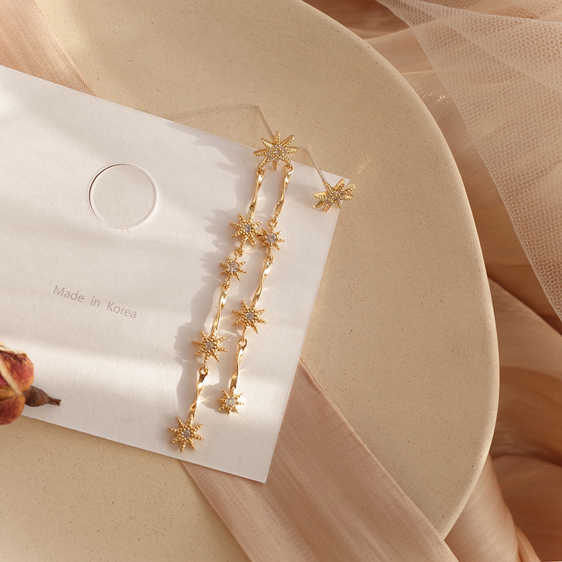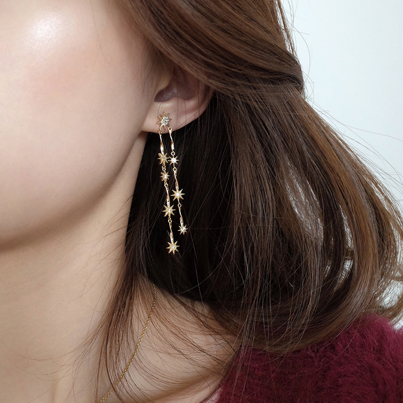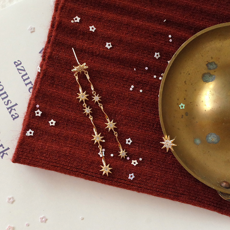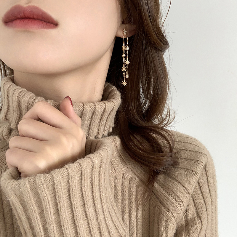 【迷度】S925銀針溫柔氣質星星長款耳環不對稱耳釘耳環女長款氣質1入