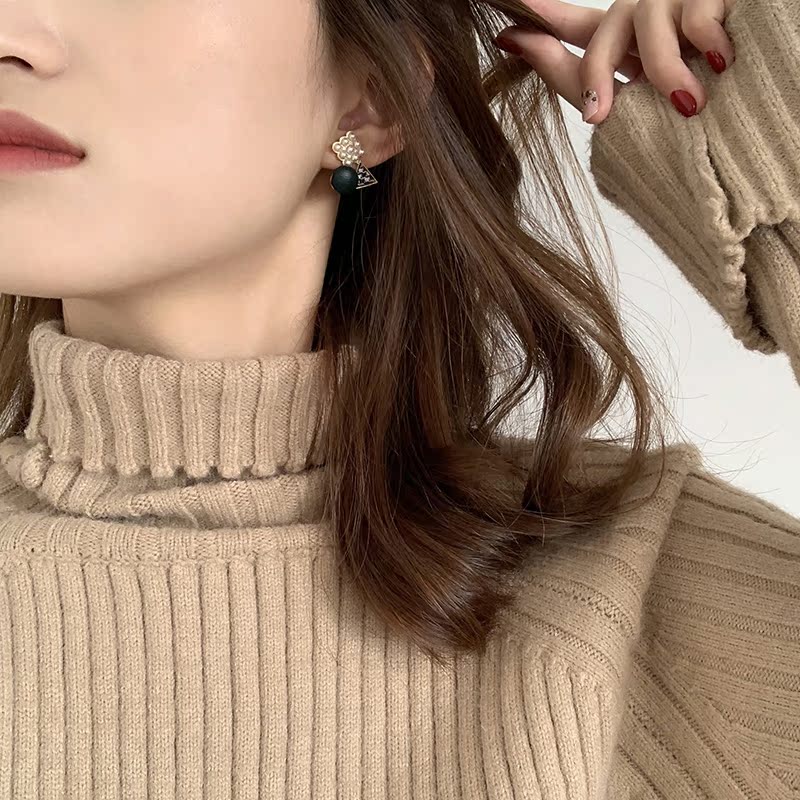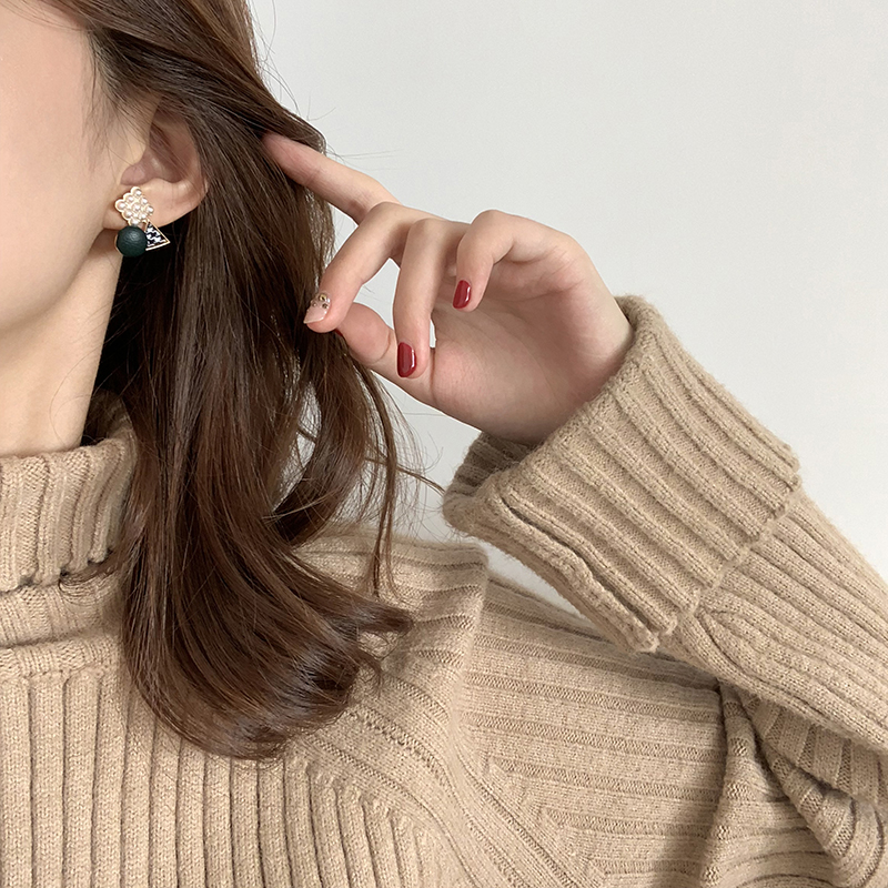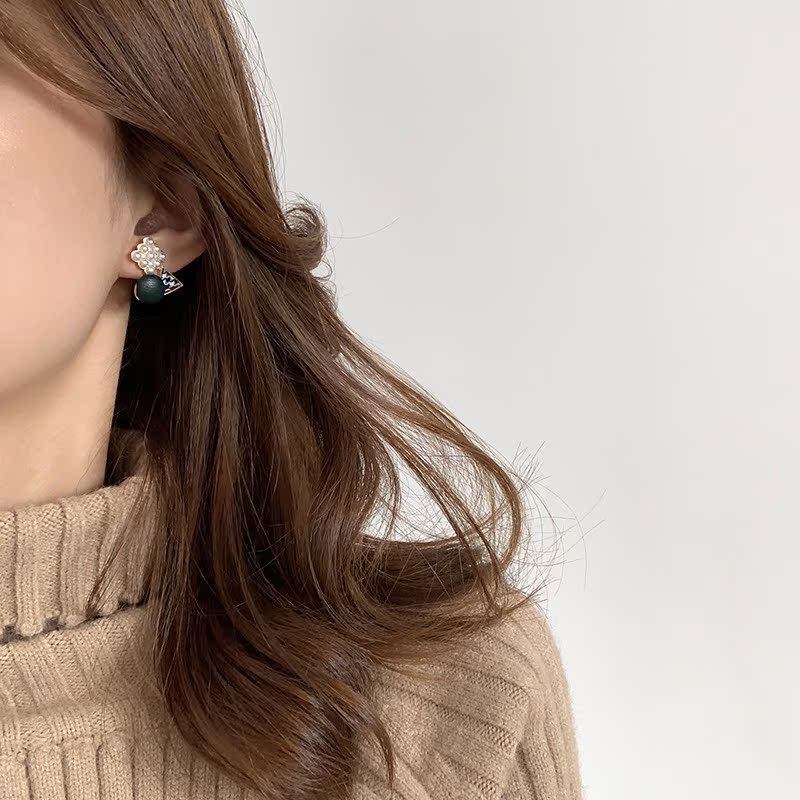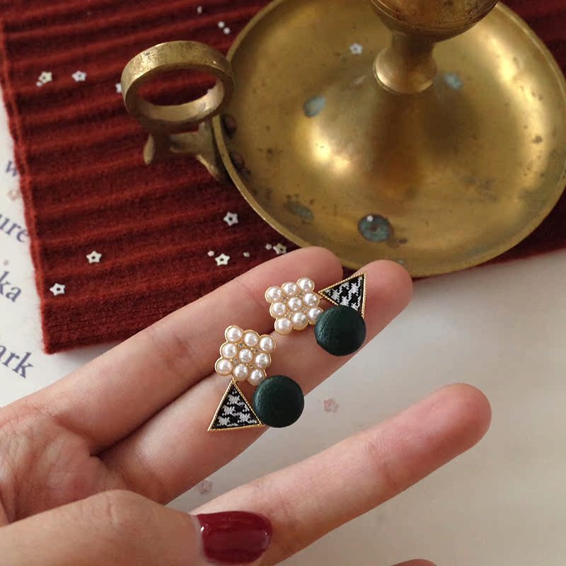 【迷度】S925銀針幾何耳釘珍珠韓國氣質千鳥紋耳飾女圓形方形三角1入
