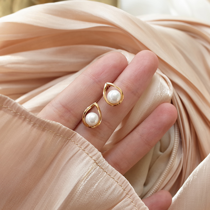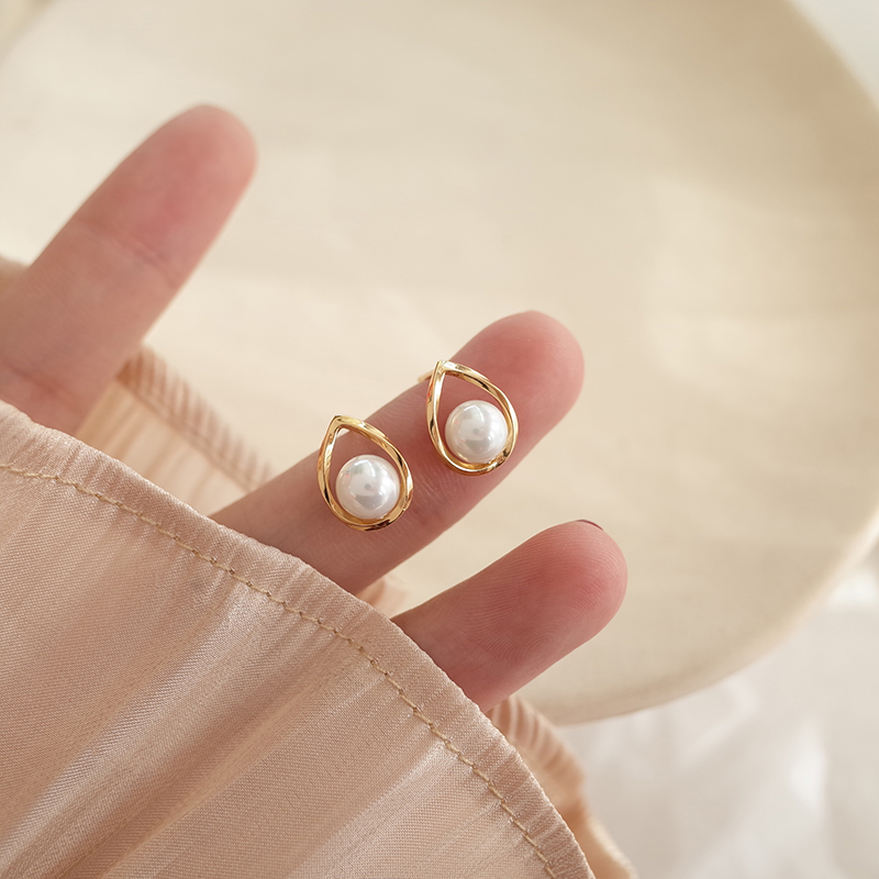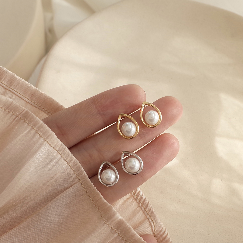 【迷度】通體925純銀小巧水滴珍珠耳釘氣質日常 高級感耳環 法式1入