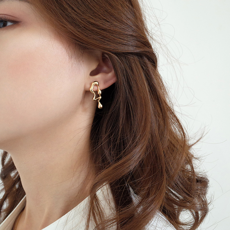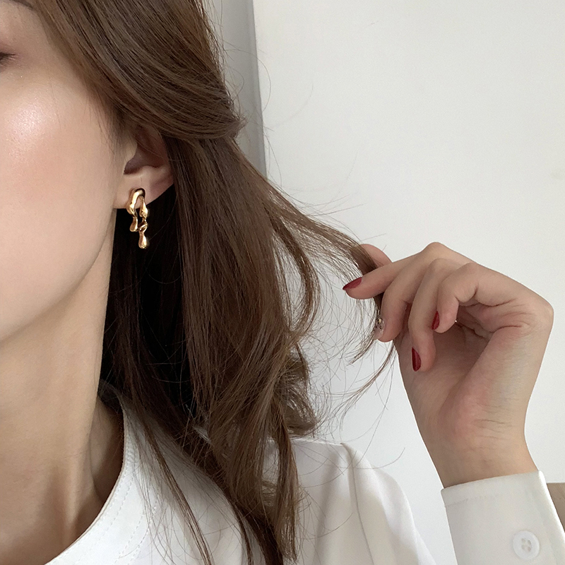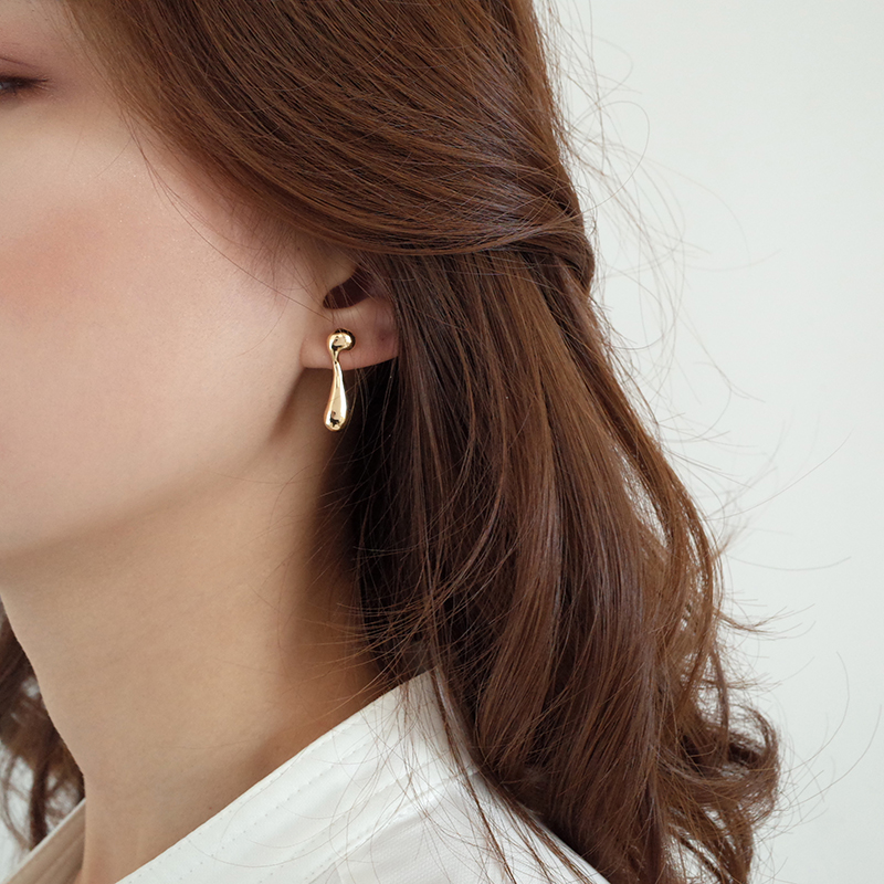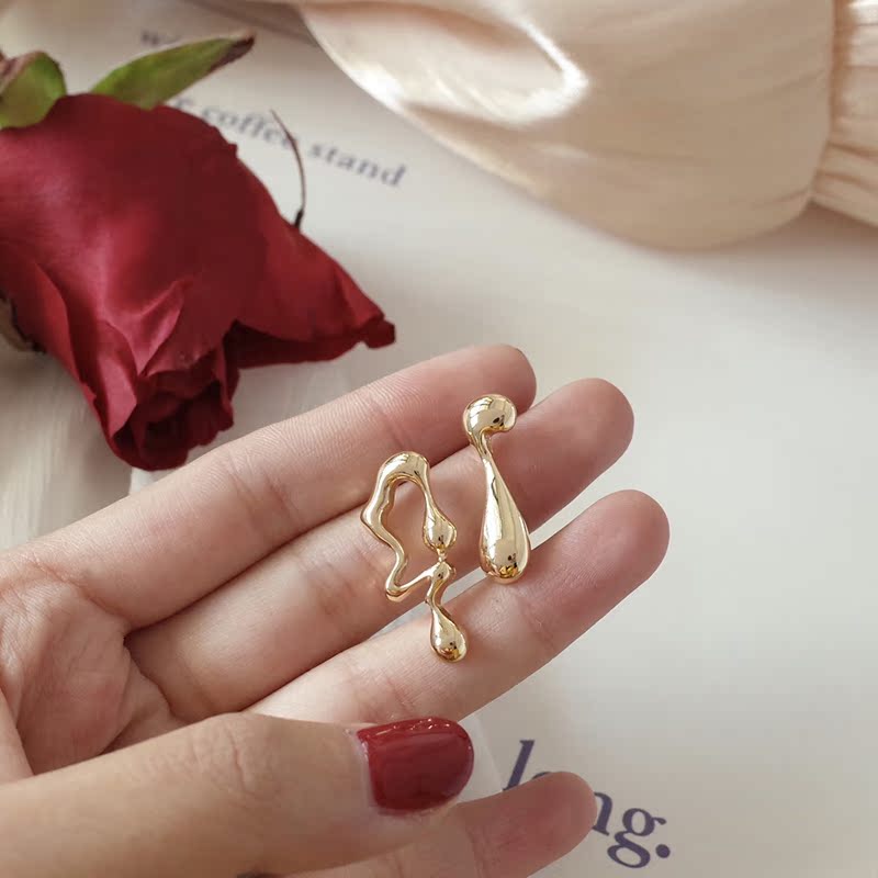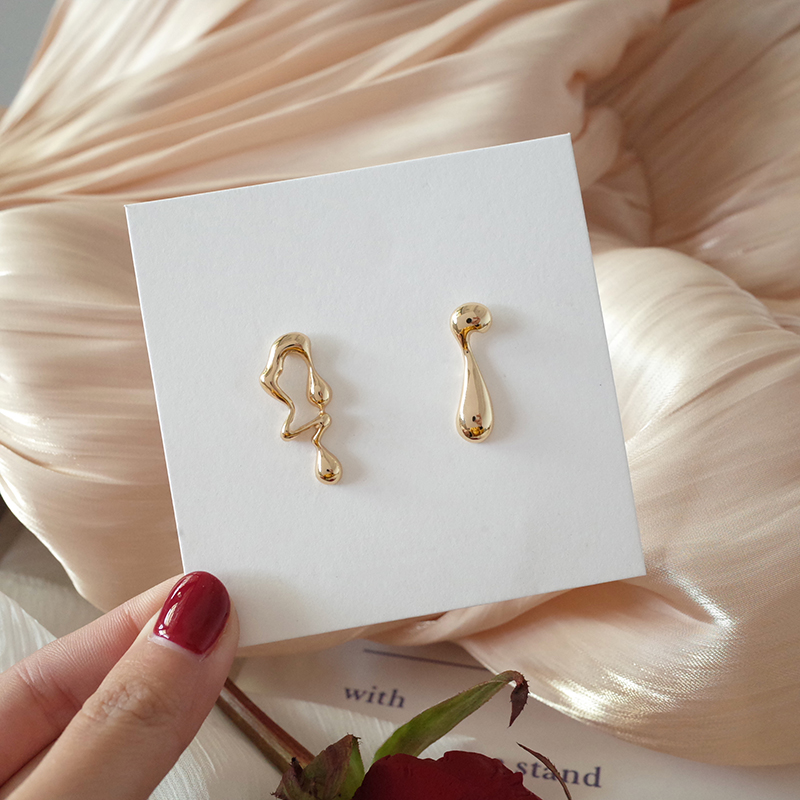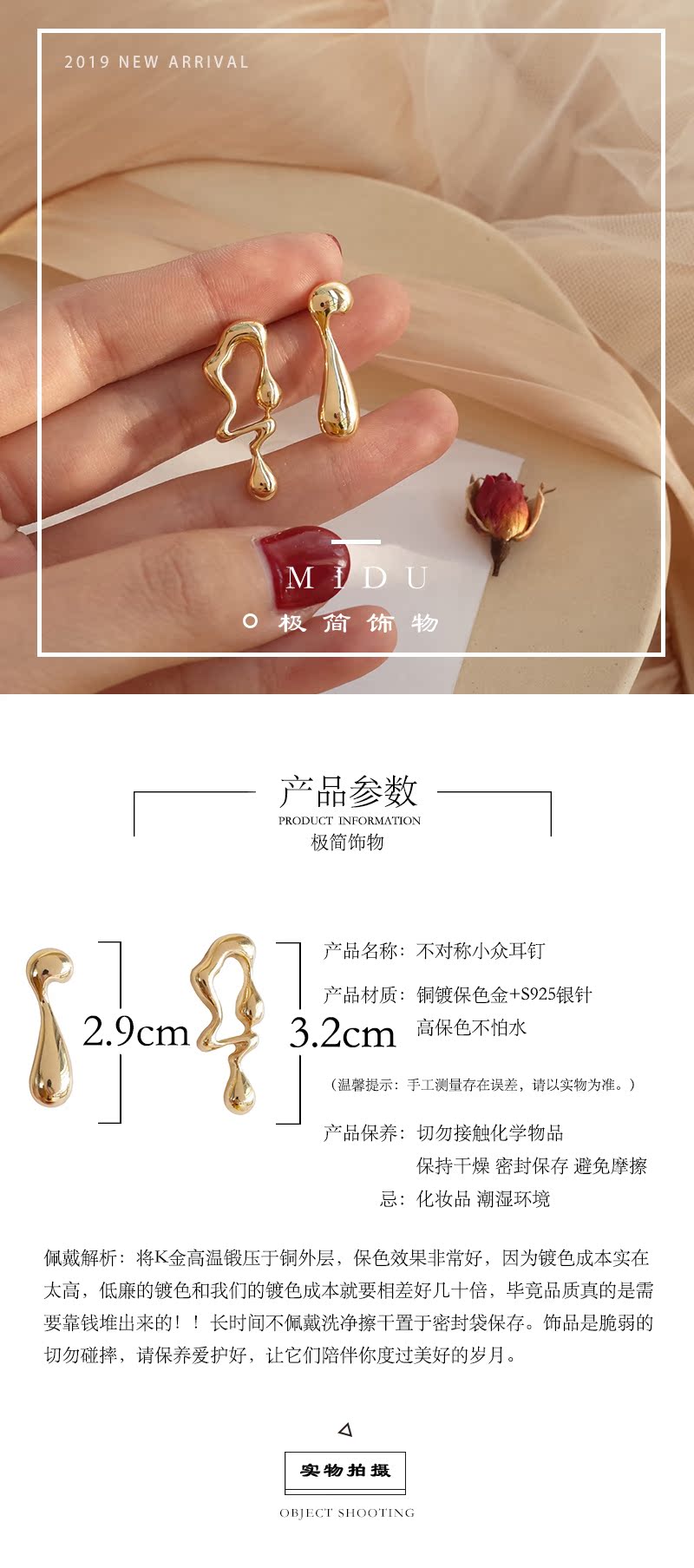 【迷度】S925銀針設計感水滴耳釘不對稱耳環高級感耳環 法式 百搭1入