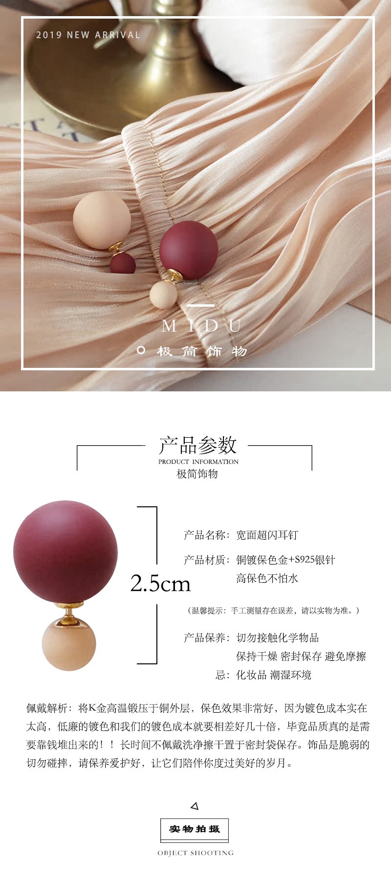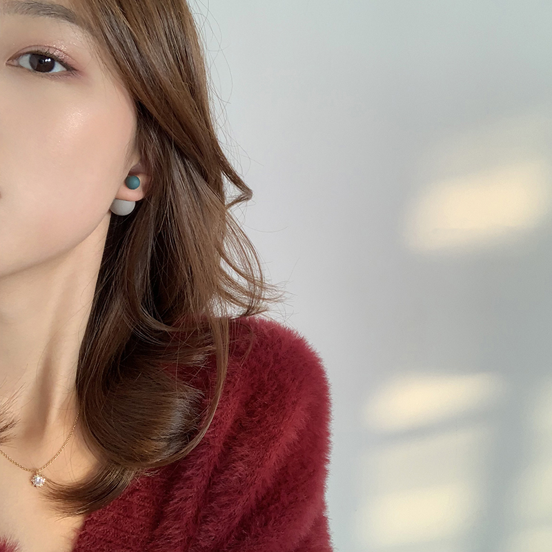 【迷度】S925銀針春天氣質撞色復古耳釘圓形女 高級感耳環 網紅1入