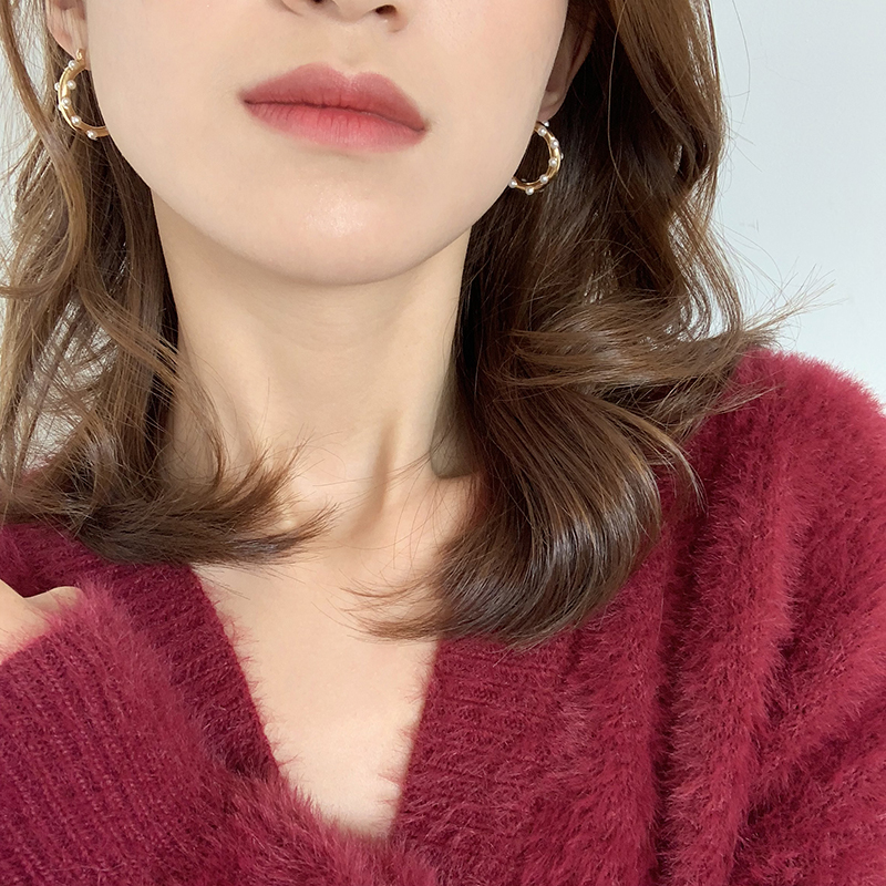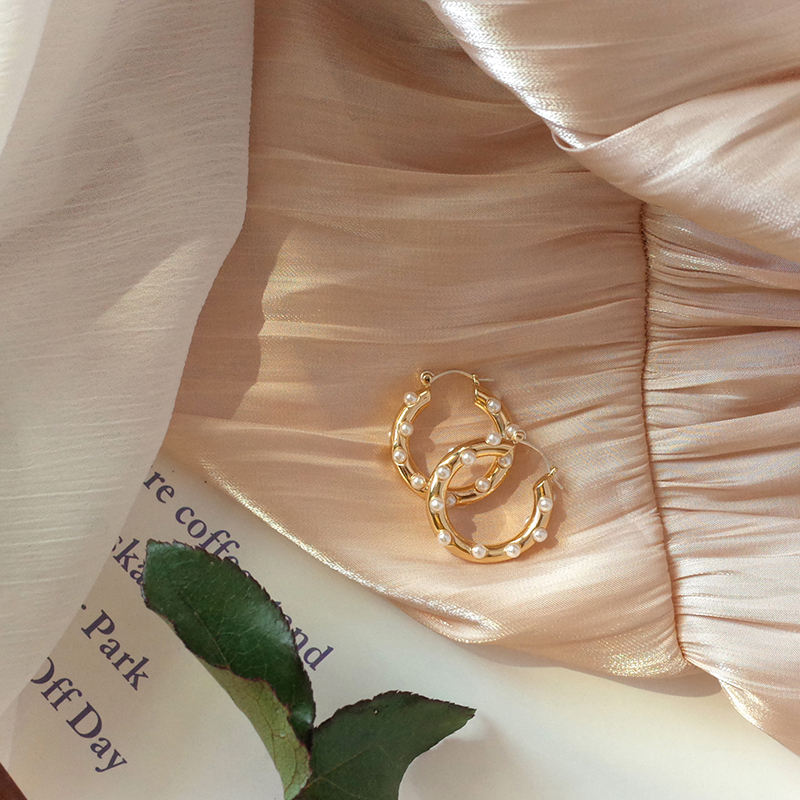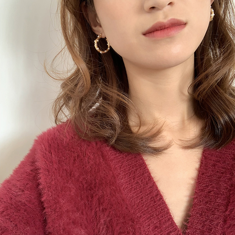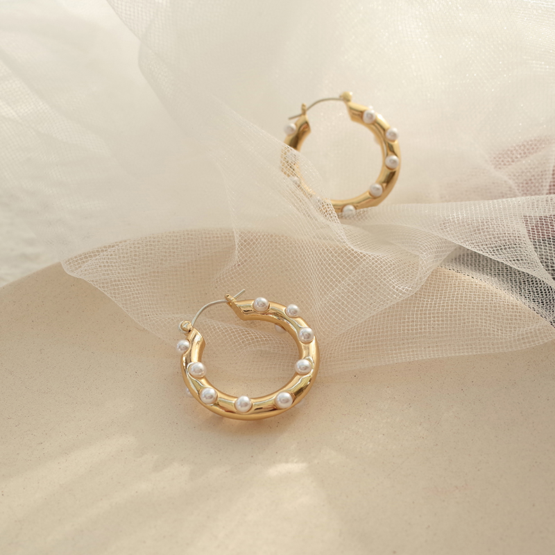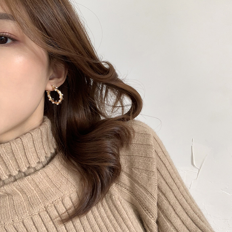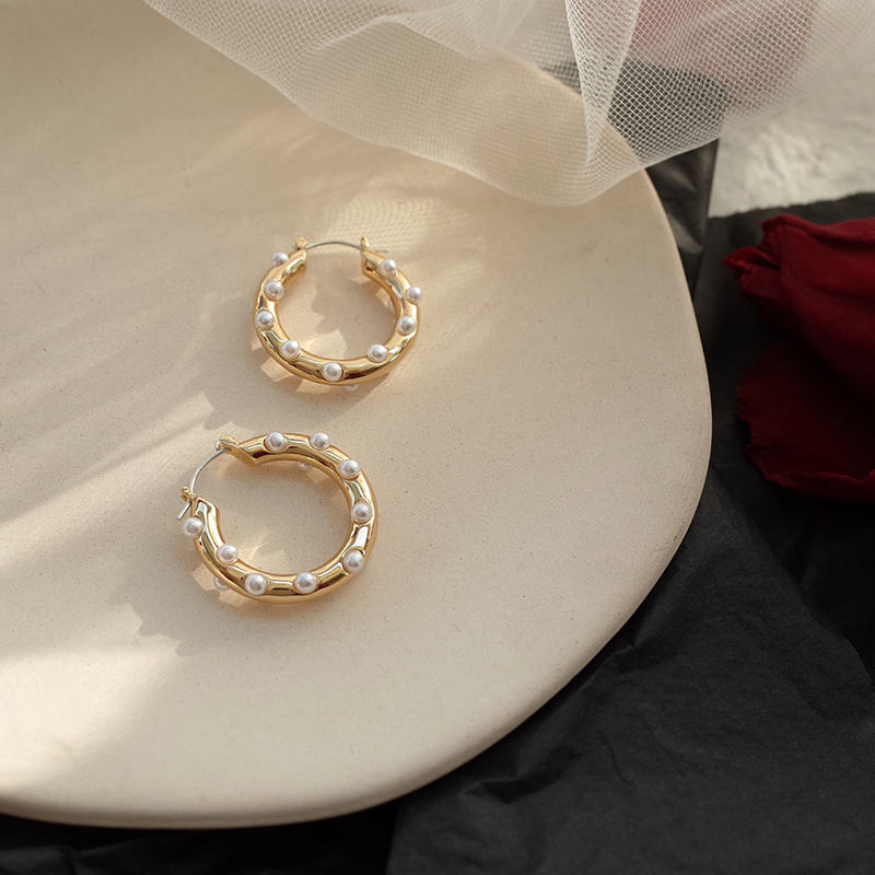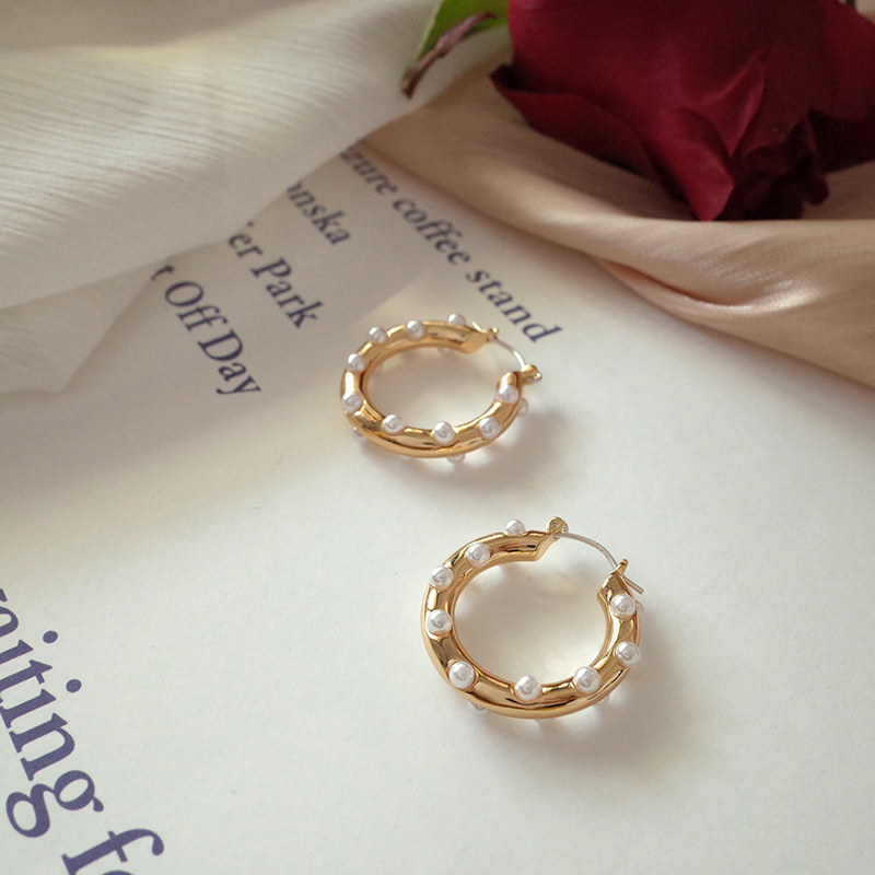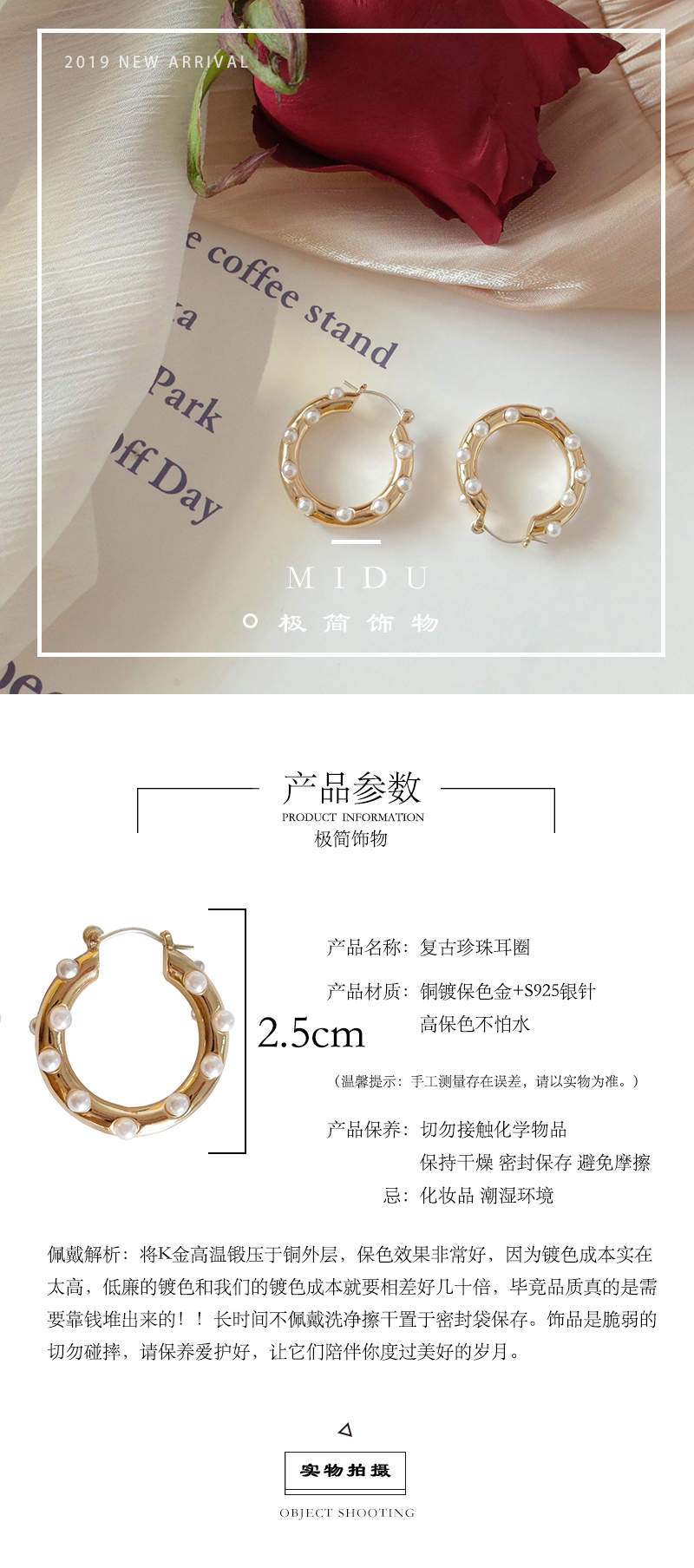 【迷度】S925銀針溫柔氣質珍珠耳圈復古圓形耳環女韓國 氣質 小眾1入