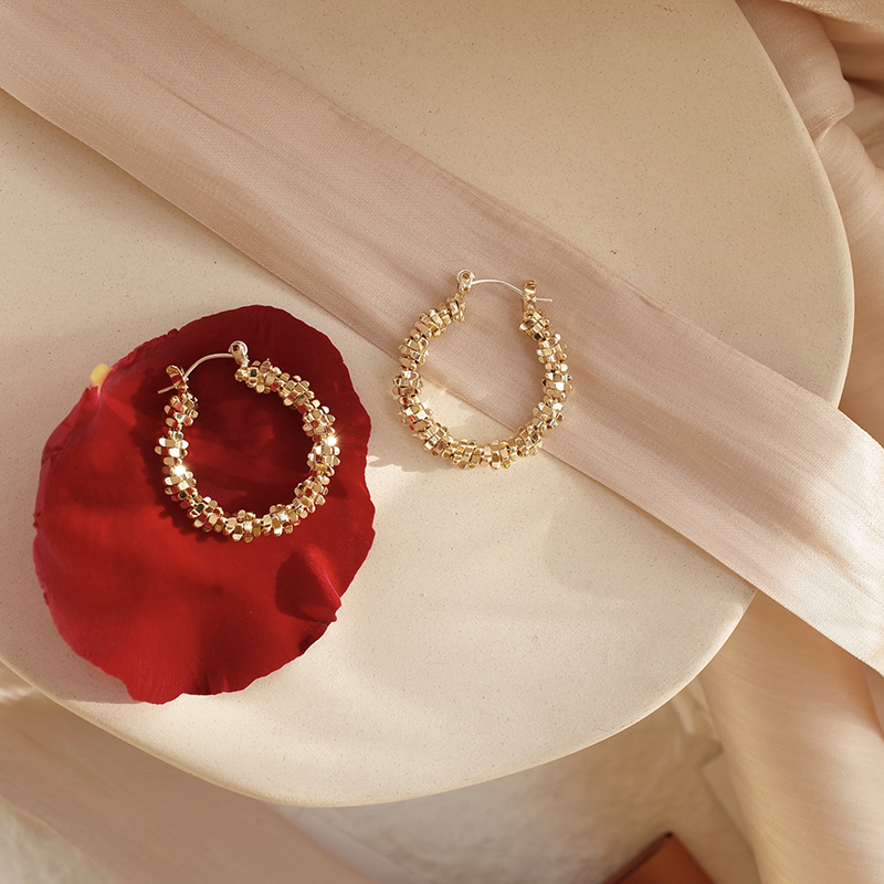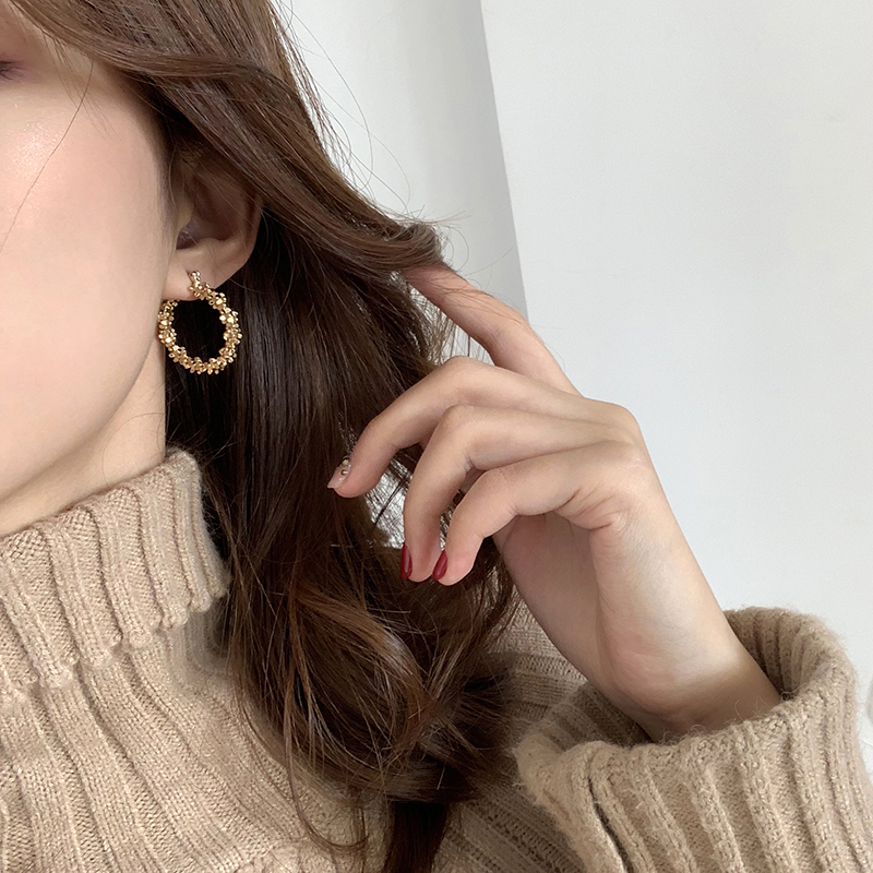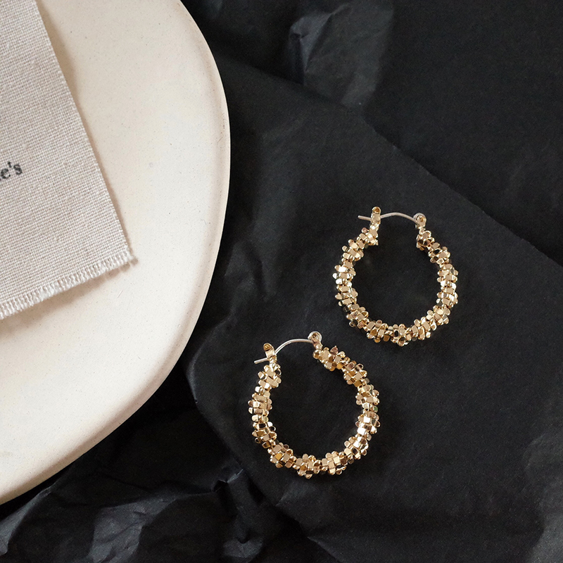 【迷度】S925銀針超閃圓圈耳環設計感耳圈氣質百搭女個性蹦迪耳環1入
