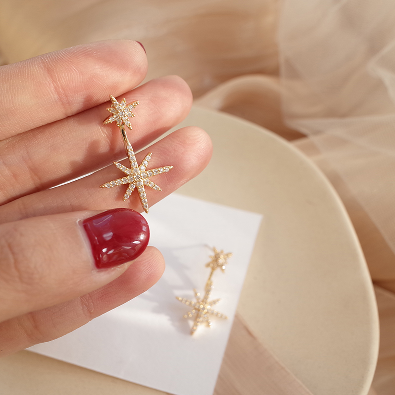 【迷度】S925銀針超閃鑲鉆流星耳環氣質精致耳釘一款兩戴耳環1入