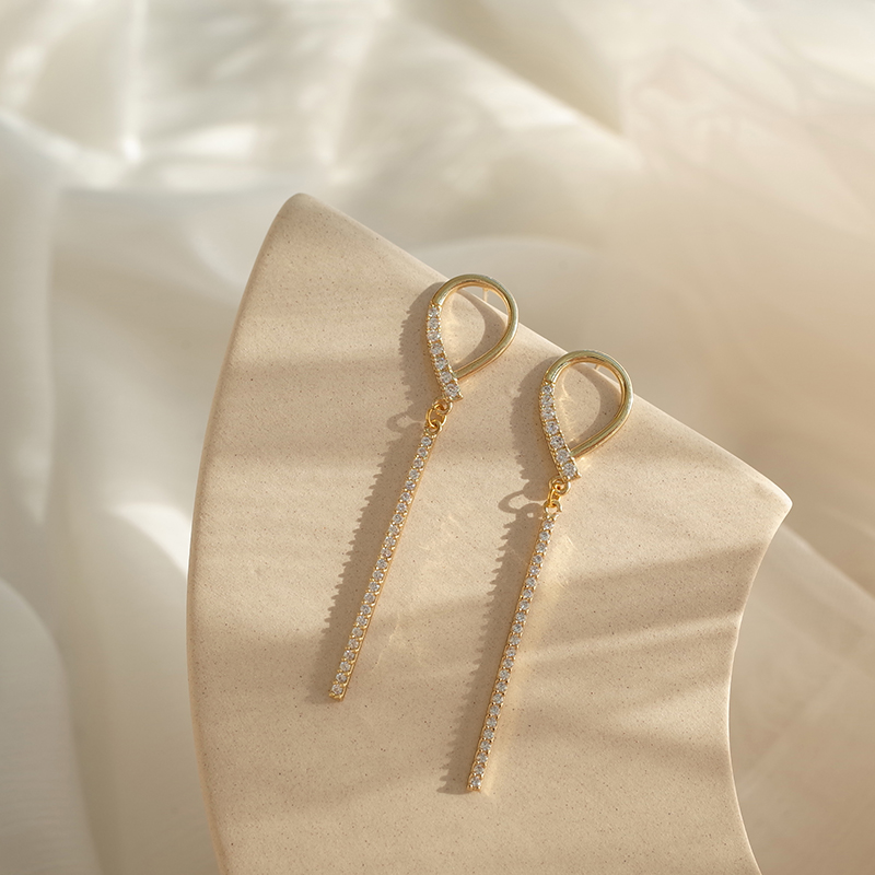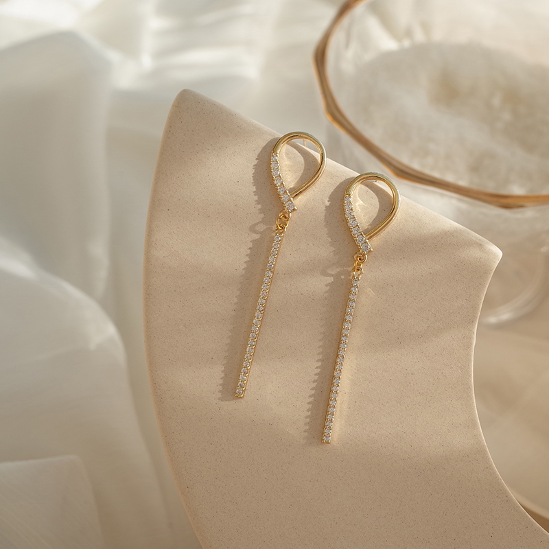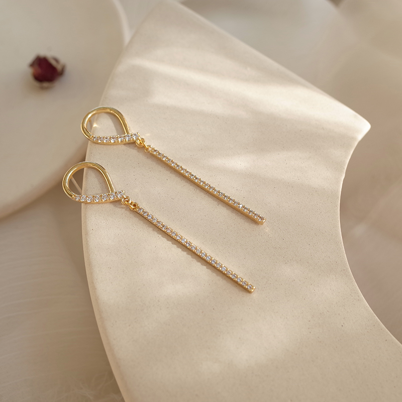 【迷度】S925銀針鋯鉆一字耳釘長款耳環氣質 適合圓臉的耳環 顯瘦1入