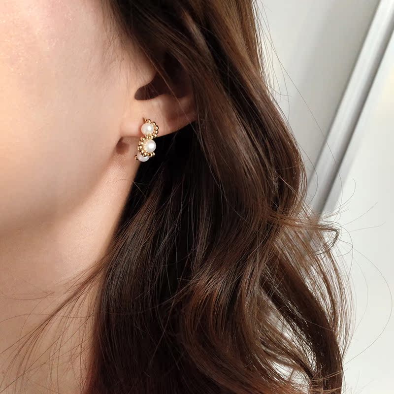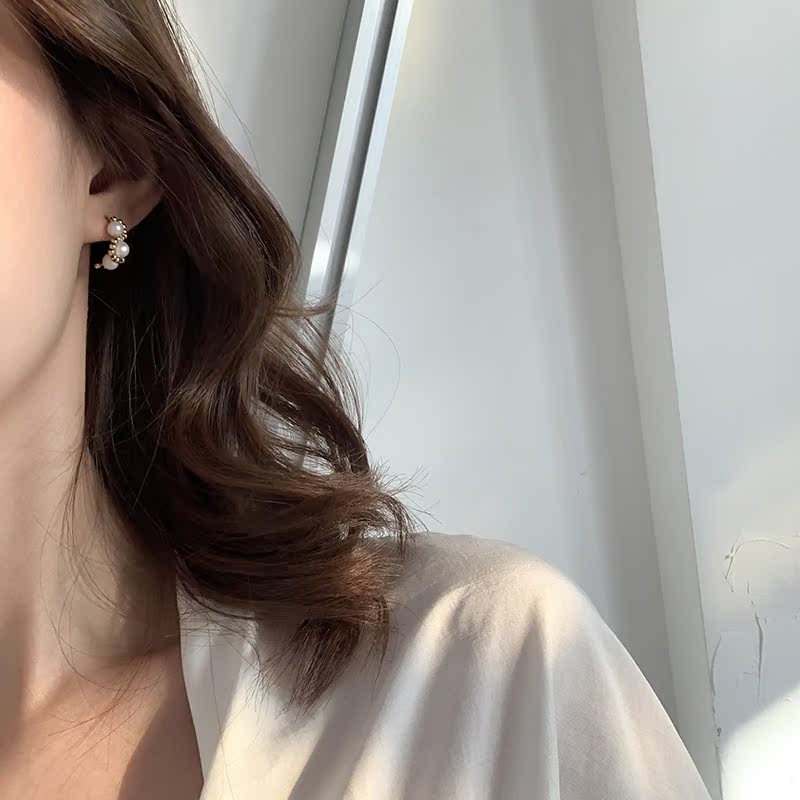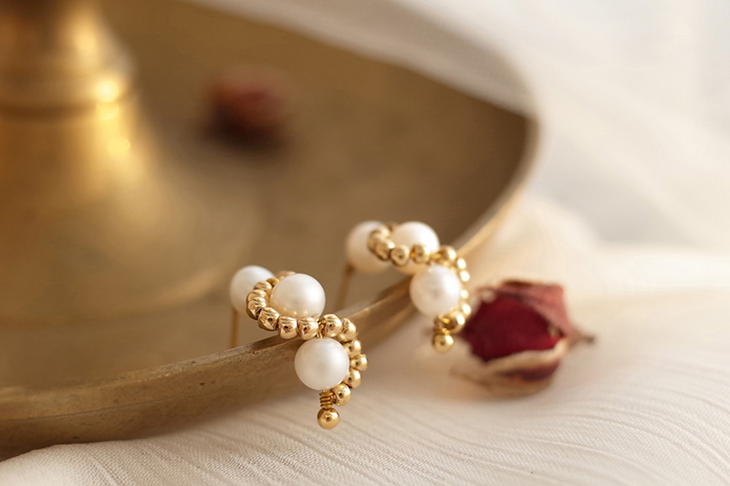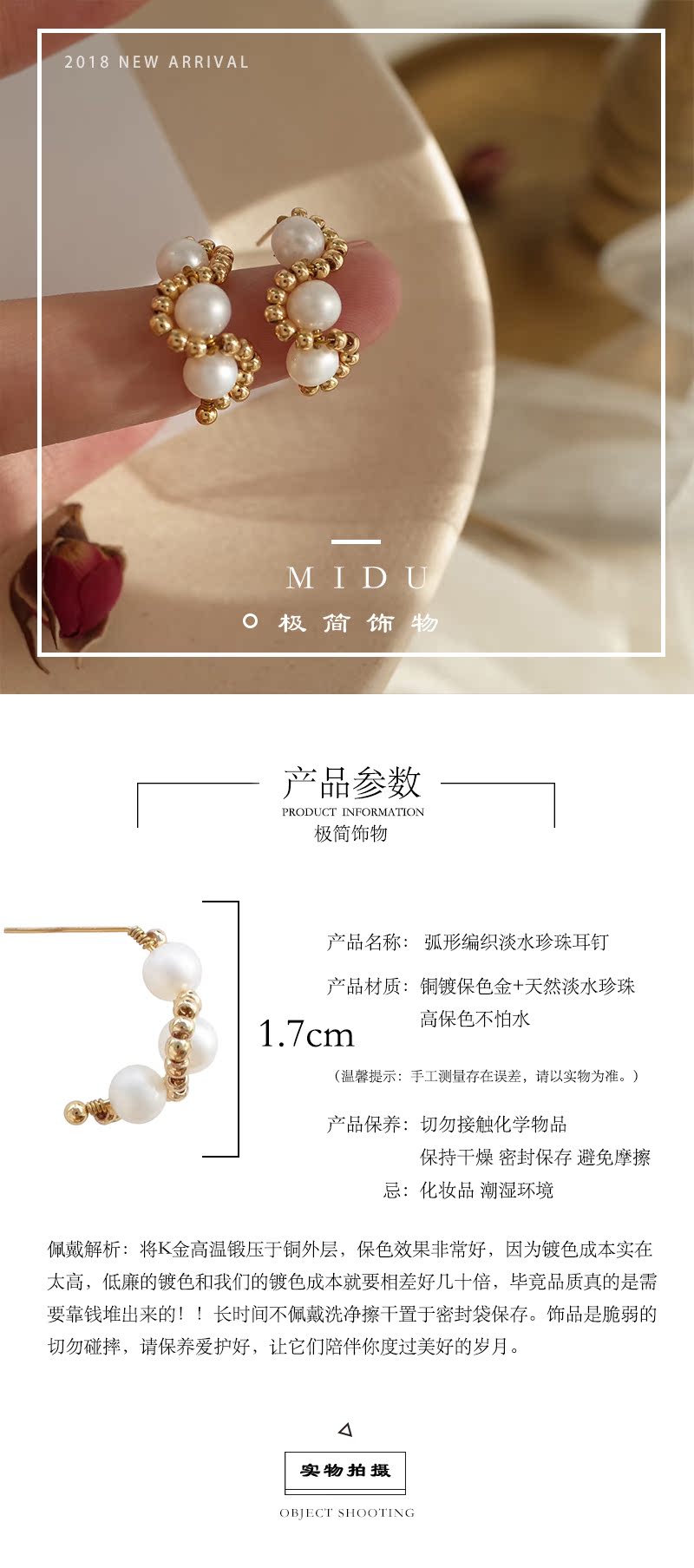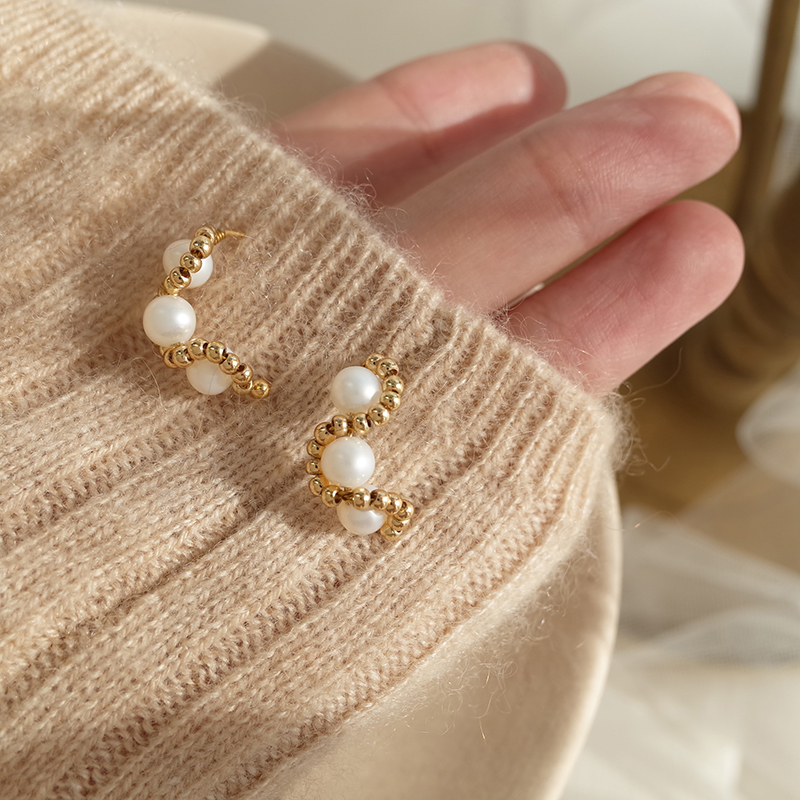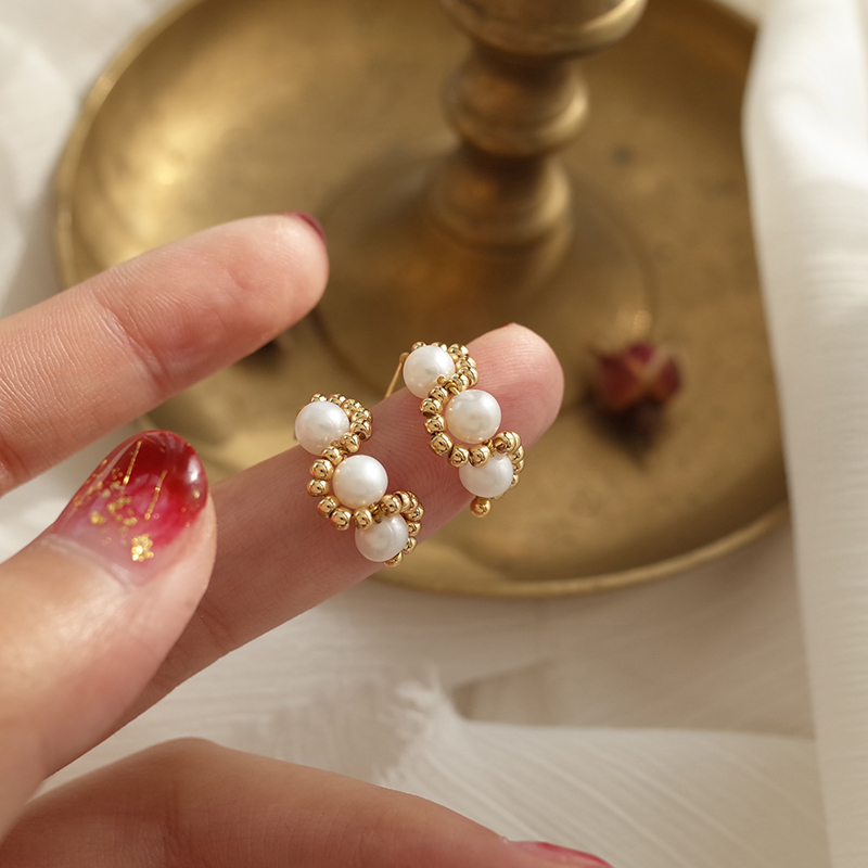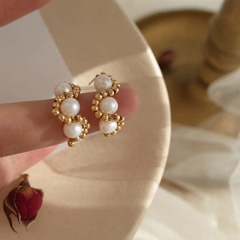 【迷度】氣質天然淡水珍珠耳釘復古輕奢幸運豆會動的耳釘 網紅1入