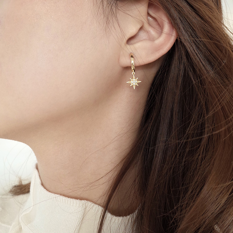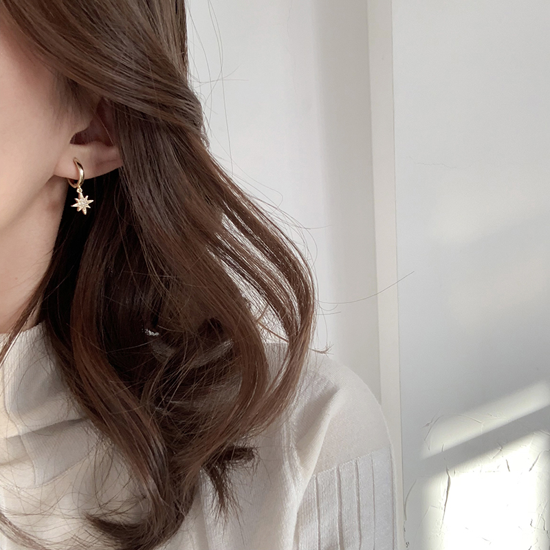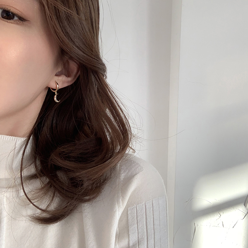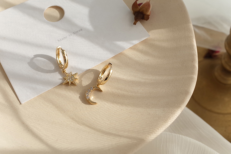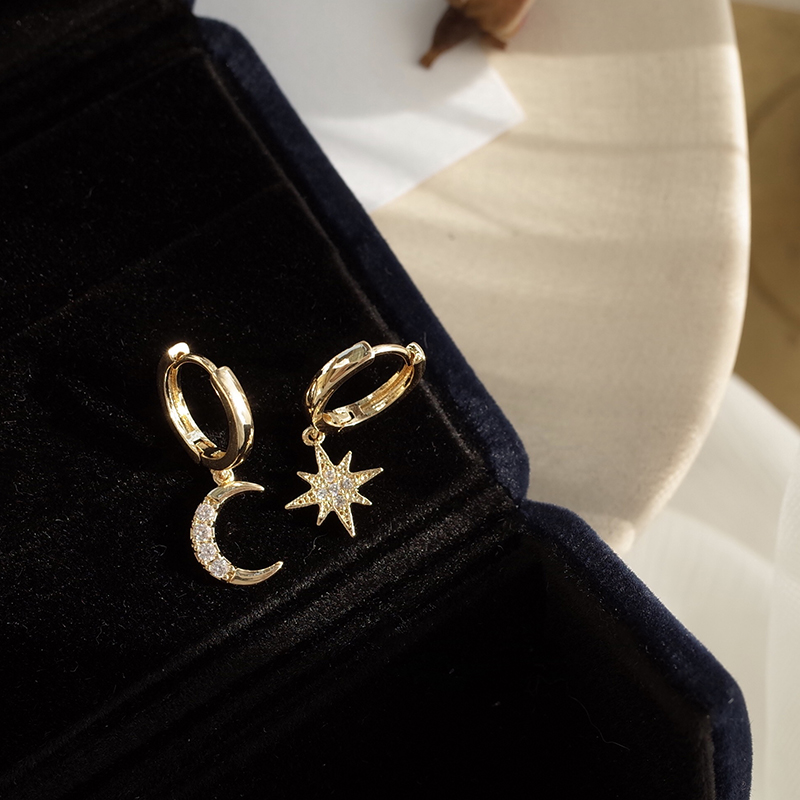 【迷度】ins鋯鉆星月不對稱耳圈耳夾百搭冷淡風 耳墜女 新款時尚1入