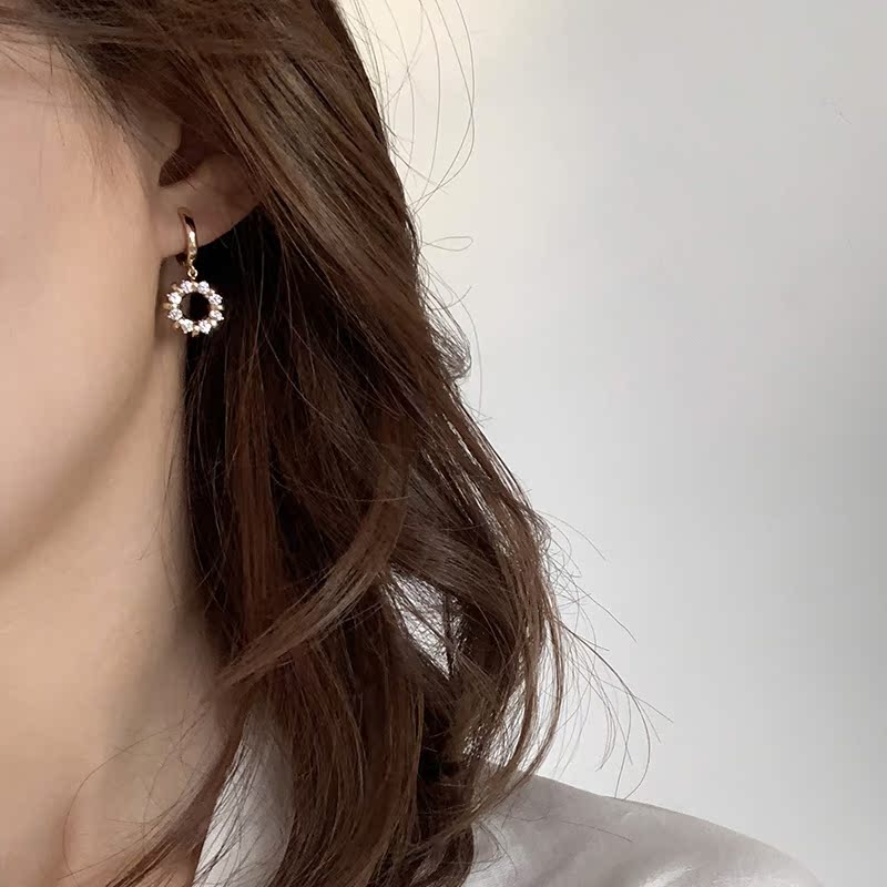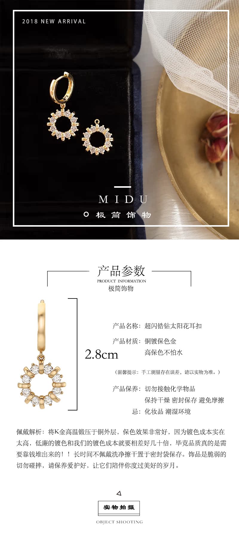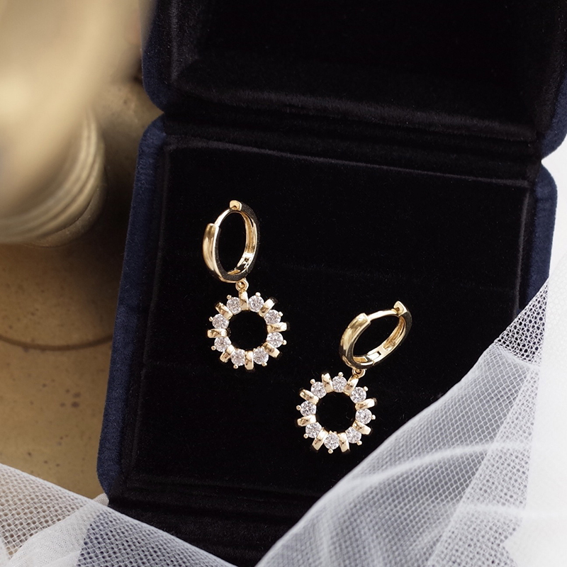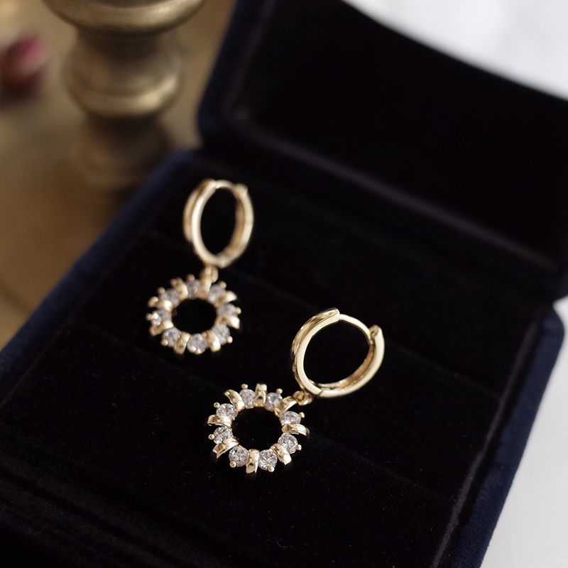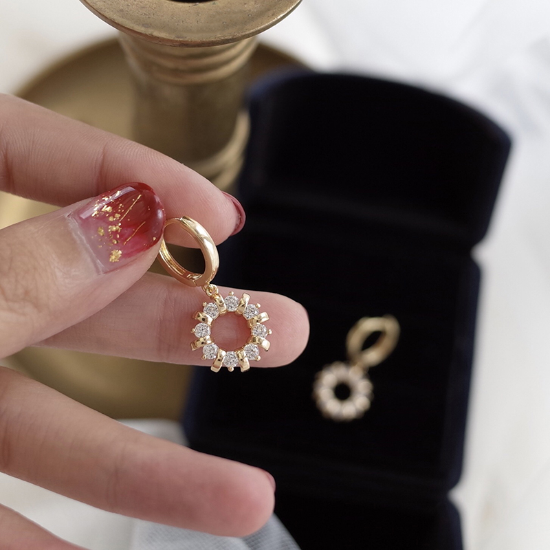【迷度】圓圈鋯鉆太陽耳圈ins耳環氣質超仙 女法式復古耳釘 簡約1入