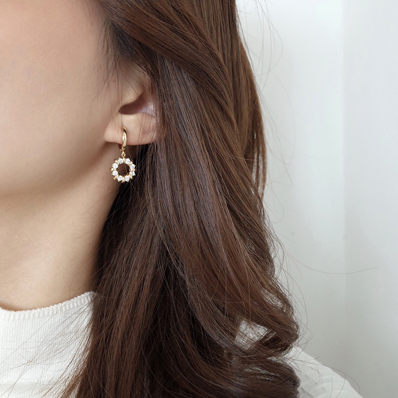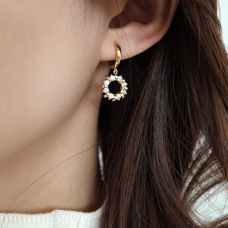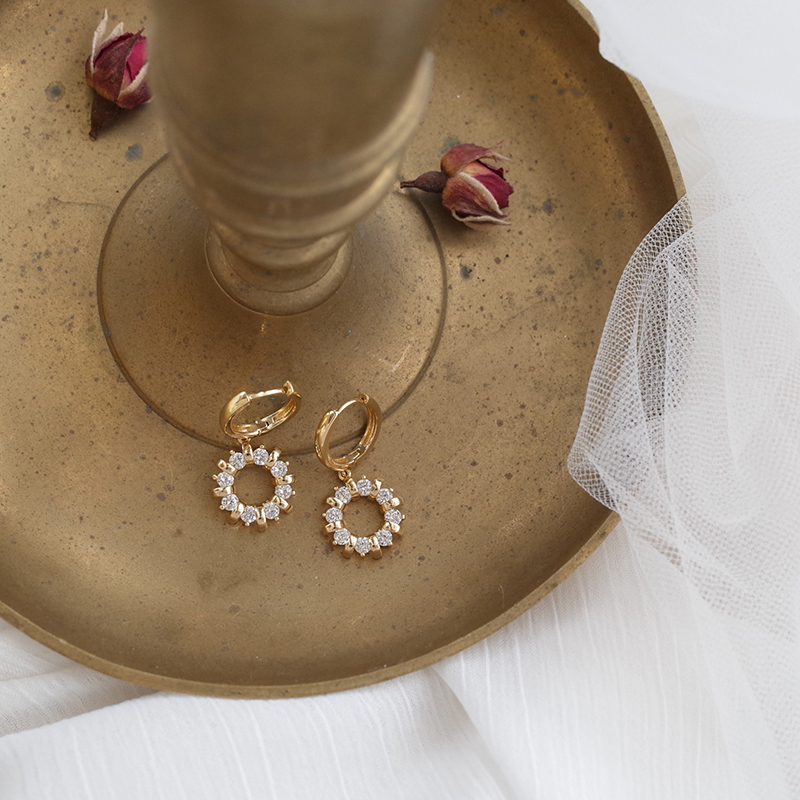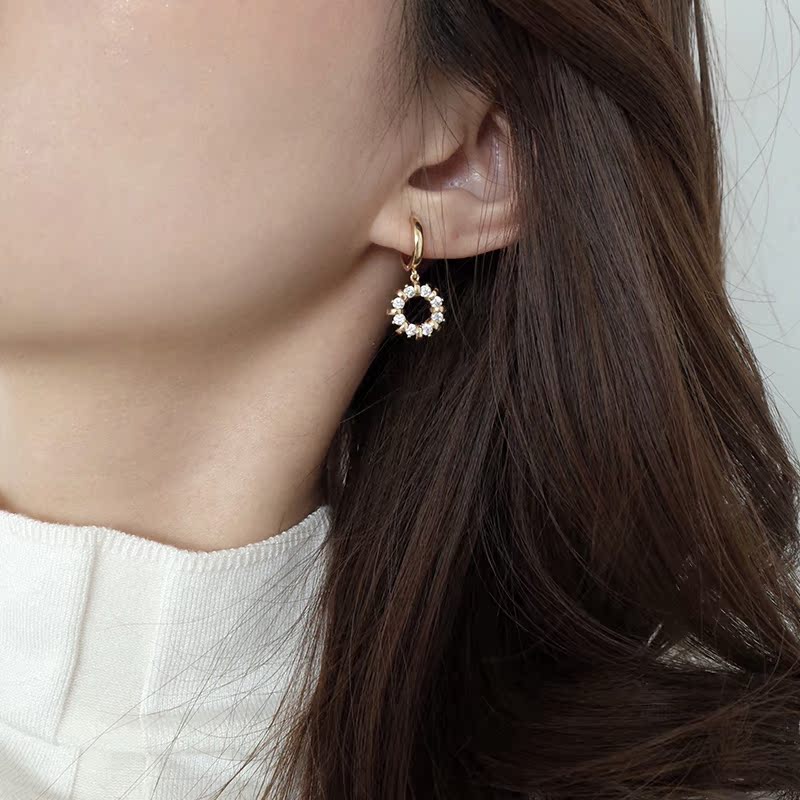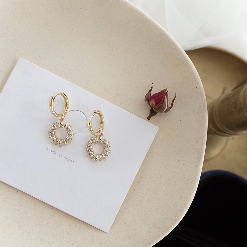 【迷度】圓圈鋯鉆太陽耳圈ins耳環氣質超仙 女法式復古耳釘 簡約1入