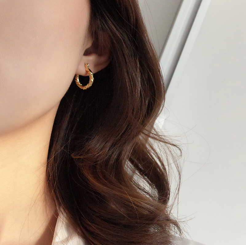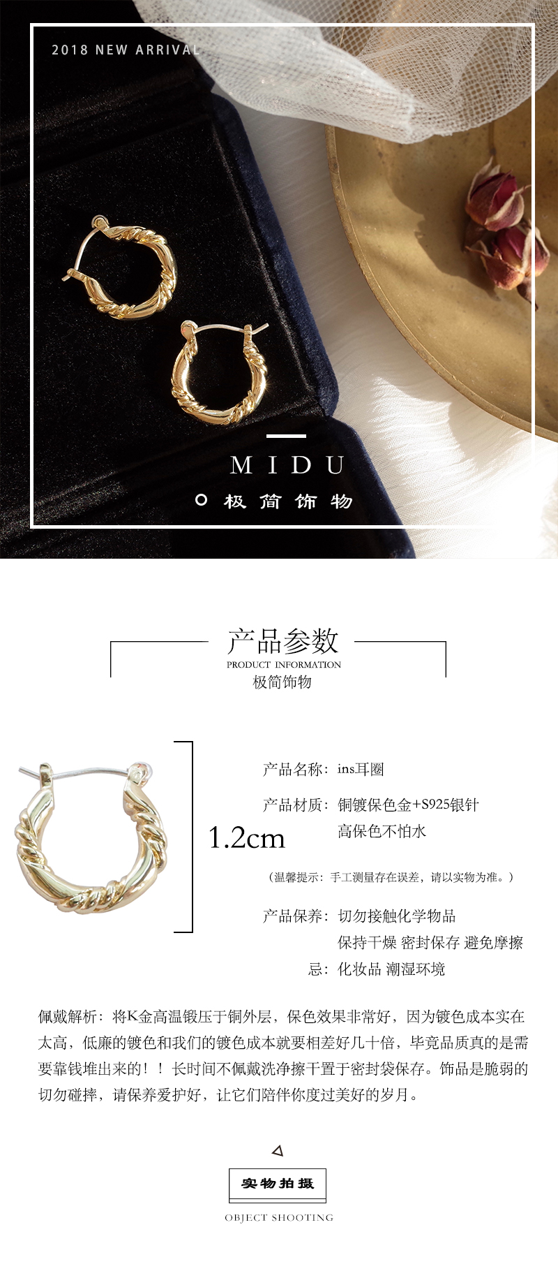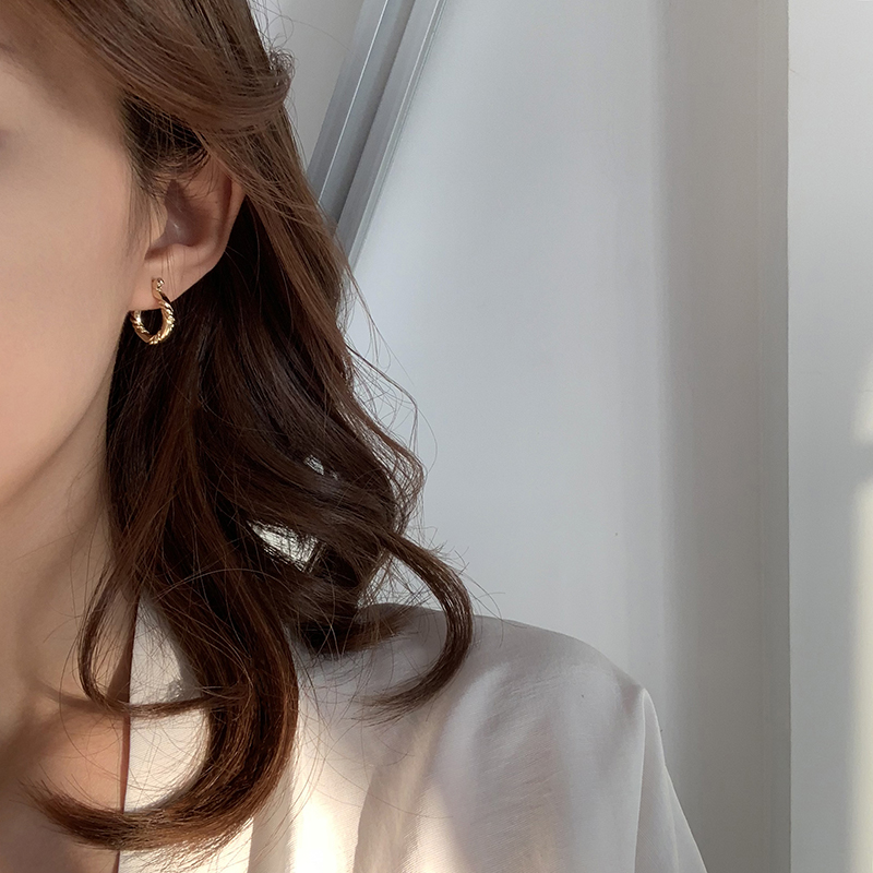 【迷度】S925銀針設計感簡約ins小耳圈耳釘耳環女 小眾設計款耳飾1入